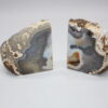 On offer is a beautifulย and large piece of agate, in two halves, which can be used as book-ends. They are of fantastic transparency and with good colours and patterning. Agate mostly consists of quartz and chalcedony and is primarily formed within volcanic rocks. The black-and-white section of the ruler in the image represents 10 cm / 3.9 inch.