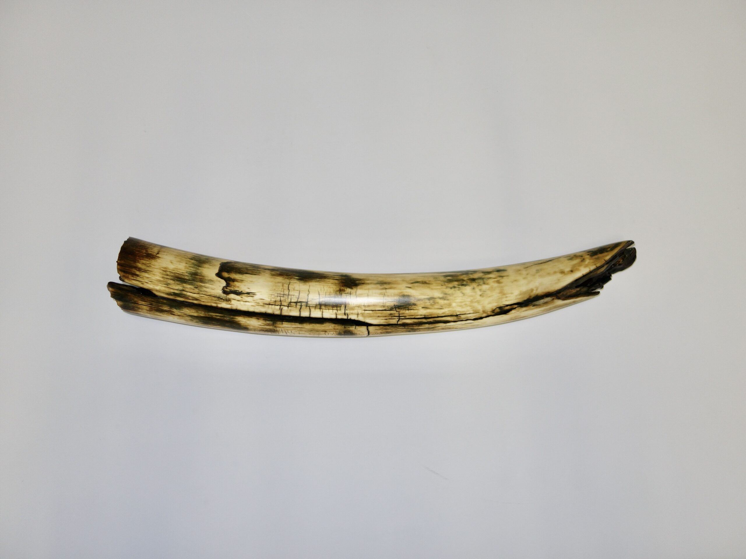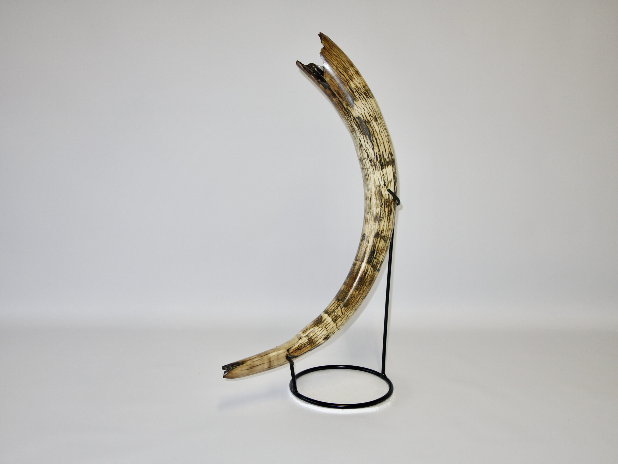On offer is a beautiful base of a tusk of an adult Woolly Mammoth, in excellent condition. This is the tusk piece where it attached to the animal’s skull, hence the hollow part. This tusk base is of beautiful colouring of mainly white and black ivory and with beautiful patterning. Judging from the circumference this would have belonged to a female Mammoth. A matt finish has been applied to this piece, but it is also possible to order it with a glossy finish. The black-and-white section of the ruler in the image represents 10 cm / 3.9 inch.