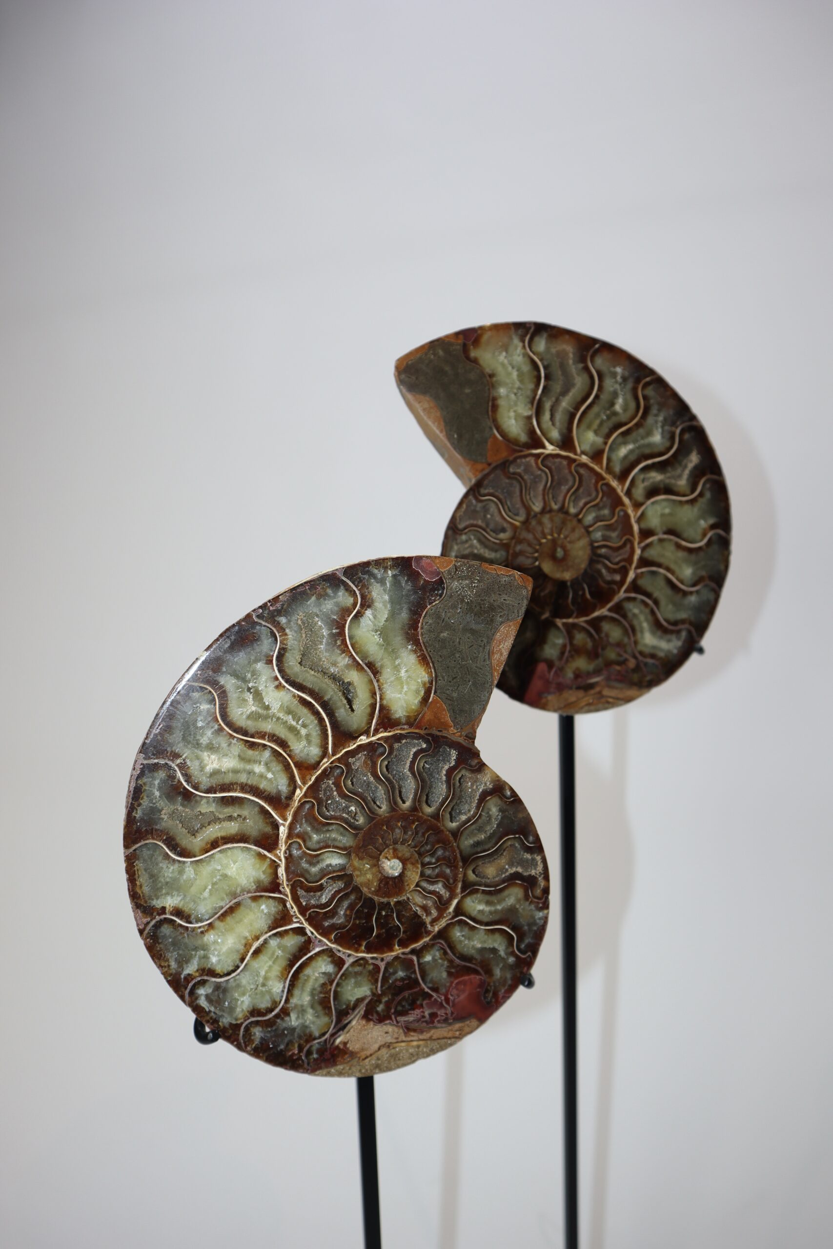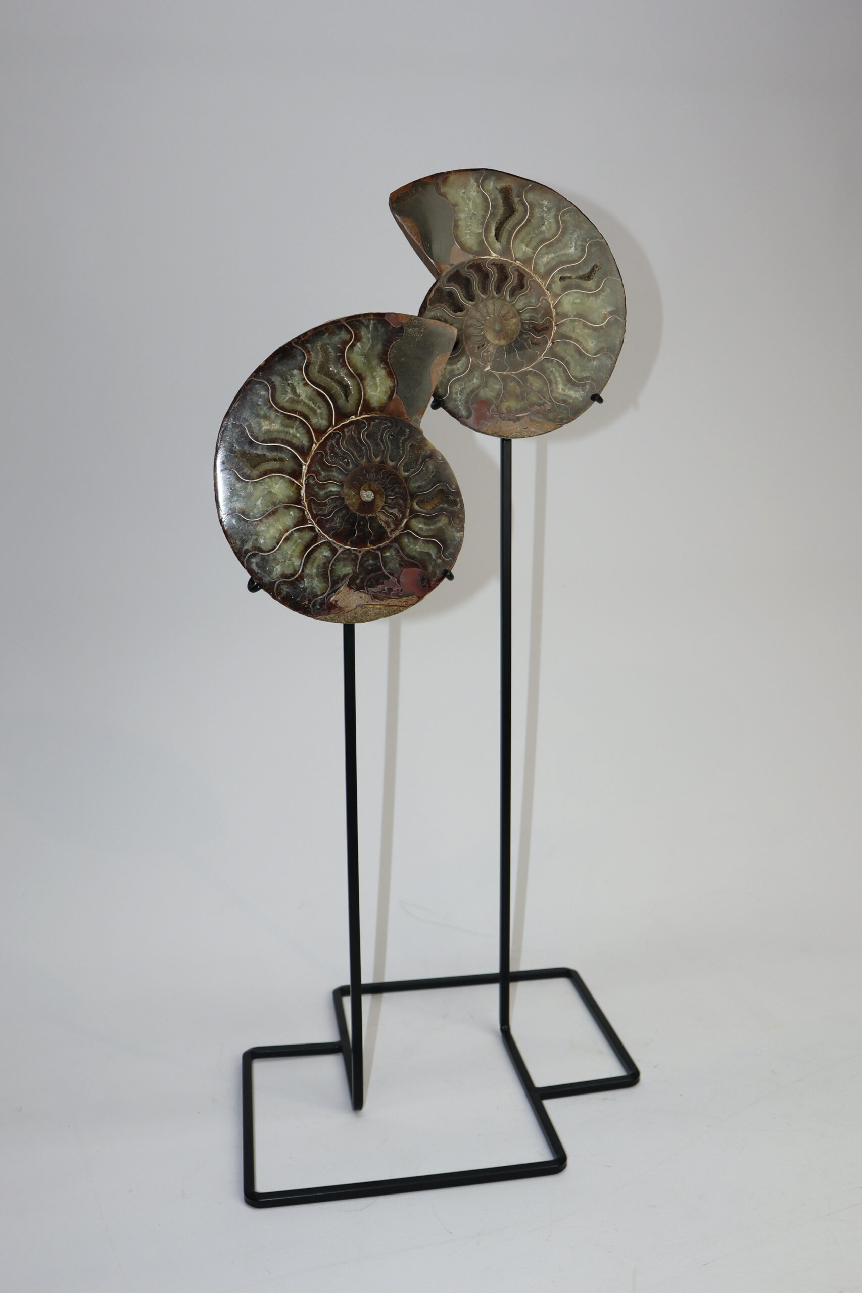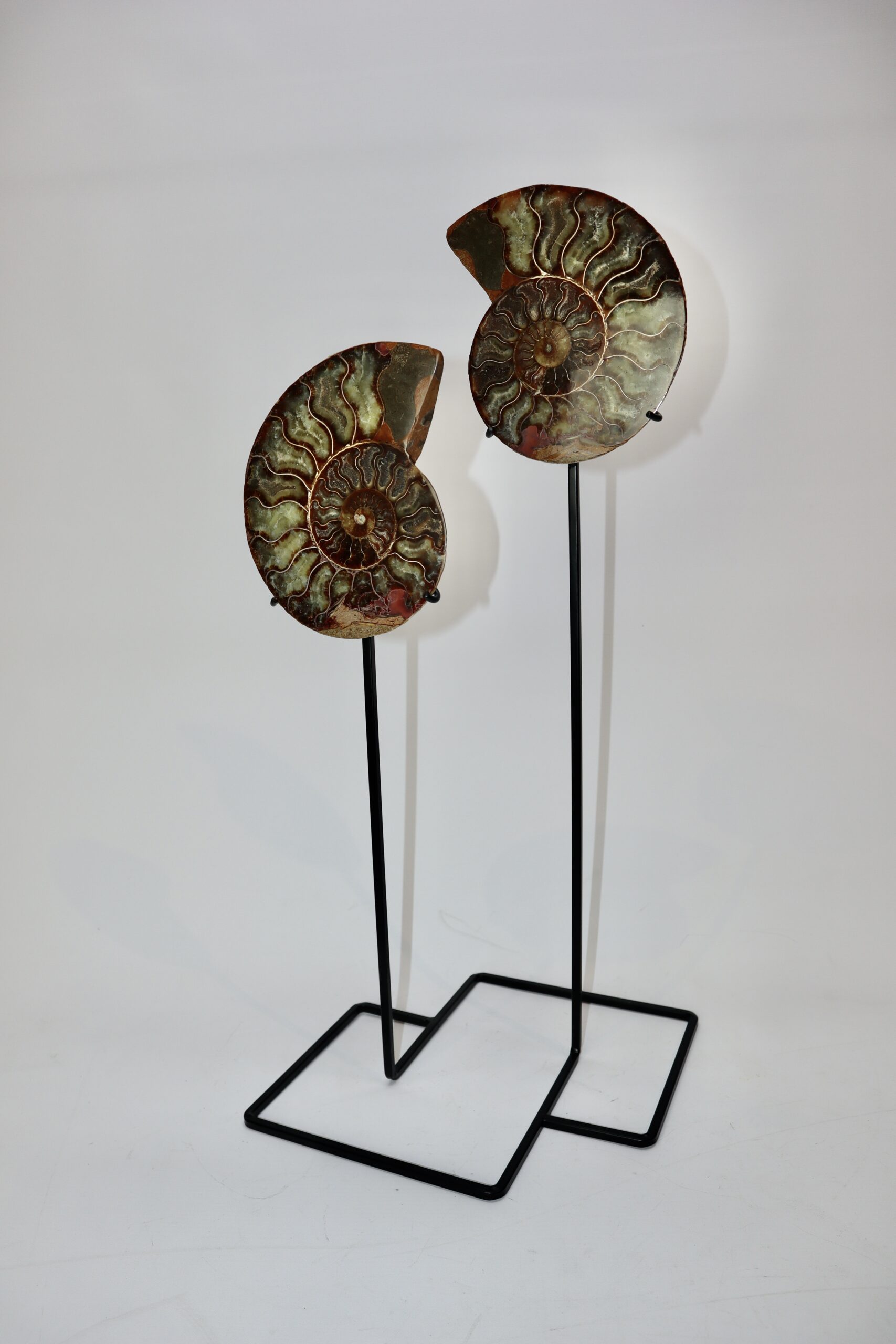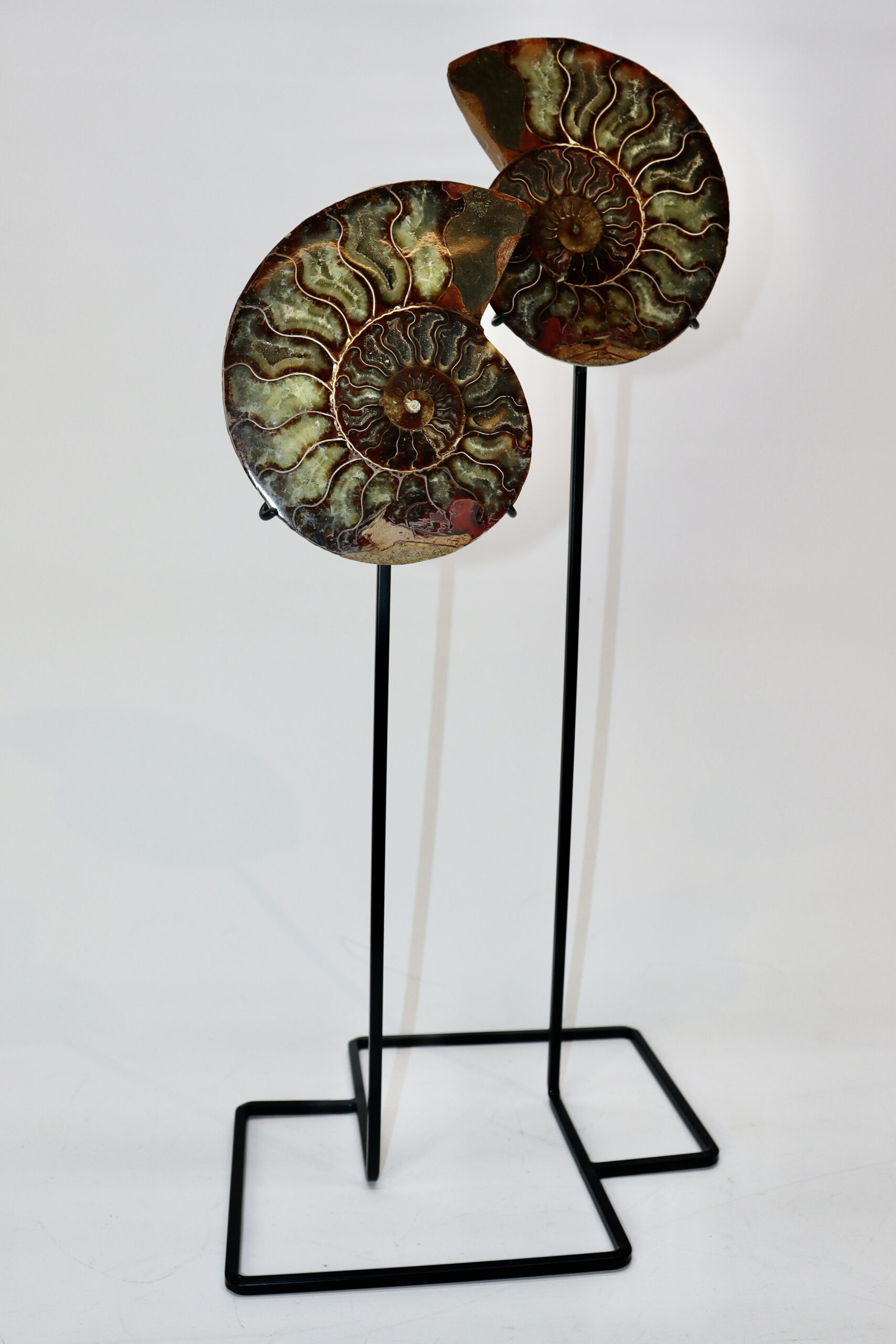 On offer is a good fossilized Ammonite. Ammonites were predatory mollusks that resembled a squid with a shell. These cephalopods had eyes, tentacles, and spiral shells. They are more closely related to a living octopus, though the shells resemble that of a nautilus. Ammonites appeared in the fossil record about 240 million years ago and they barely survived several major extinction events. The last lineages disappeared 65 million years ago at the end of the Cretaceous. This beautiful piece has been cut in half and polished to reveal the original stunning colours and patterning. The black and white ruler in the image represents 10 cm (3.9 inch).