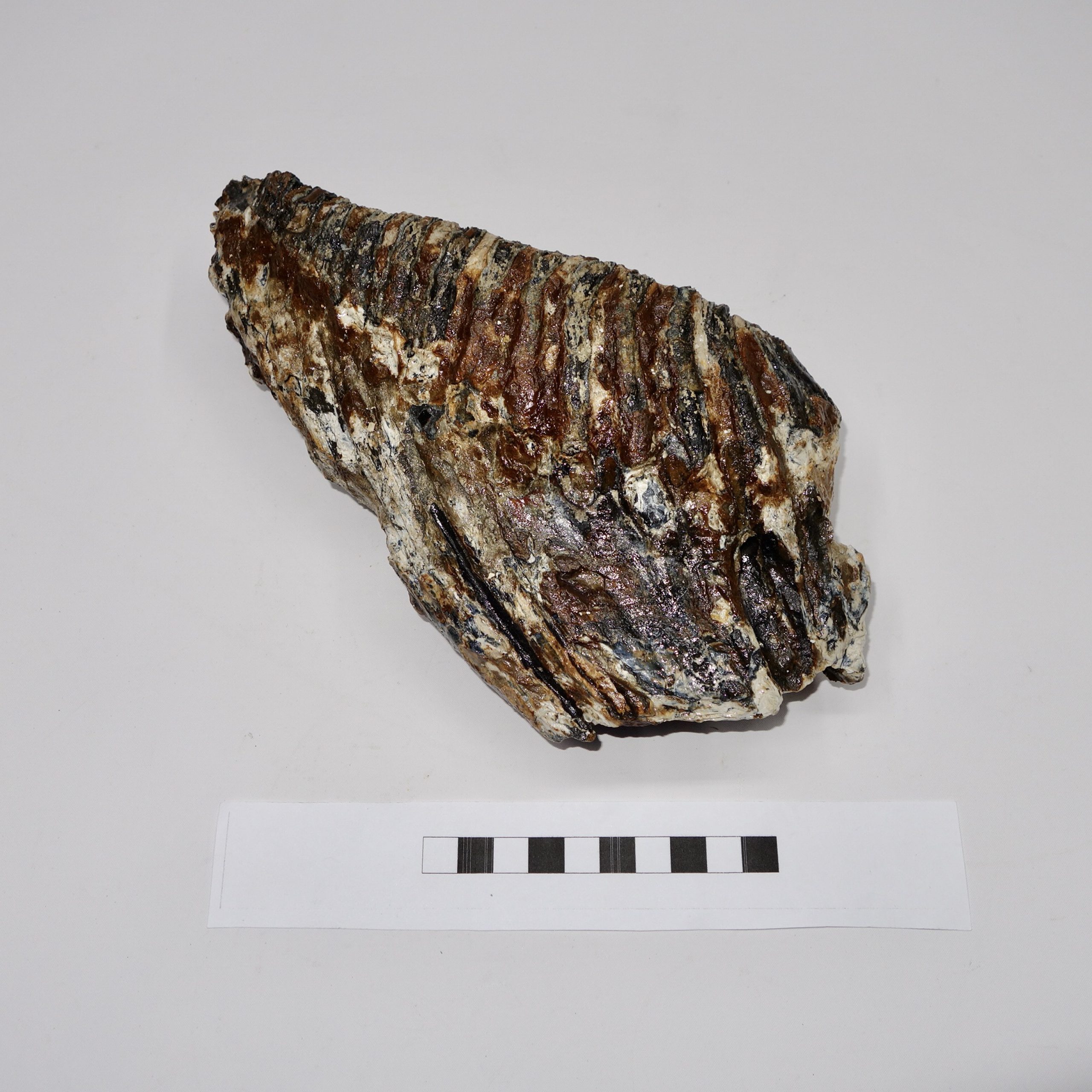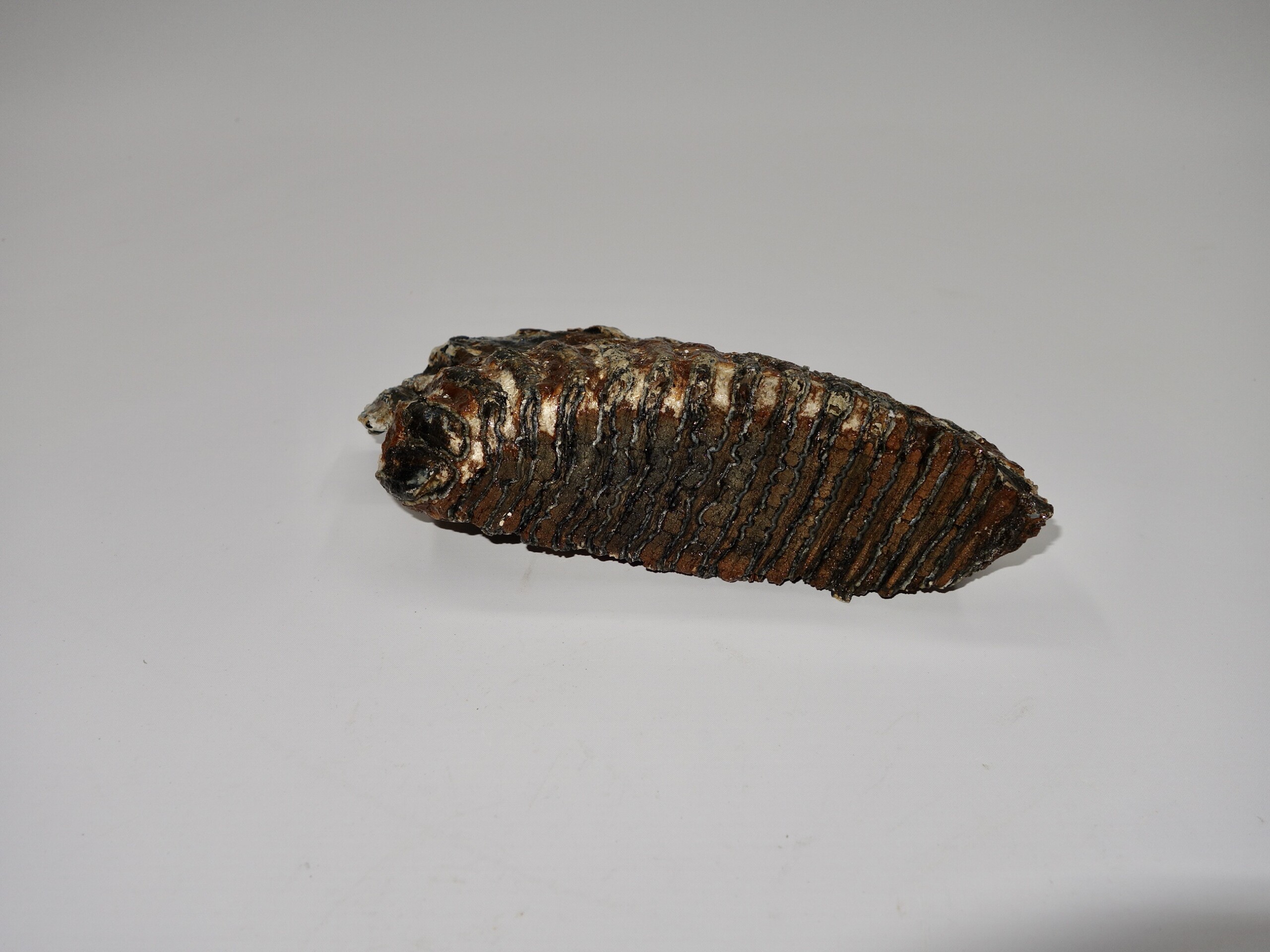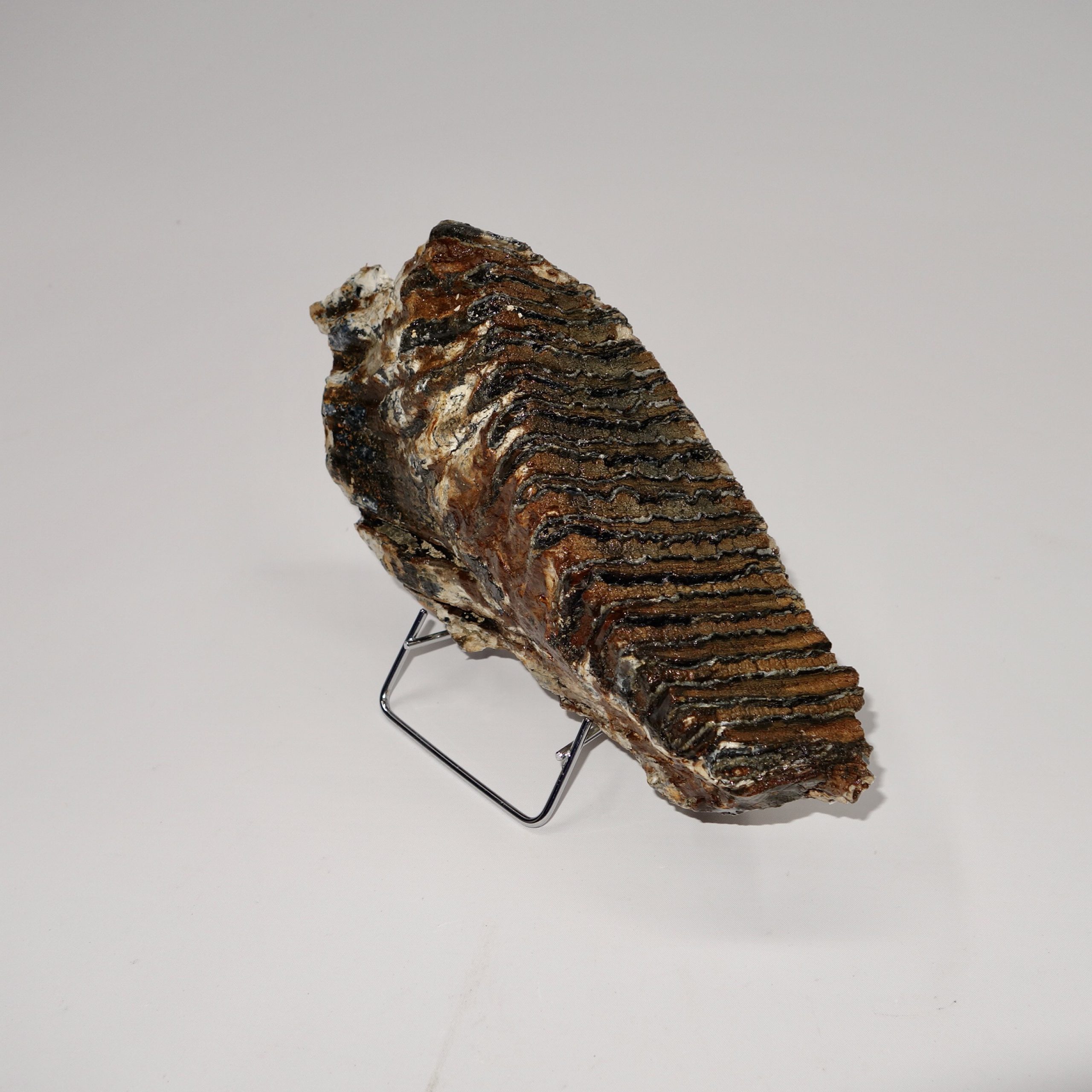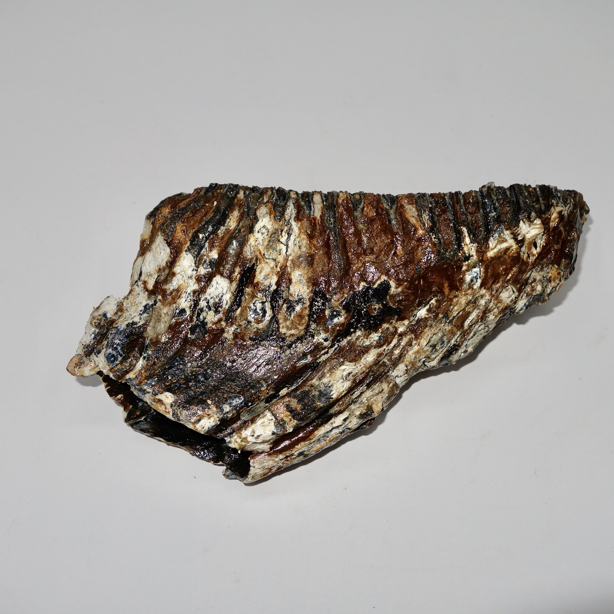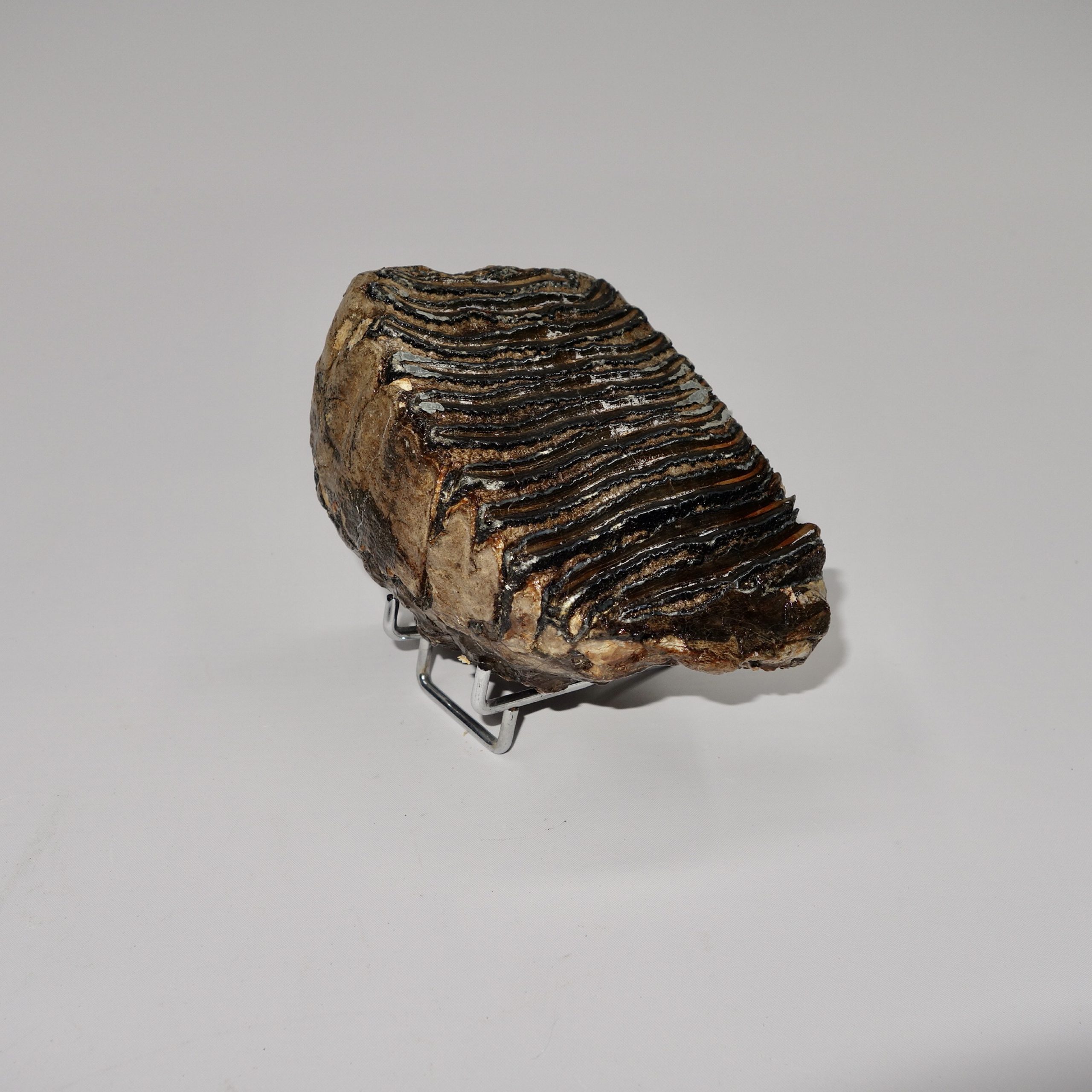 On offer is a beautiful M3 molar of an adult Woolly Mammoth from the Pleistocene era. This molar comes from the right lower jaw. Fantastic quality tooth with beautiful chewing surface. Wonderful state of preservation, as seen in the images, and no restoration whatsoever. Judging from the size, this molar belonged to an adult Mammoth. The black and white section of the ruler in the image represents 10 cm / 3.9 inch.