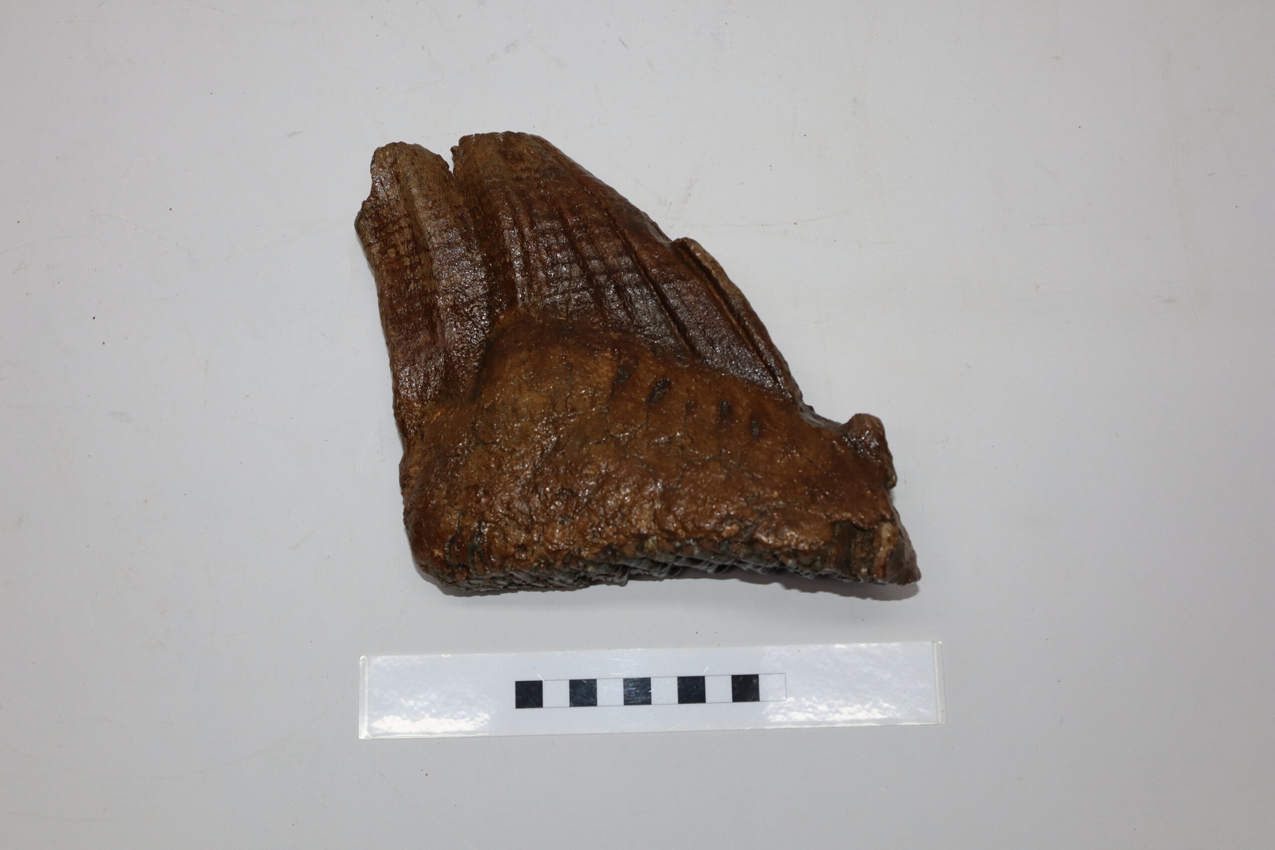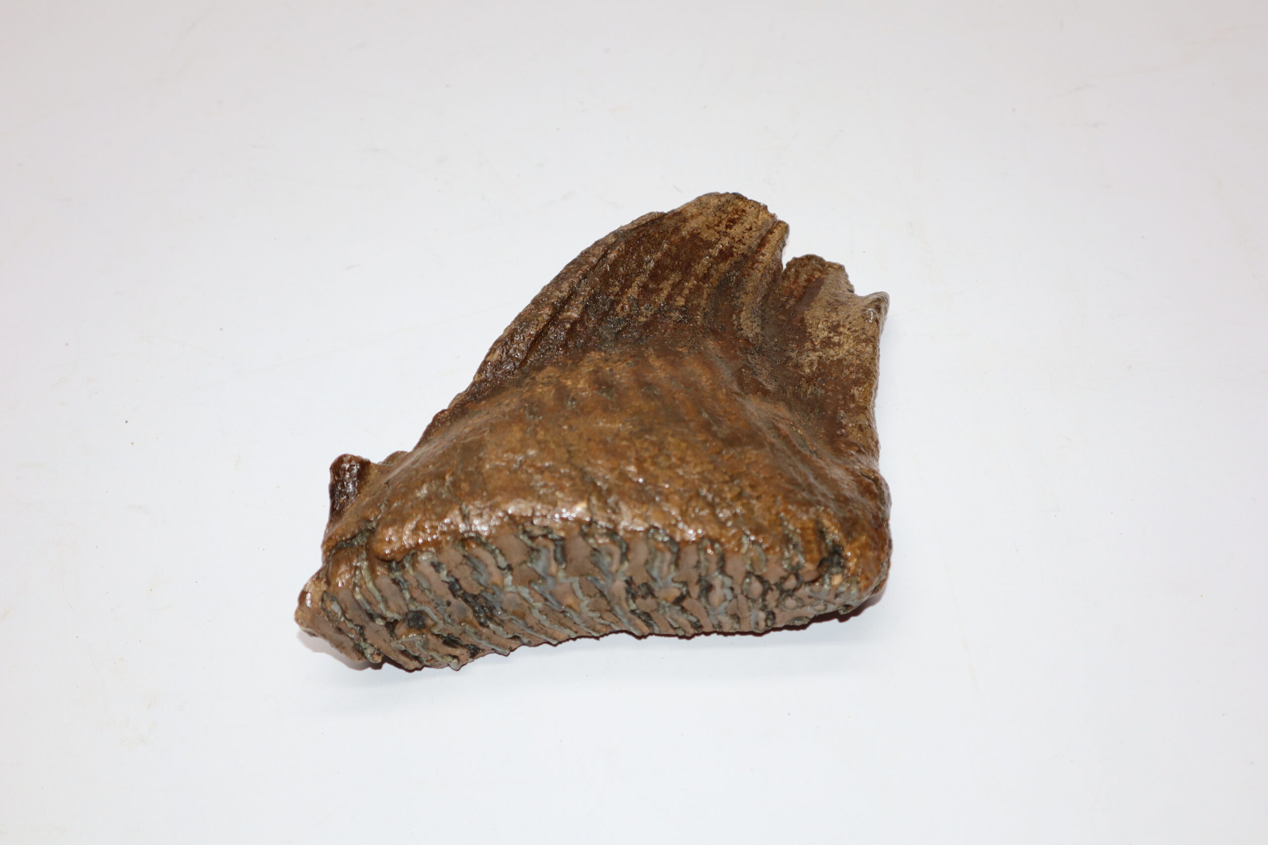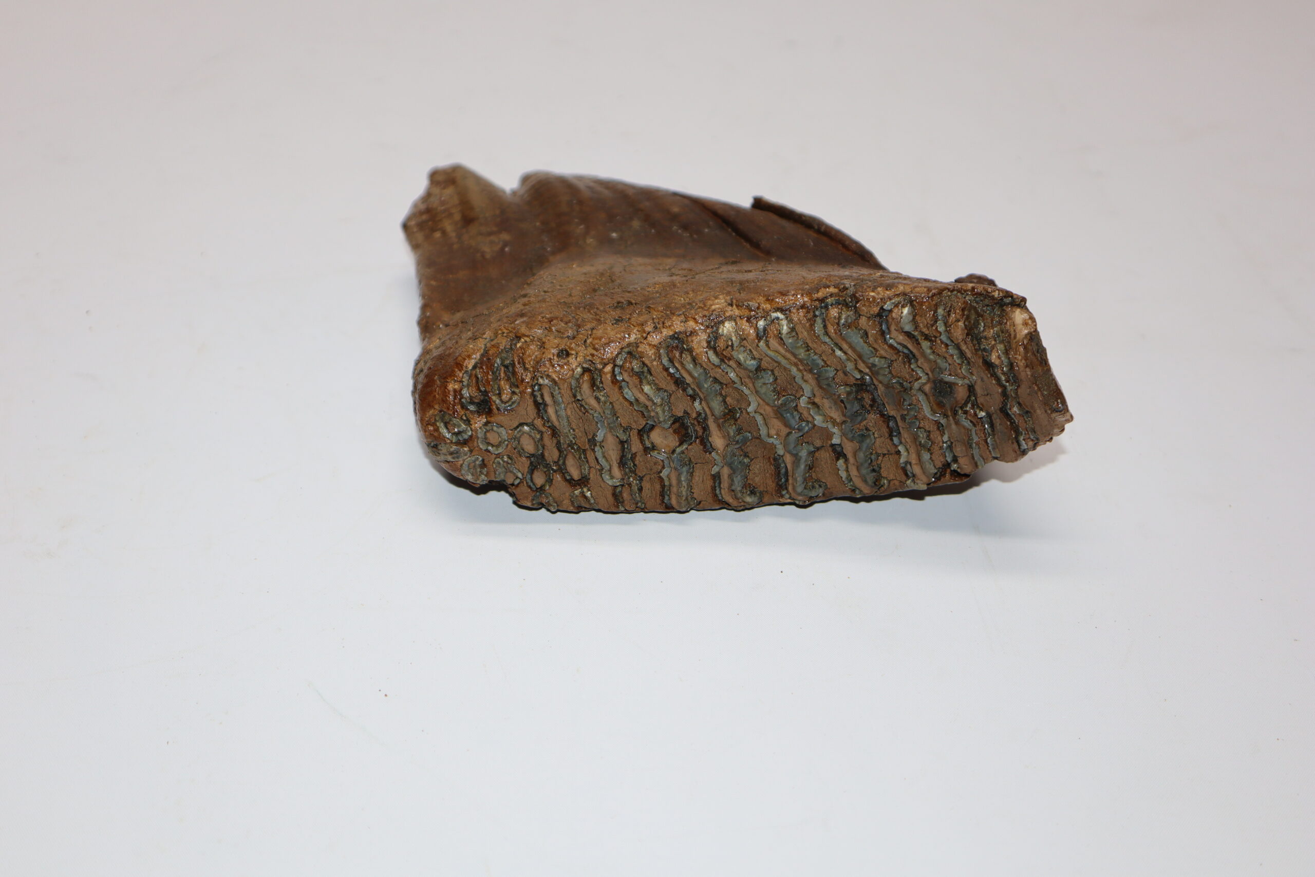 On offer is a beautiful M3 molar of an adult Woolly Mammoth from the Pleistocene era. This molar comes from the left lower jaw and is a goodย example of an adult animal. Good state state of preservation as seen in the images. No restoration whatsoever. The black and white section of the ruler in the image represents 10 cm / 3.9 inch.