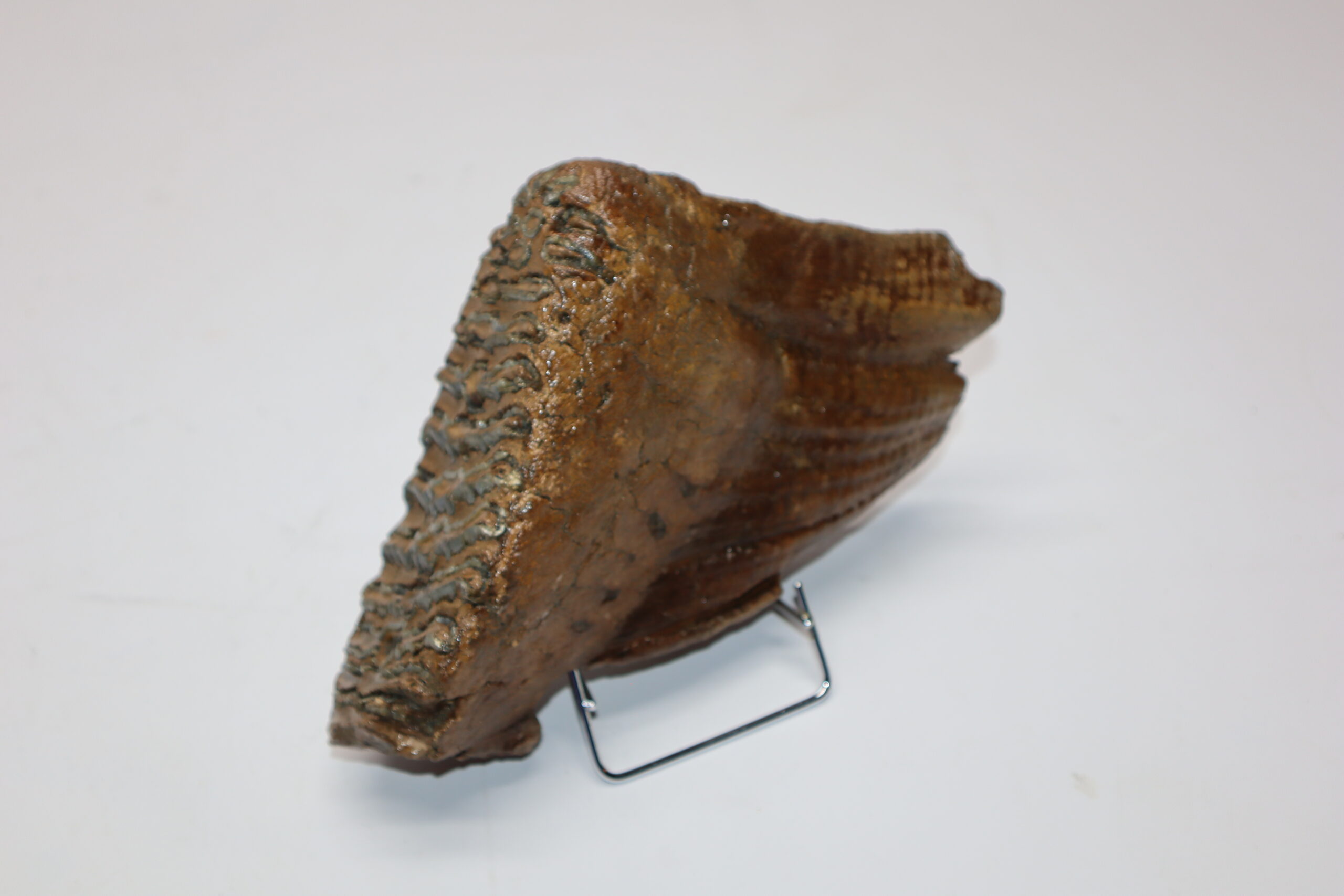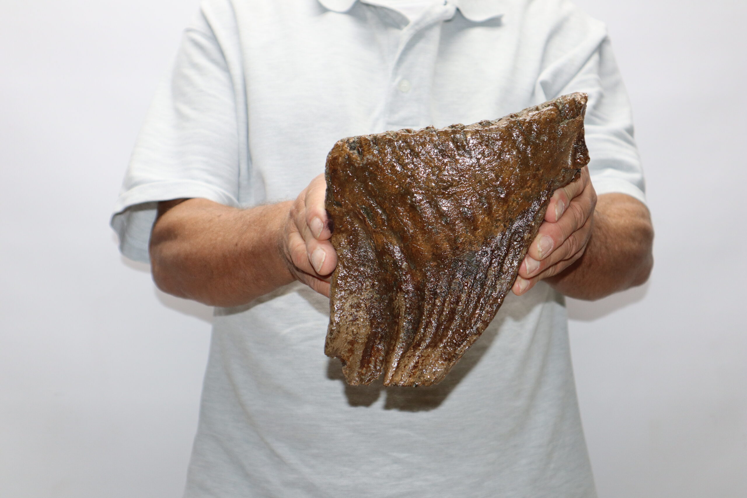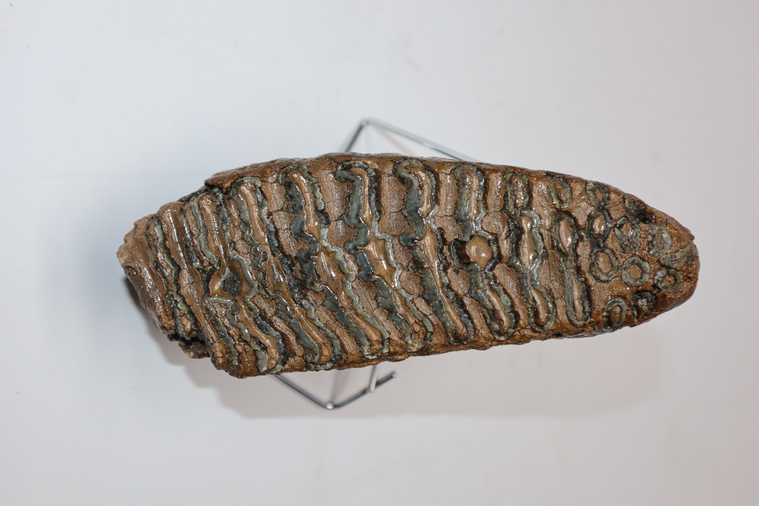 On offer is a beautiful M3 molar of an adult Woolly Mammoth from the Pleistocene era. This molar comes from the left lower jaw and is a goodย example of an adult animal. Good state state of preservation as seen in the images. No restoration whatsoever. The black and white section of the ruler in the image represents 10 cm / 3.9 inch.