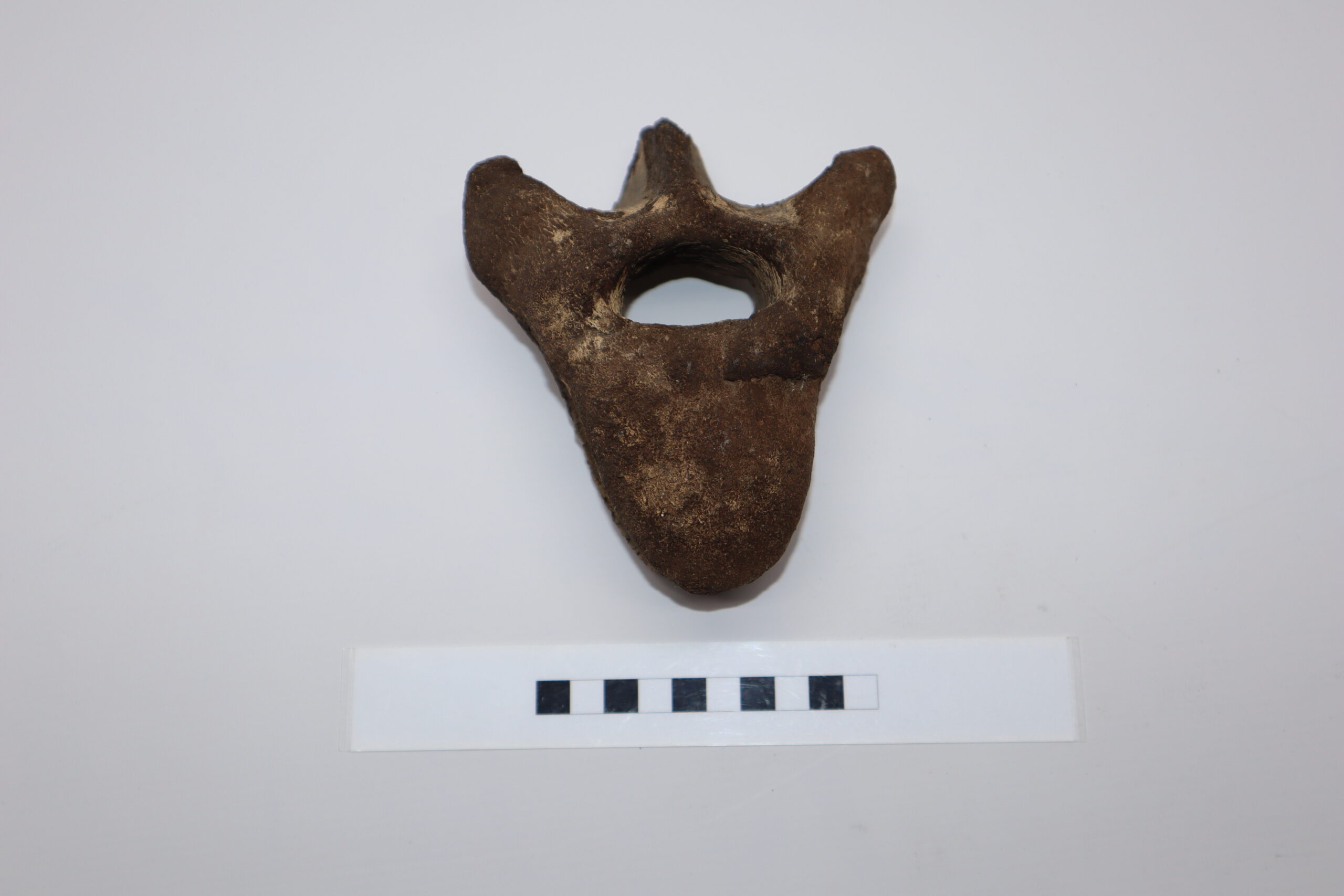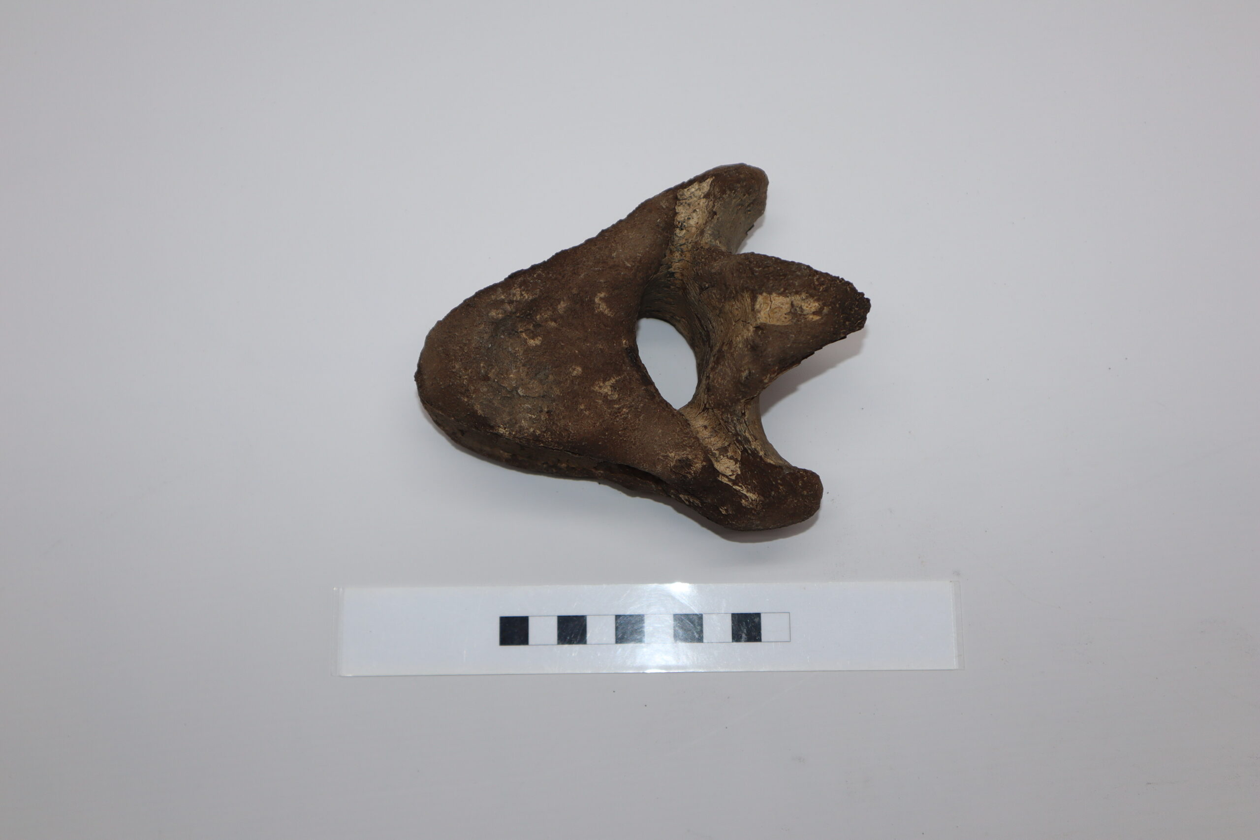 On offer is a beautiful lumbar vertebra of a Stephanorhinus kirchbergensis. Very interesting and rare item. The Stephanorhinus kirchbergensis lived during the Lower to Early Late Pleistocene in Northern Eurasia. Its fossils are much rarer than those of the Woolly Rhinoceros. Good state of preservation, apart from a few minor usual damages, as seen in the images, and highly recommended. This vertebra was located in the lower back section of the spinal cord. The black and white section of the ruler in the image represents 10 cm / 3.9 inch.