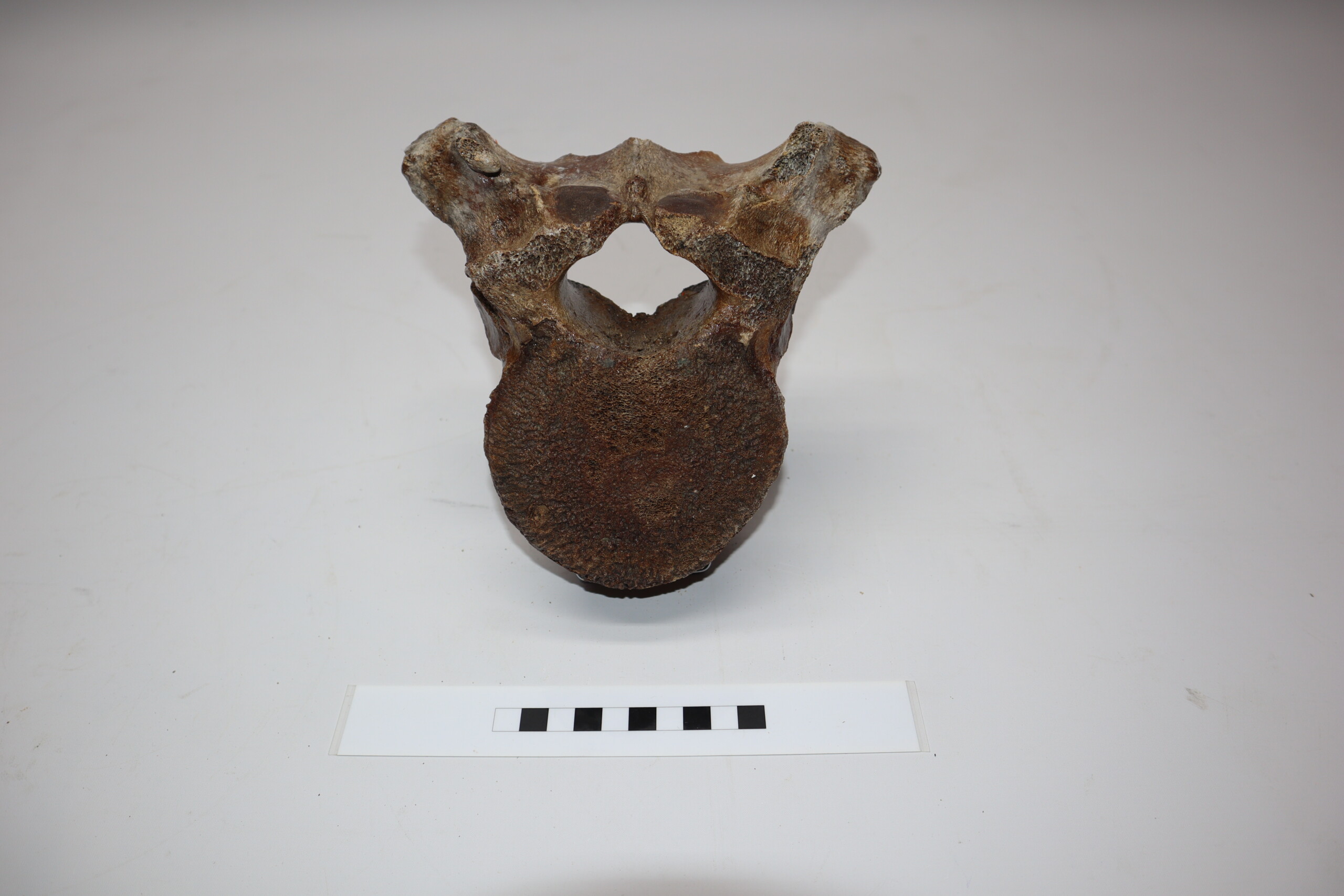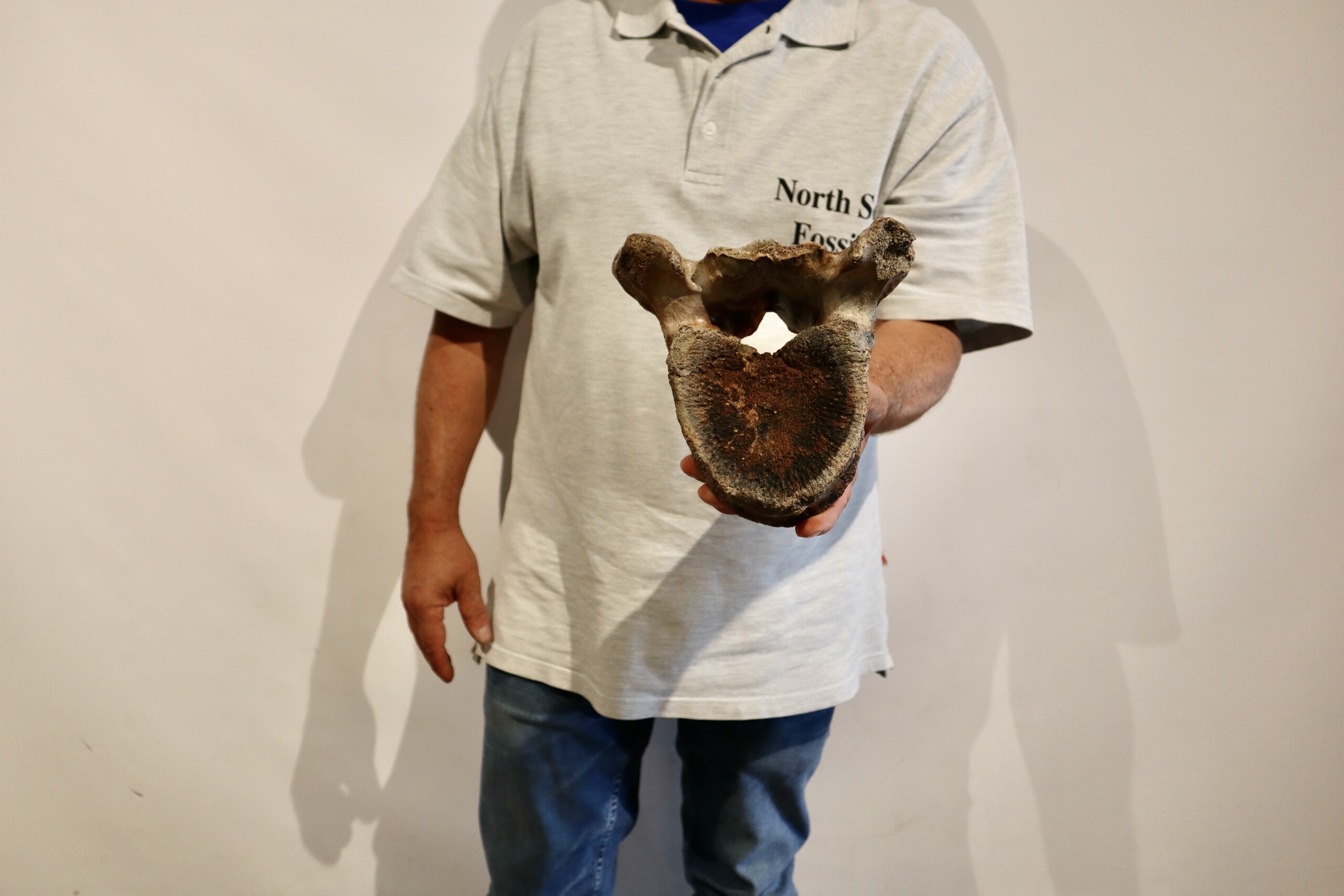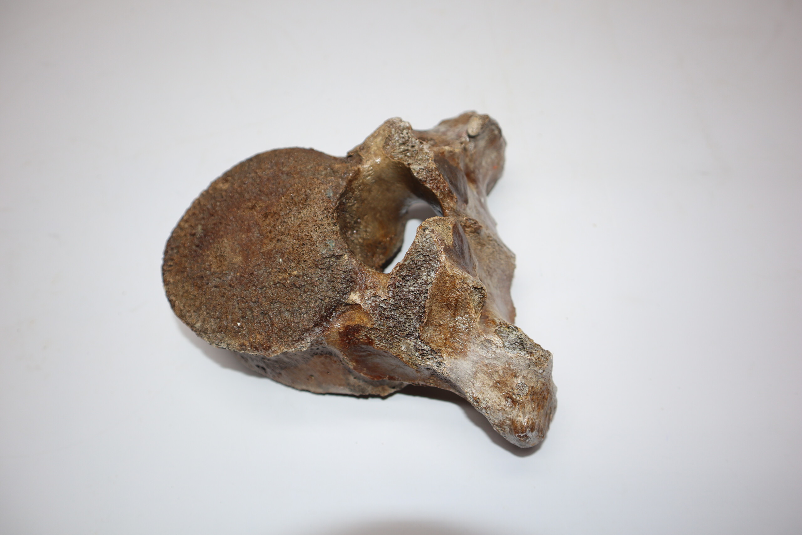 On offer is a beautiful partial thoracic vertebra of a Woolly Mammoth from the Pleistocene era. The Mammoth’s thoracic vertebrae were located in the chest area of the spinal cord. This example is in good condition with only a few usual minor damages, as seen in the photographs. No restoration whatsoever. Judging from the size, this belonged to an adult animal. The black and white section of the ruler in the image represents 10 cm / 3.9 inch.