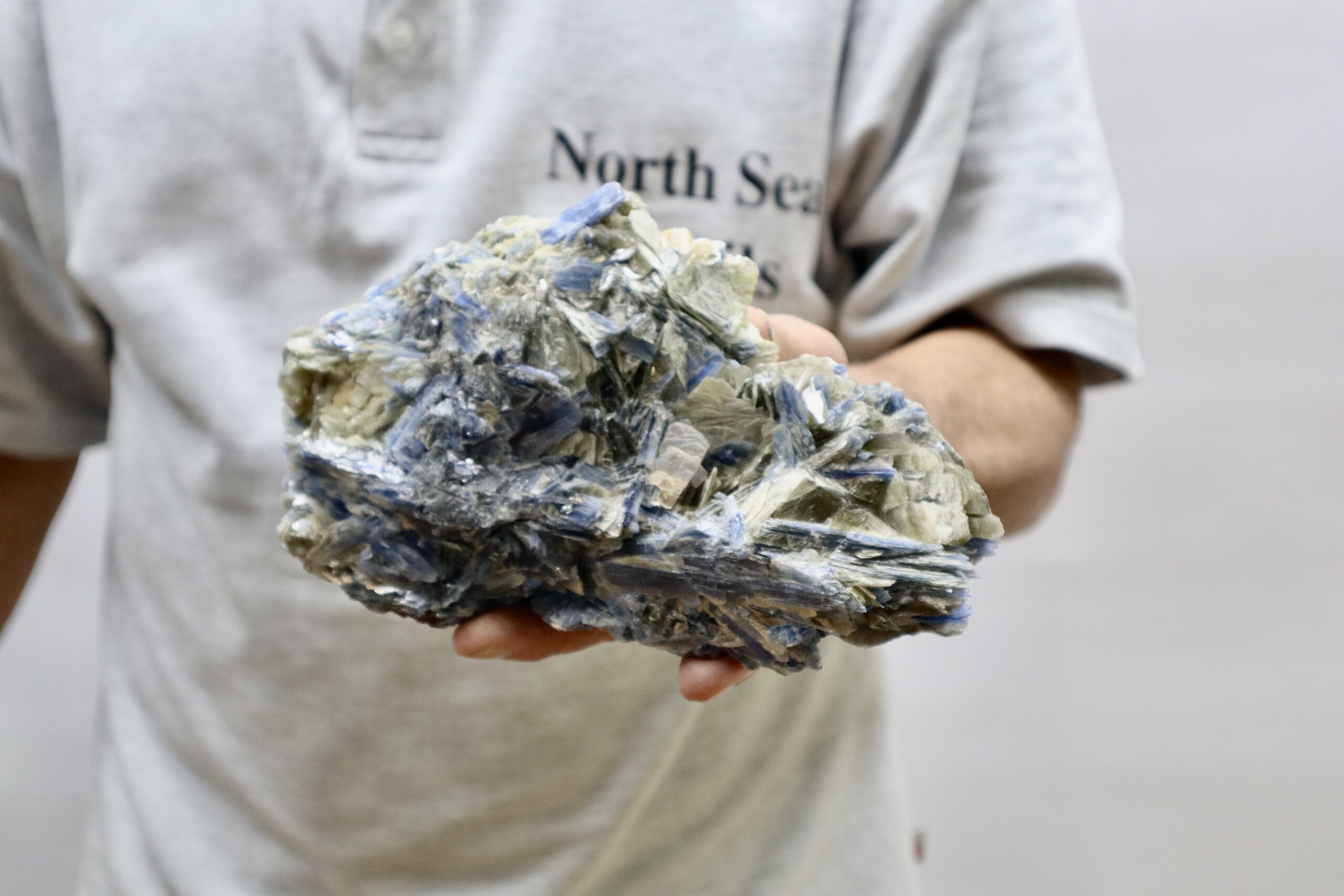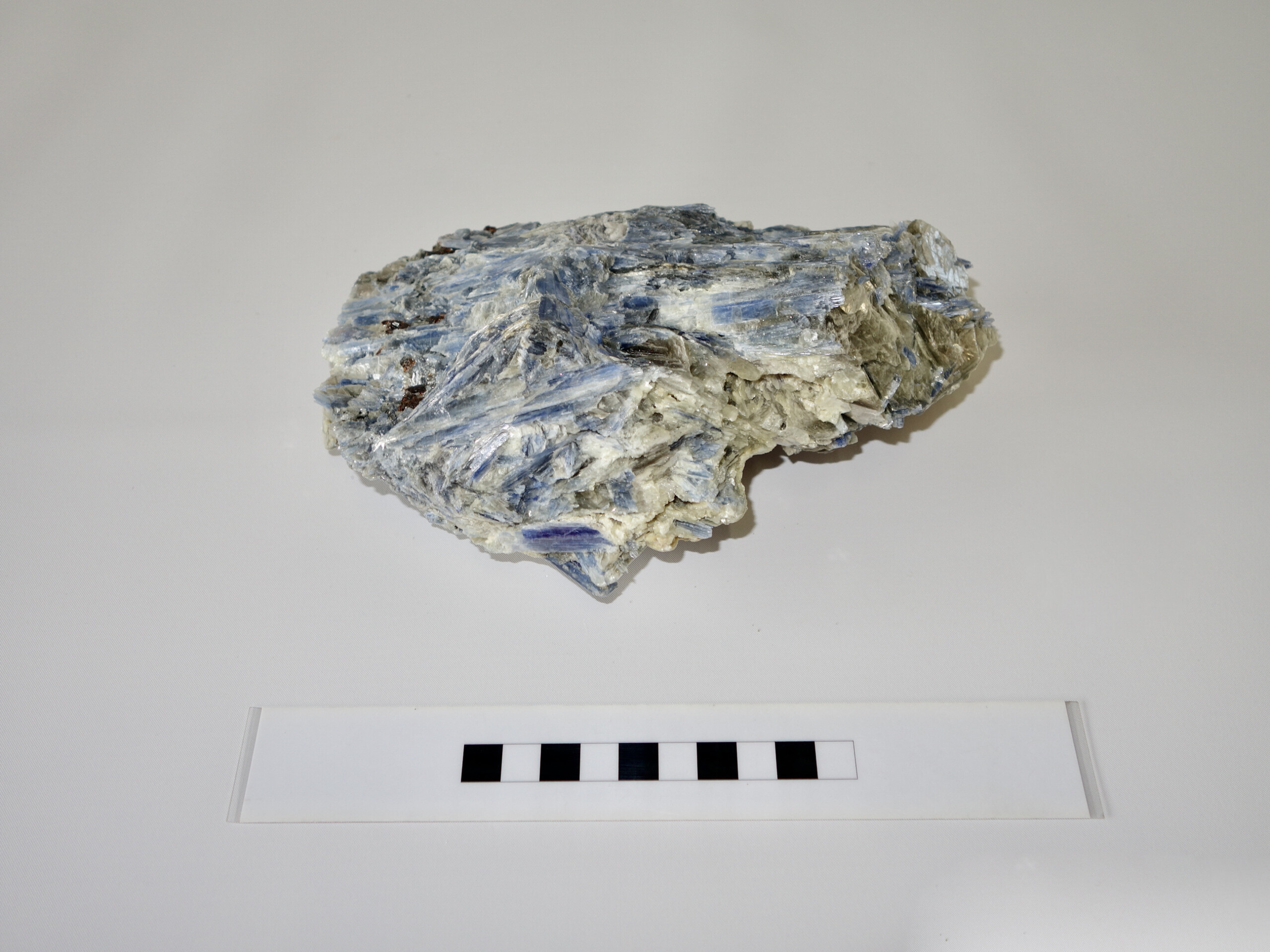 On offer is a beautiful piece of kyanite, a typically blue aluminosilicate mineral.ย This piece is of especially beautiful light blue colouring. The black-and-white section of the ruler in the image represents 10 cm / 3.9 inch.