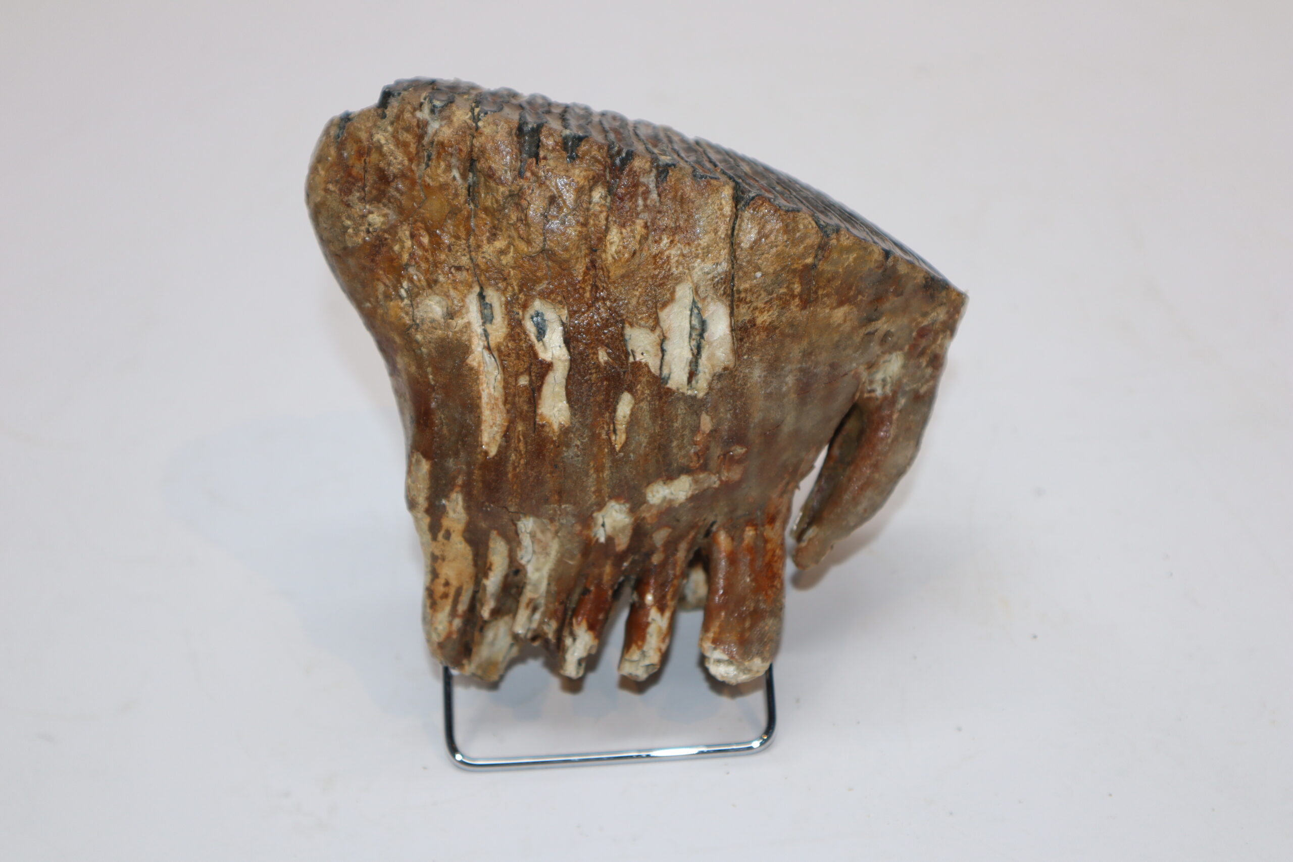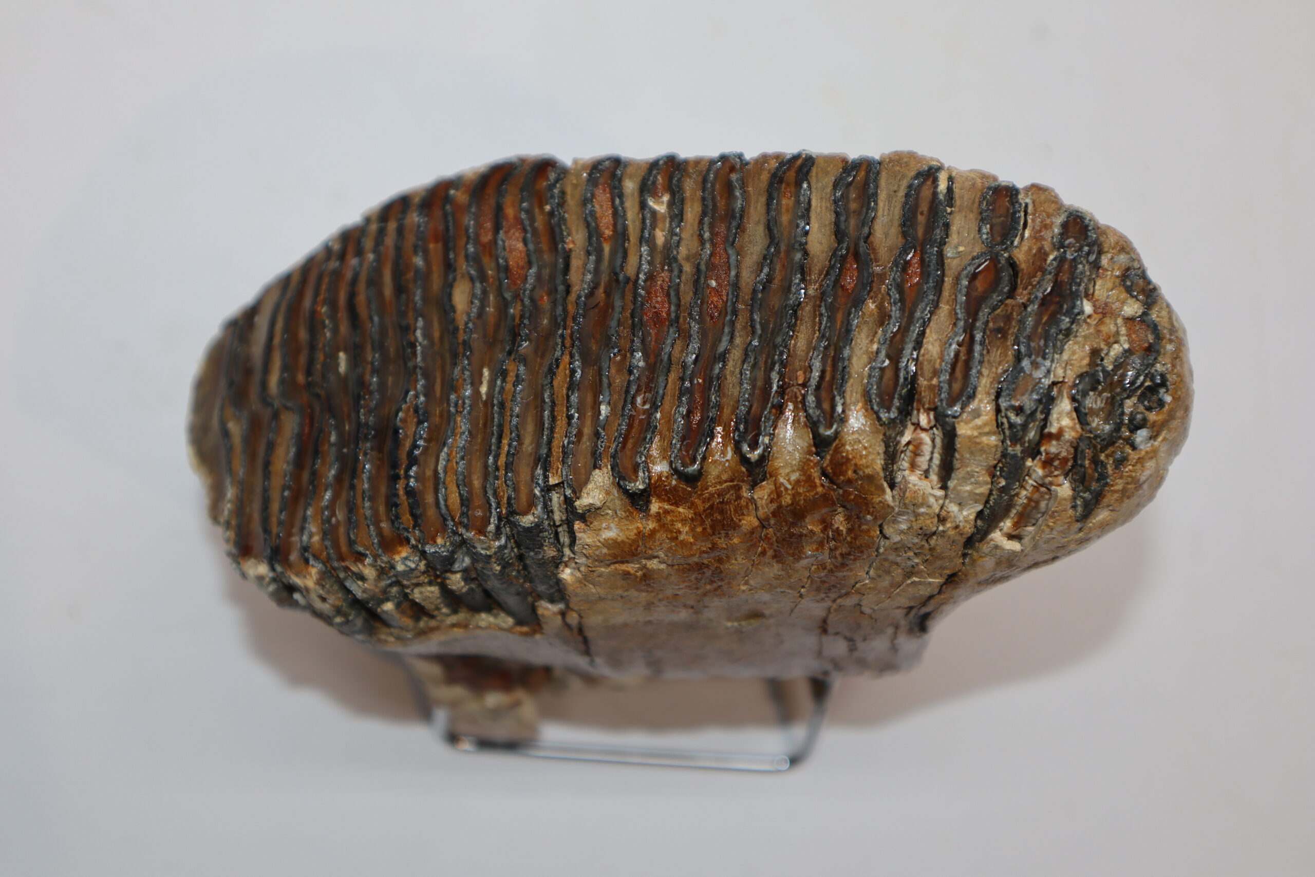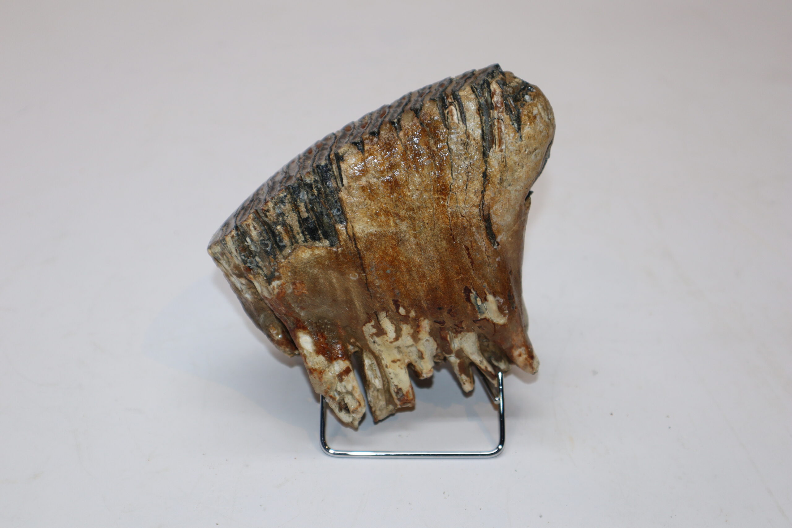 On offer is a beautiful M2 molar of a sub-adult Woolly Mammoth from the Pleistocene era. This molar comes from the left upper jaw and is a nice example of a nearly adult animal, in good state of preservation and with a beautiful chewing surface, as seen in the images. No restoration whatsoever. The black and white section of the ruler in the image represents 10 cm / 3.9 inch.