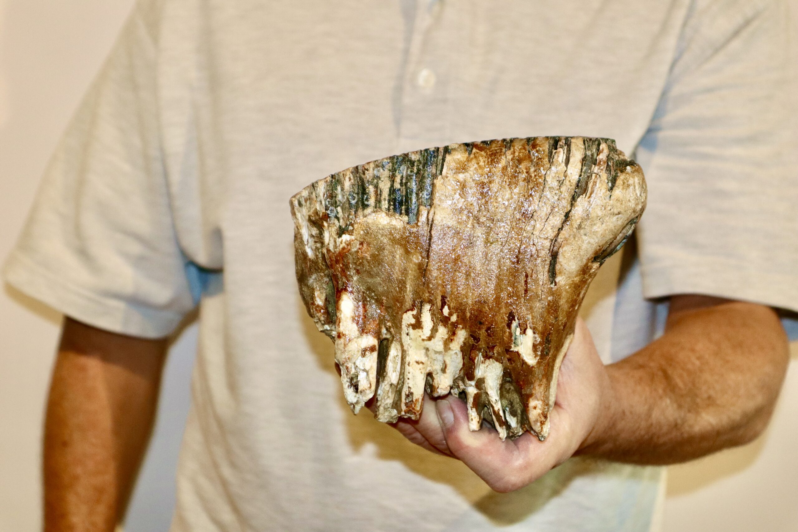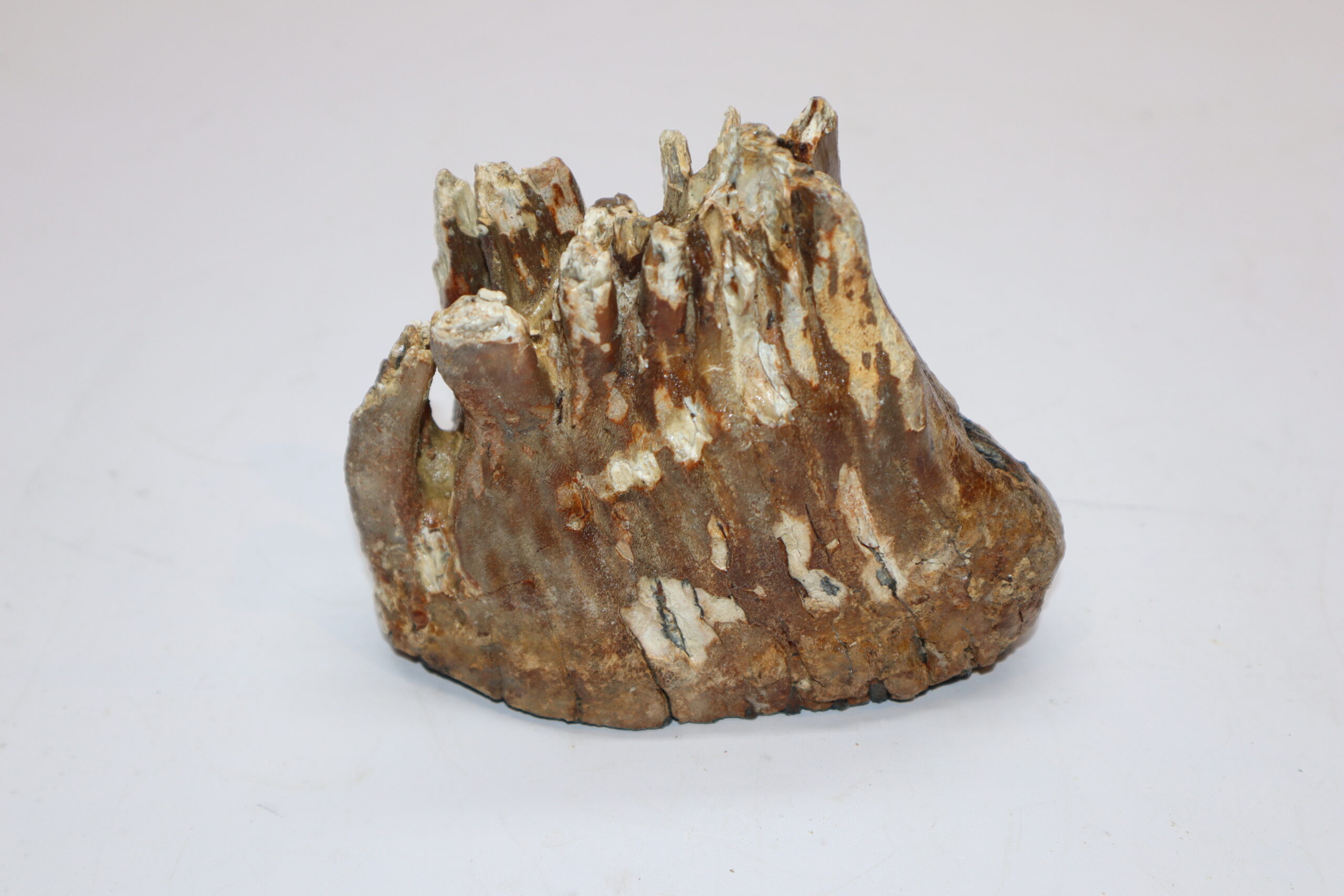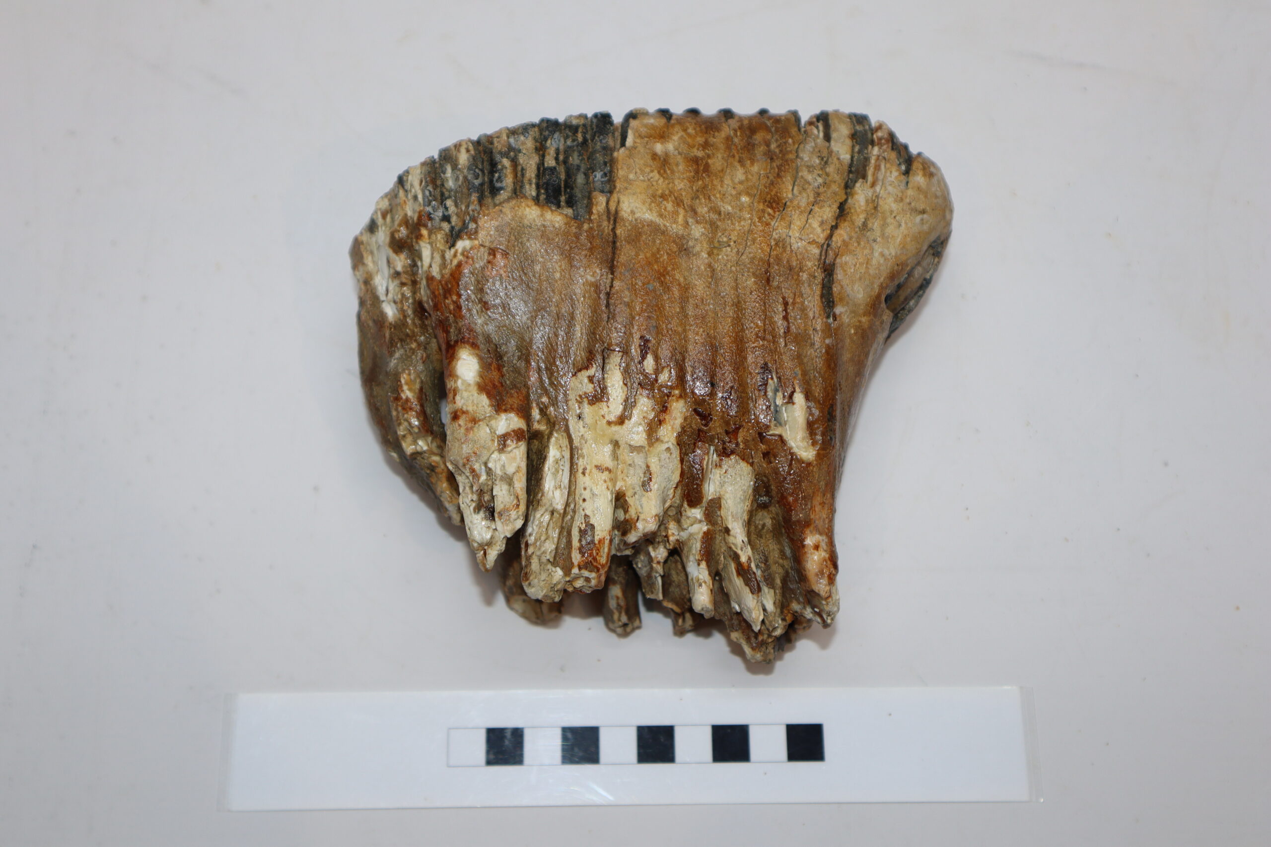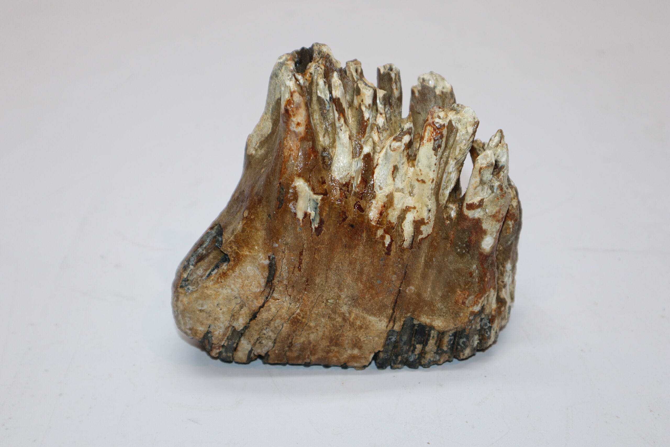 On offer is a beautiful M2 molar of a sub-adult Woolly Mammoth from the Pleistocene era. This molar comes from the left upper jaw and is a nice example of a nearly adult animal, in good state of preservation and with a beautiful chewing surface, as seen in the images. No restoration whatsoever. The black and white section of the ruler in the image represents 10 cm / 3.9 inch.