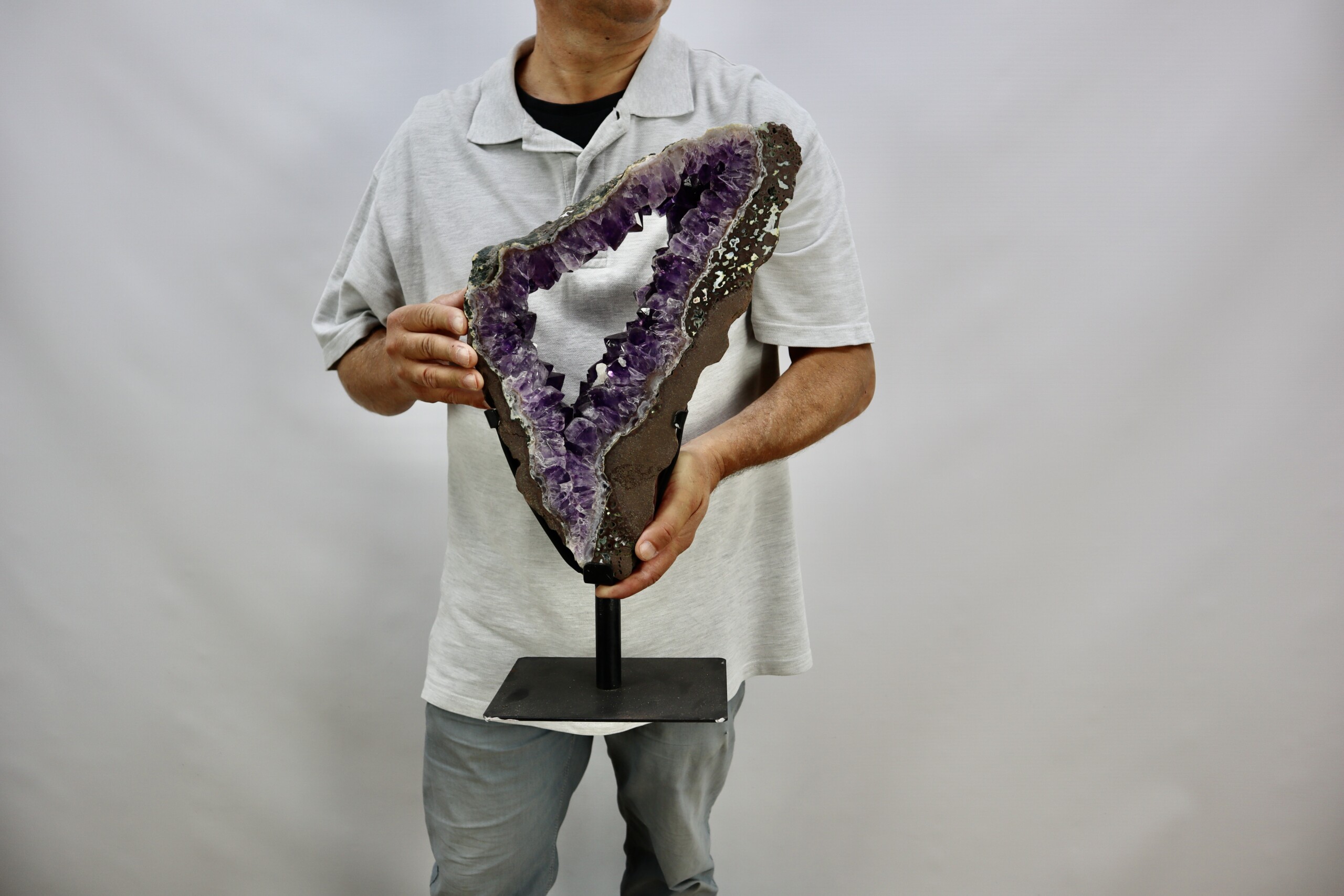 Professionally mounted on a custom-made metal stand with black finish, and ready to display.