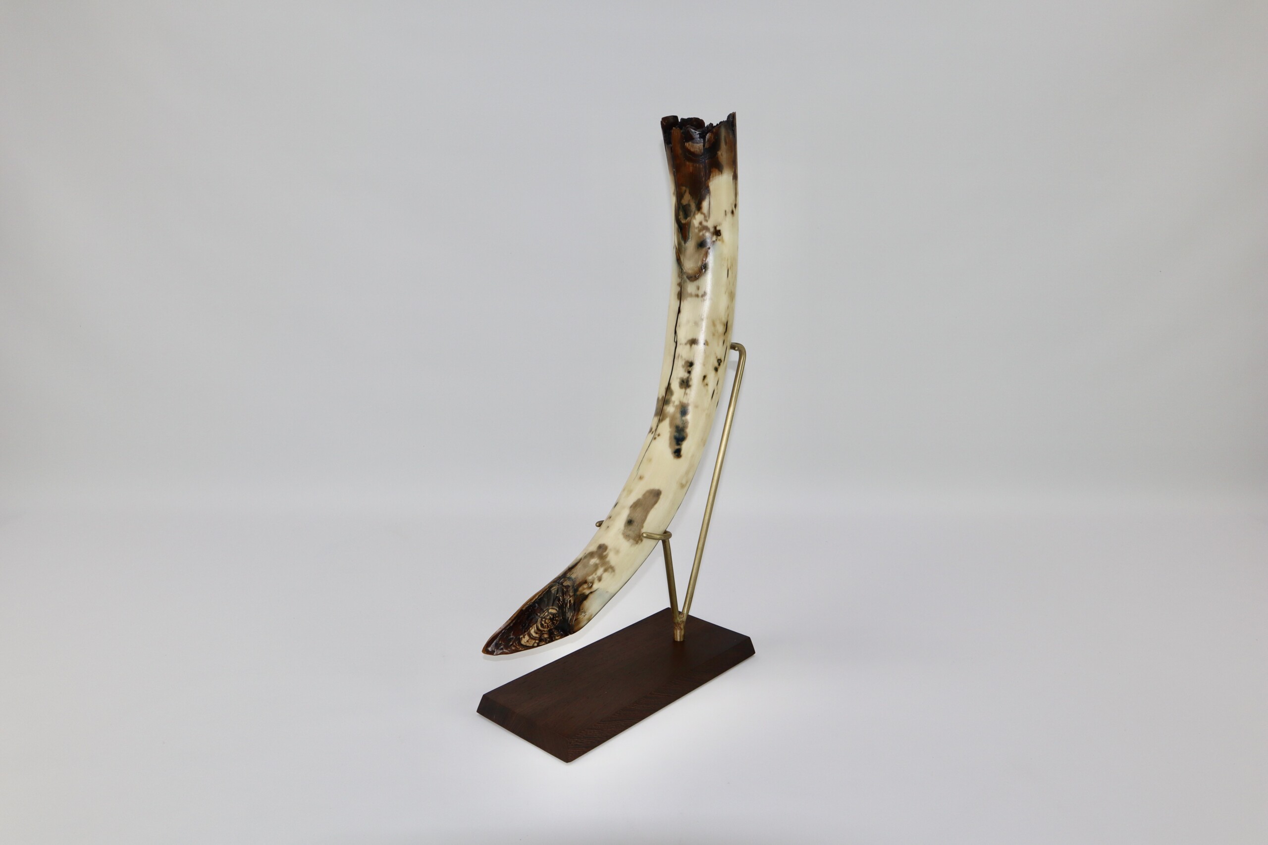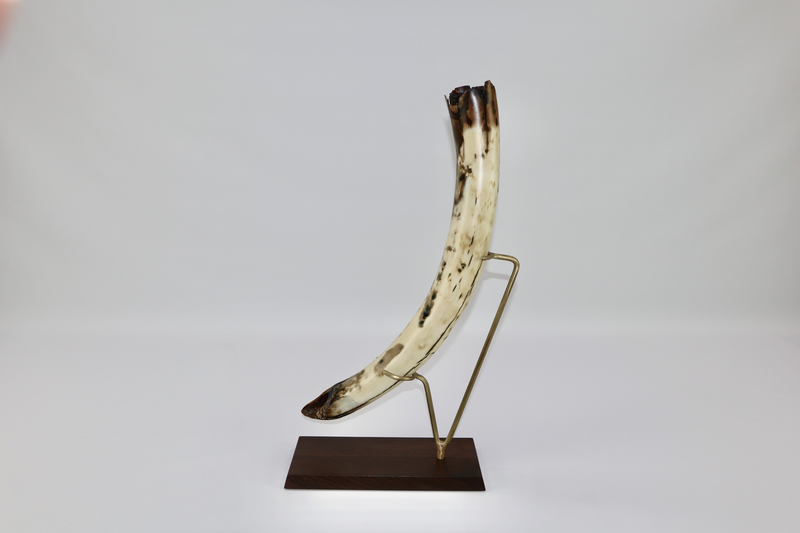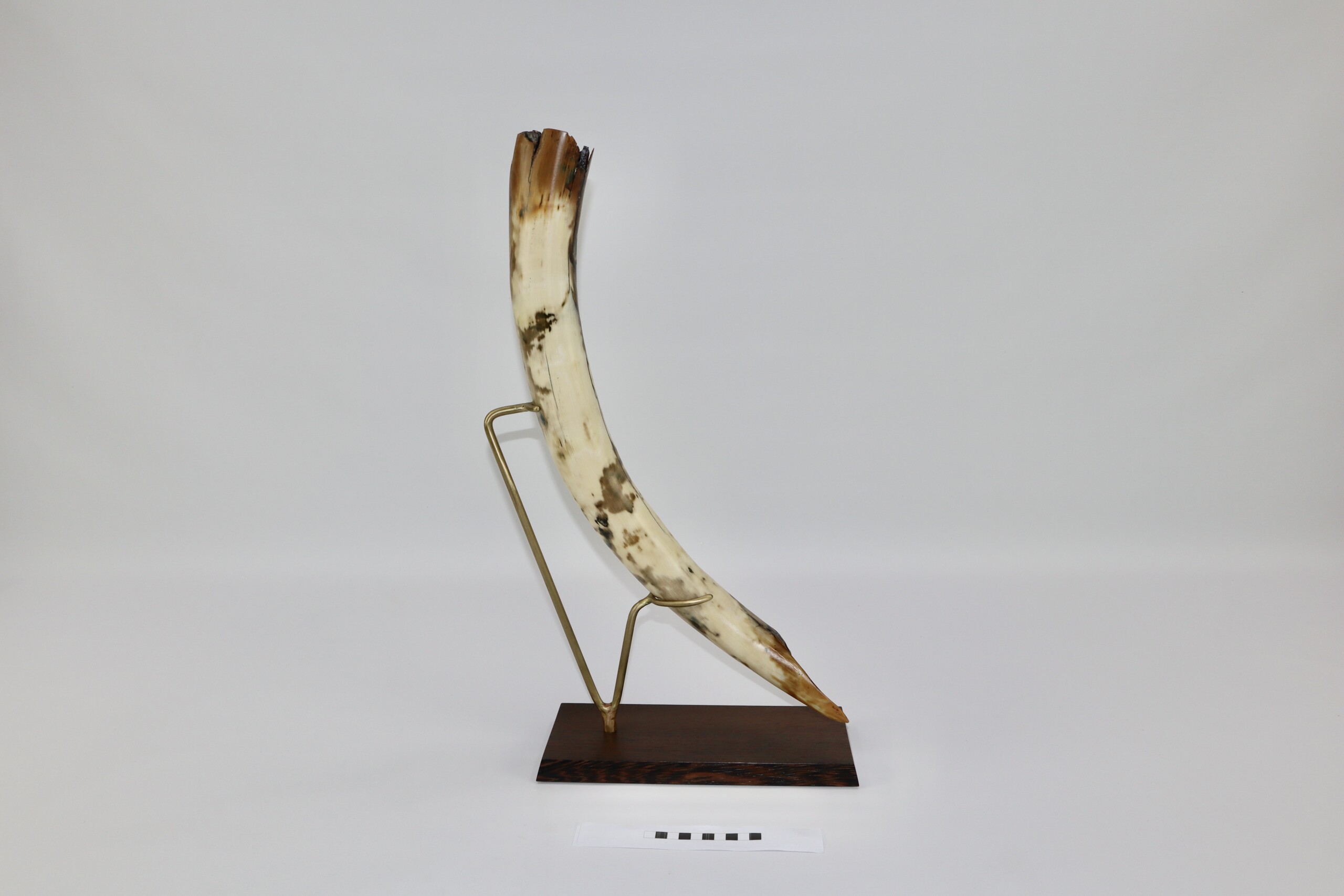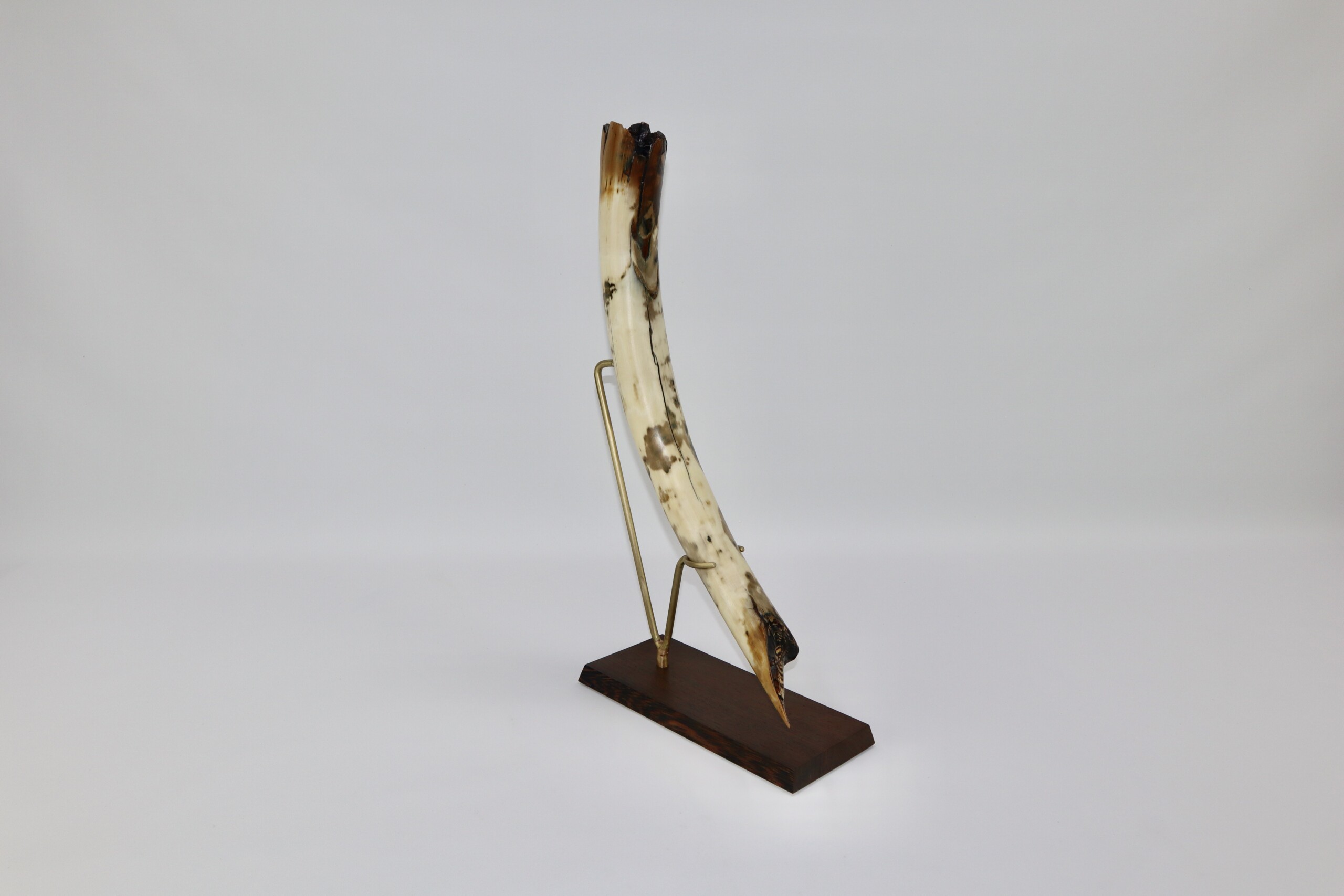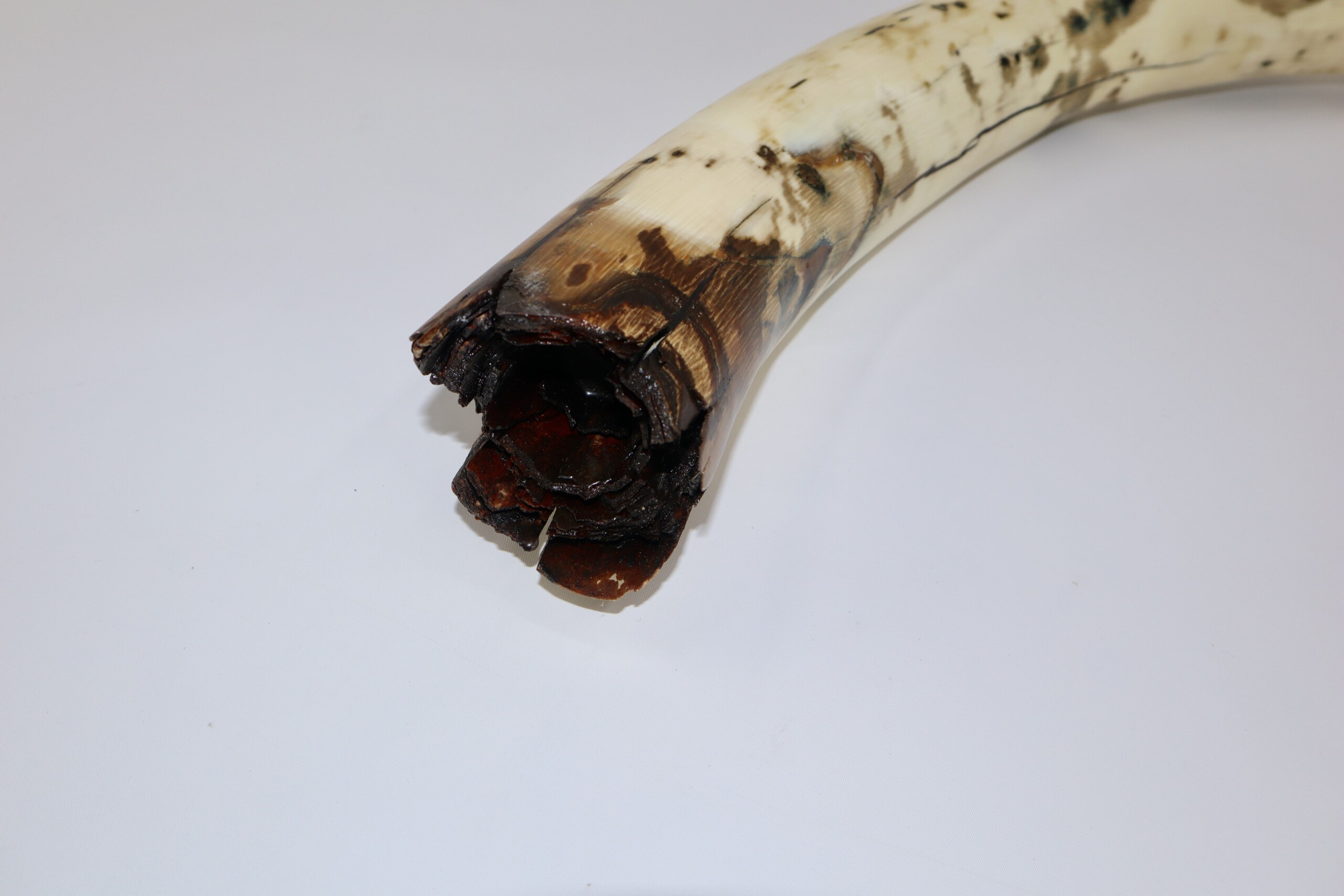 On offer is a fantastic half tusk of a female Woolly Mammoth from the Pleistocene era. Although it is only a half tusk, otherwise it is in excellent condition as seen in the images. No restoration whatsoever. This is the middle part of the tusk, the base and tip are missing. This tusk piece is of beautiful ivory of mainly white, grey and brown ivory. Stunning patterning. Fantastic piece and highly recommended. The black and white section of the ruler in the image represents 10 cm / 3.9 inch. This piece has been applied with a matt finish, but it is also possible to order it with a glossy finish.