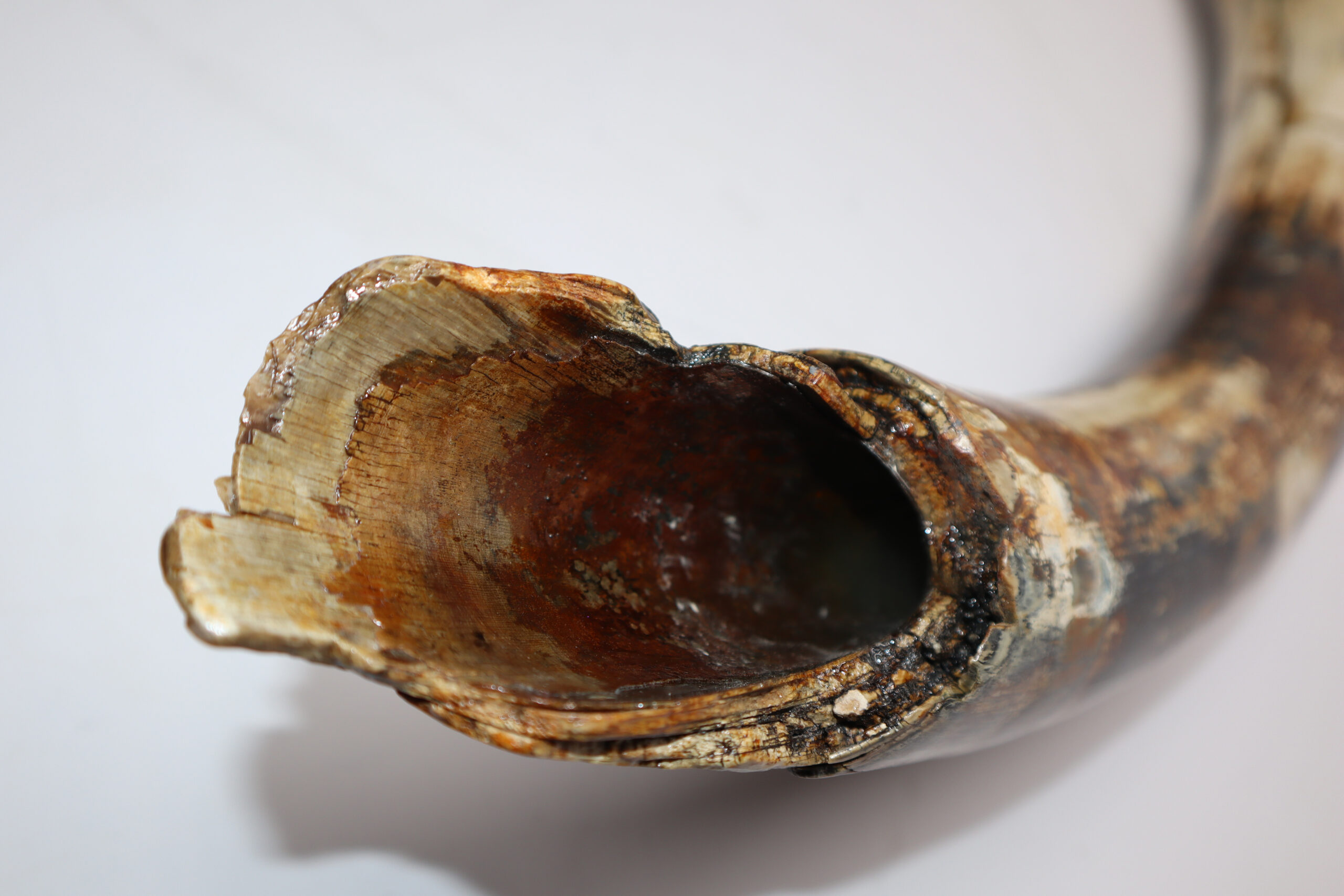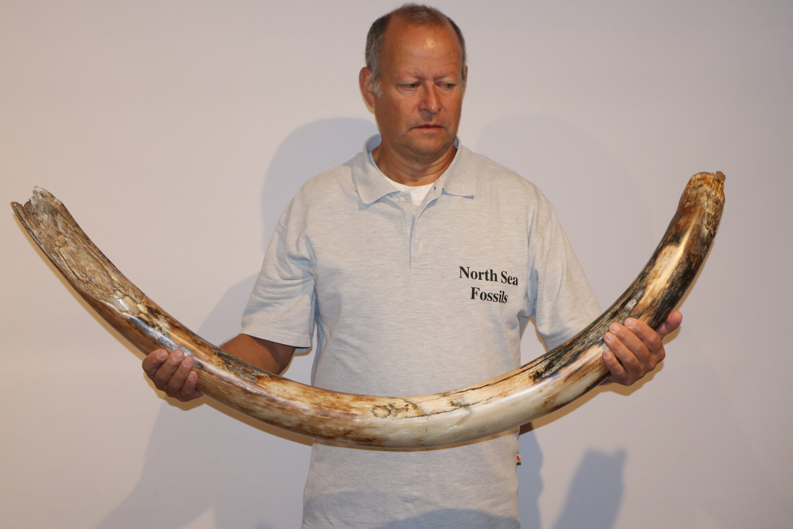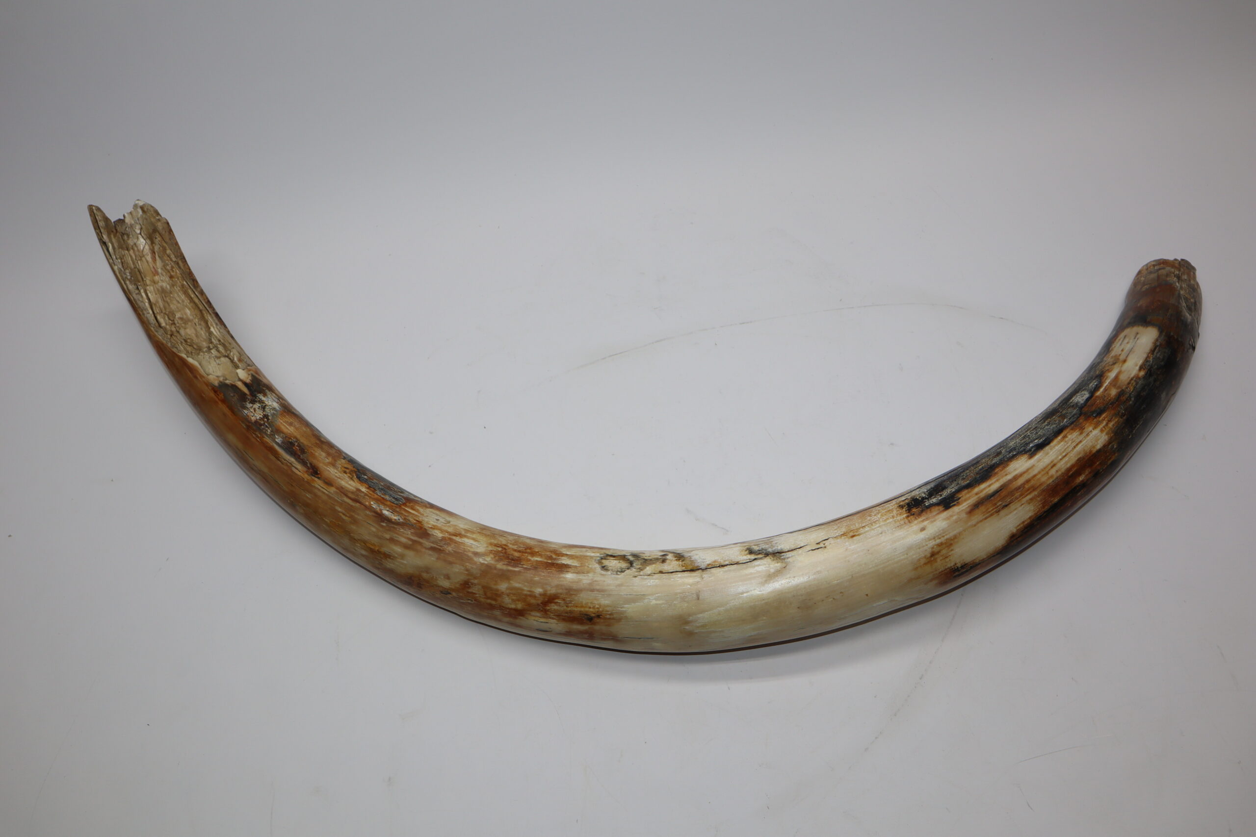 On offer is a fantastic half tusk of a Woolly Mammoth from the Pleistocene era. Although it is only a half tusk, otherwise it is in excellent condition as seen in the images. This is the base part of the tusk, the tip part is missing. No restoration whatsoever. This tusk piece is of beautiful ivory of mainly white, gold, grey and brown ivory, and with stunning patterning. Fantastic piece and highly recommended. The black and white section of the ruler in the image represents 10 cm / 3.9 inch. This piece has been applied with a matt finish, but it is also possible to order it with a glossy finish.