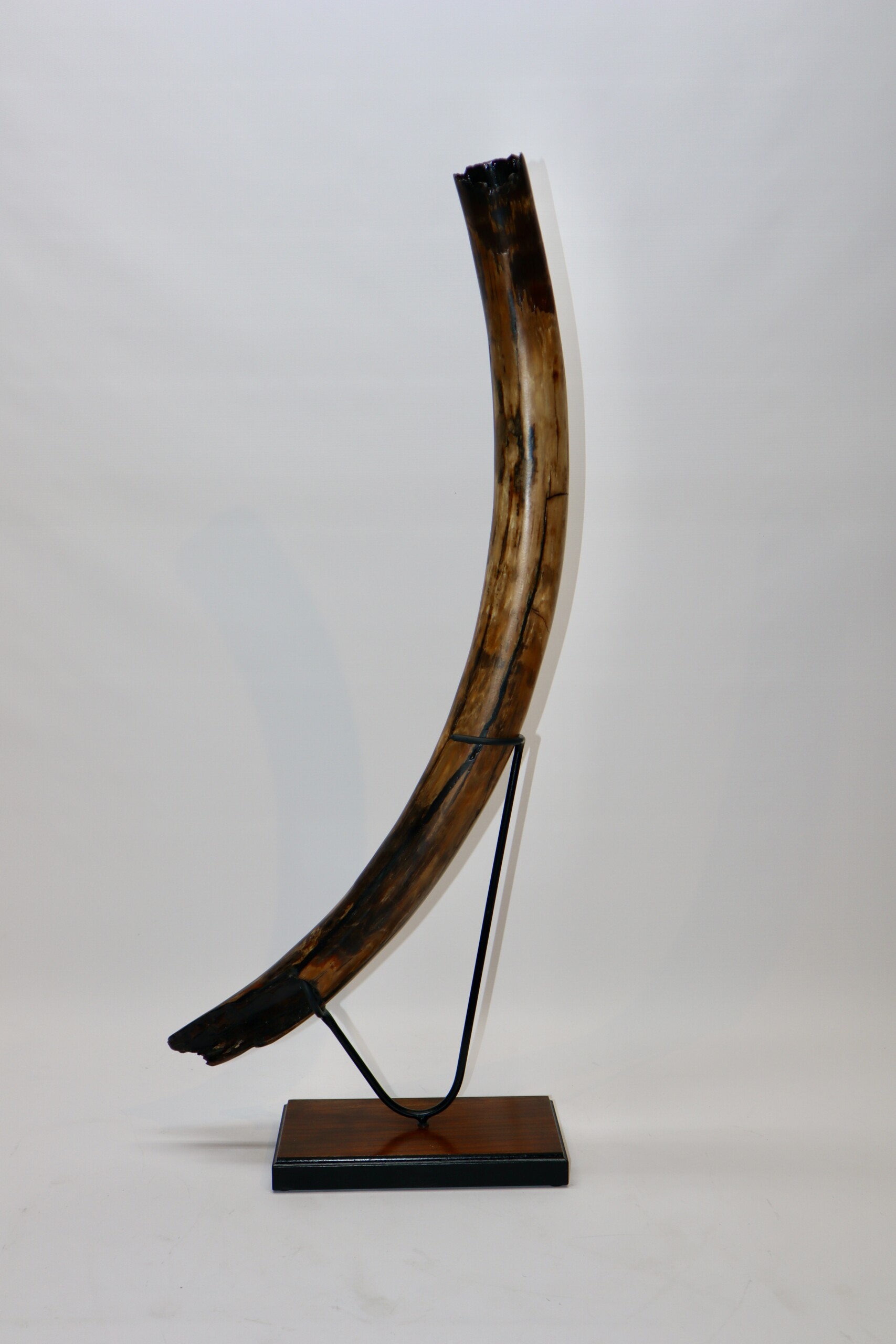 On offer is a fantastic half tusk of a Woolly Mammoth from the Pleistocene era. Although it is only a half tusk, otherwise it is in excellent condition as seen in the images. This is the middle part of the tusk, the base and tip are missing. This tusk piece is of beautiful ivory of mainly white, gold, grey andย brown ivory, and with stunning patterning. Fantastic piece and highly recommended. The black and white section of the ruler in the image represents 10 cm / 3.9 inch. This piece has been applied with a matt finish, but it is also possible to order it with a glossy finish.