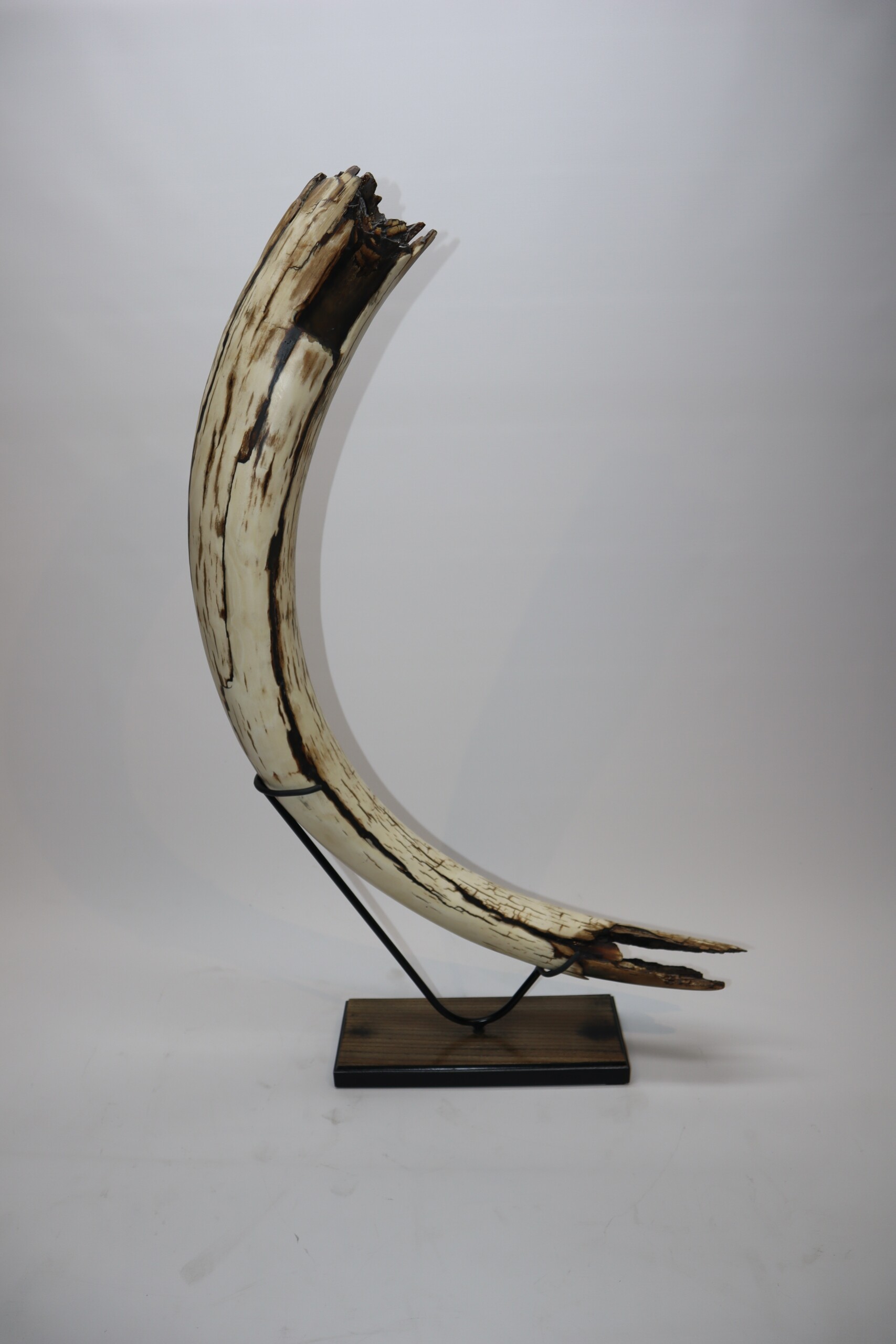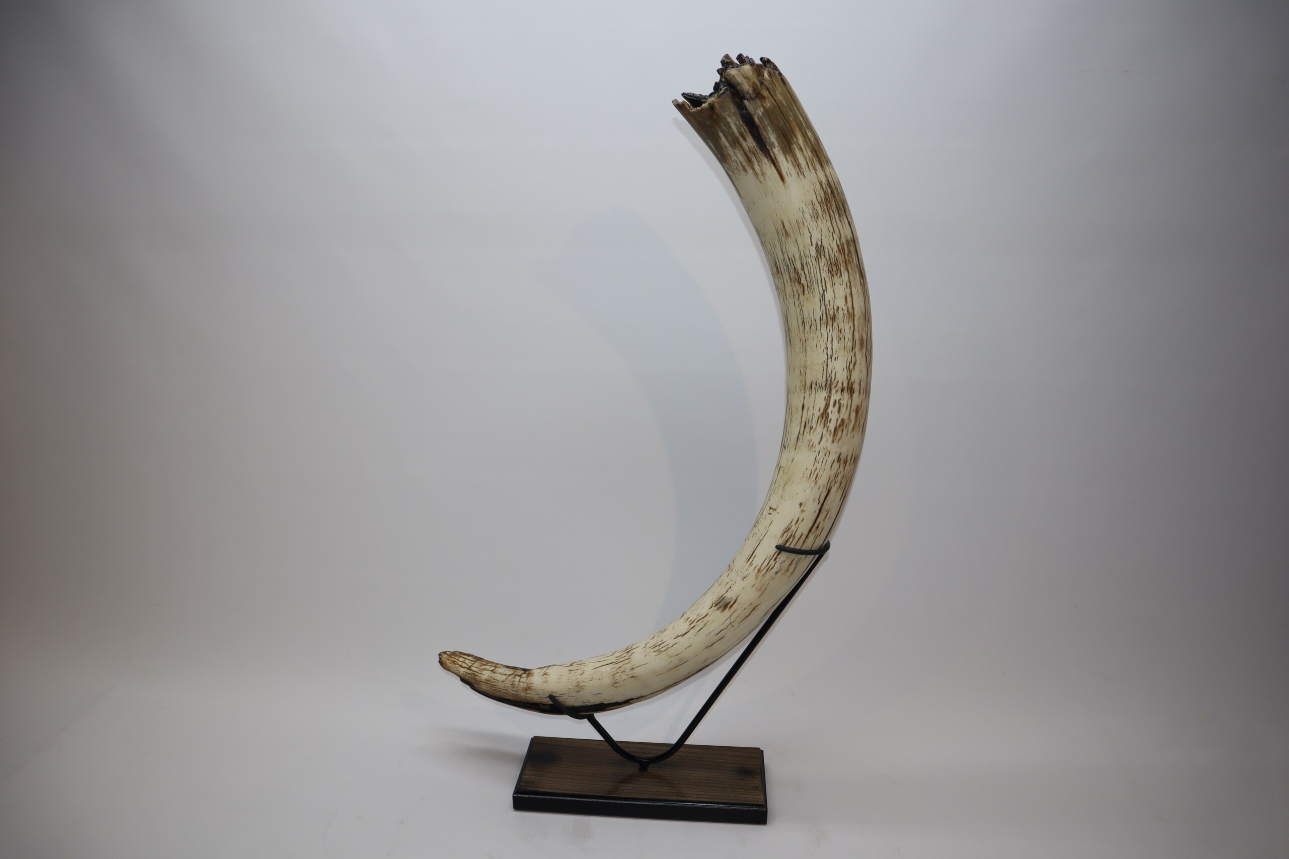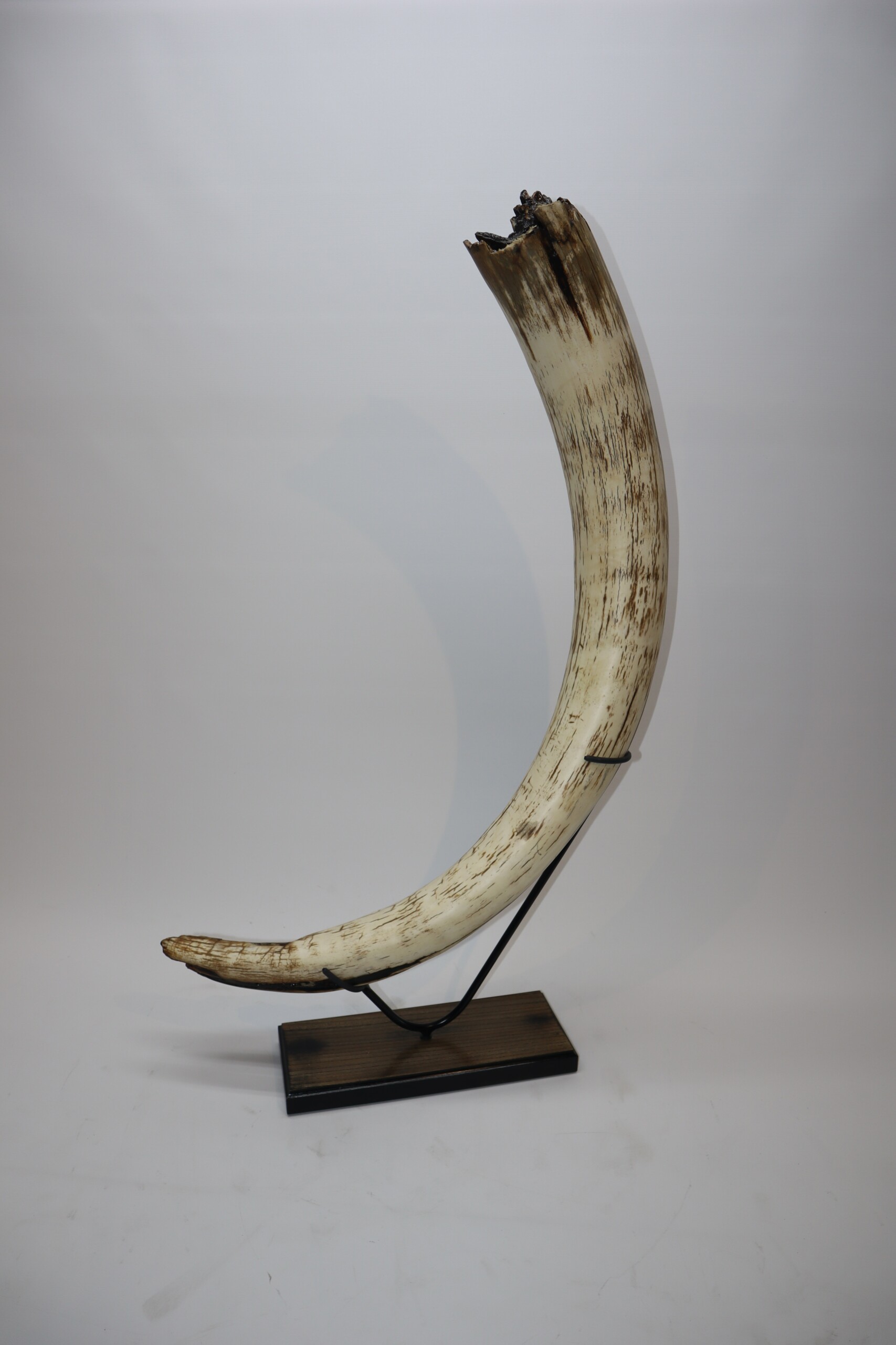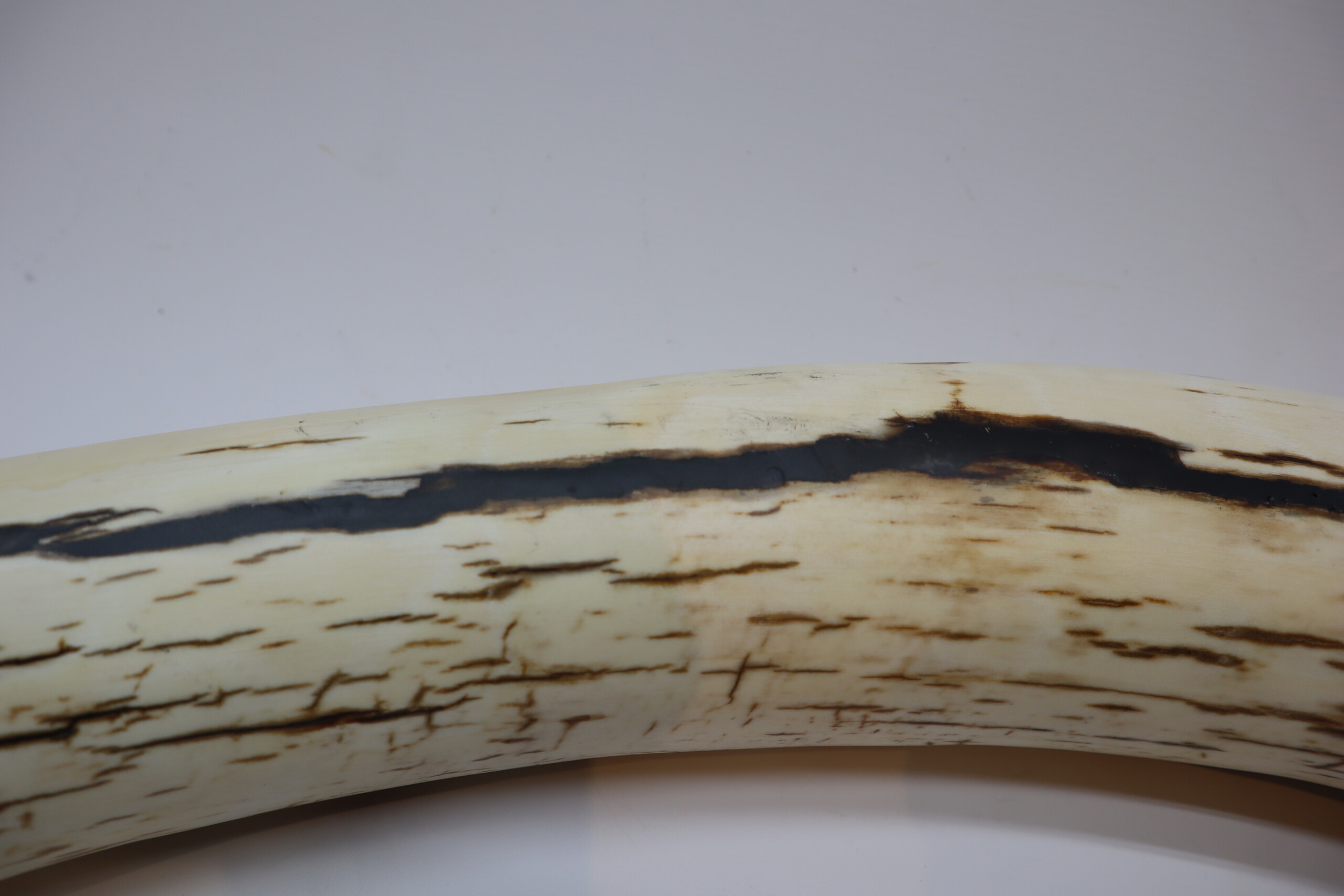 On offer is a fantastic half tusk of a Woolly Mammoth from the Pleistocene era. Although it is only a half tusk, otherwise it is in excellent condition as seen in the images. A crack has been professionally repaired, otherwise no restoration whatsoever. This tusk piece is of beautiful ivory of mainly white, gold, grey and brown ivory, and with stunning patterning. Fantastic piece and highly recommended. The black and white section of the ruler in the image represents 10 cm / 3.9 inch. This piece has been applied with a matt finish, but it is also possible to order it with a glossy finish.