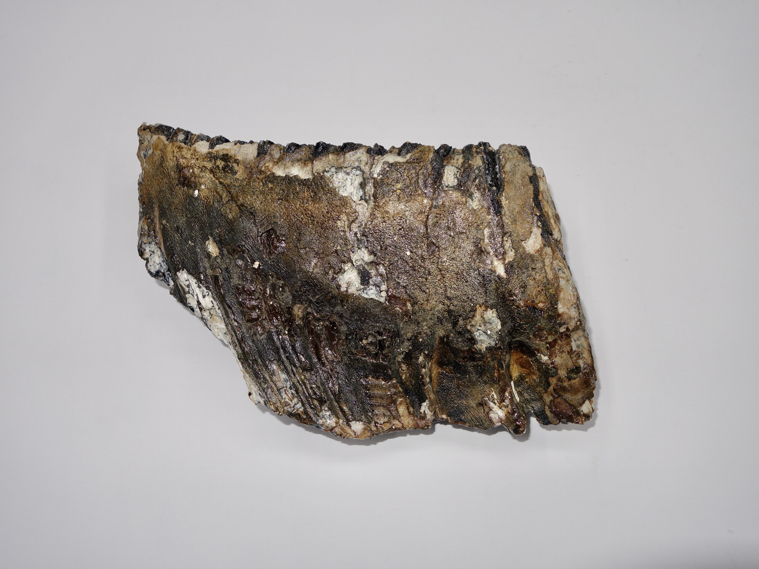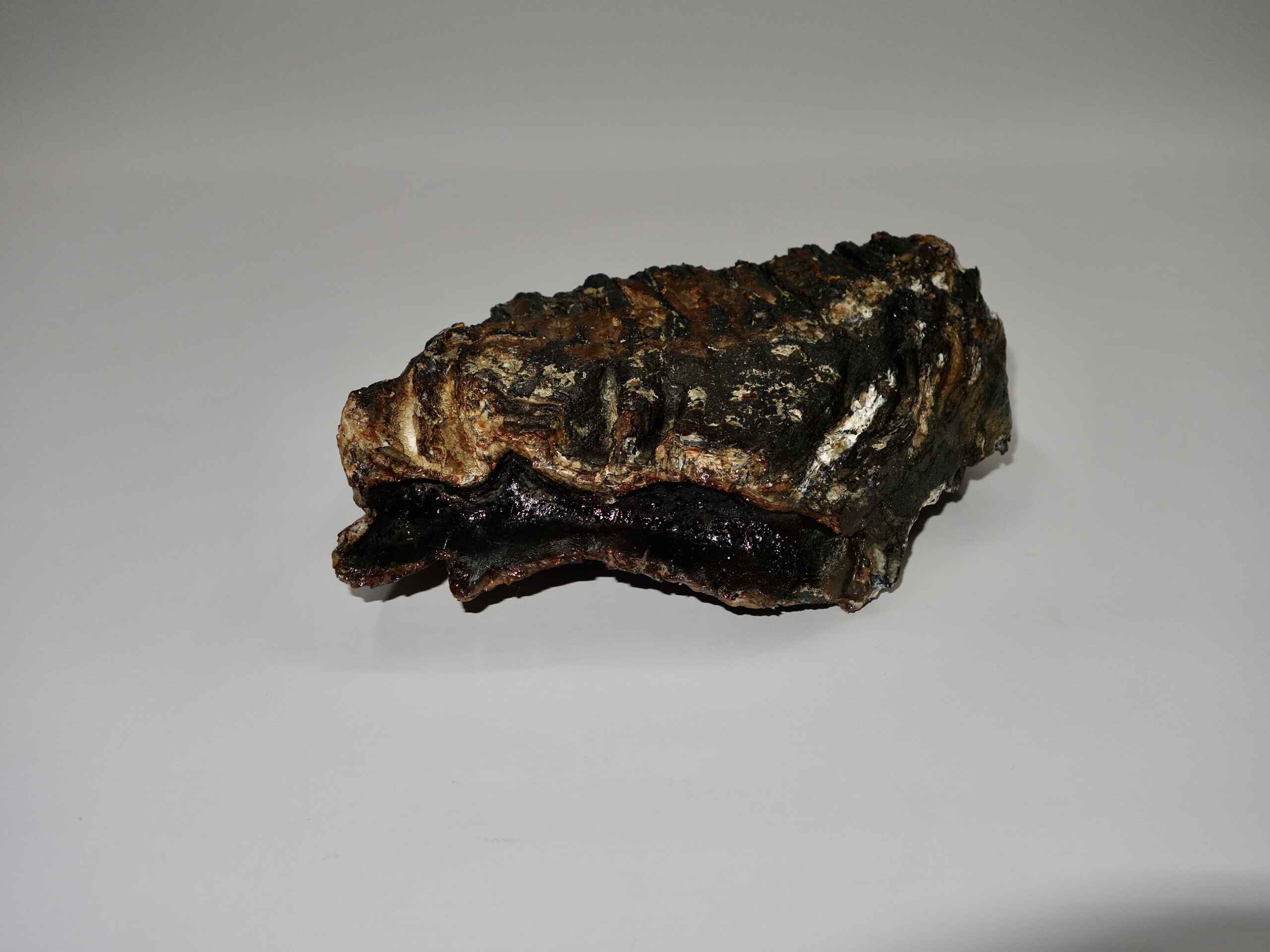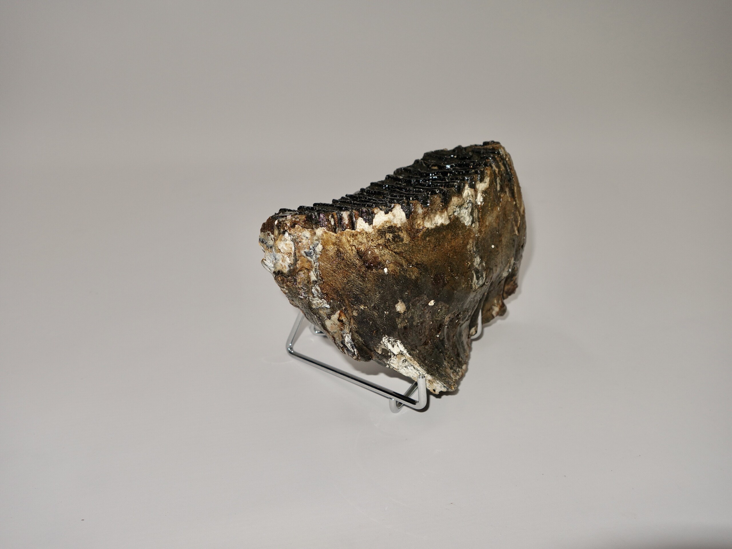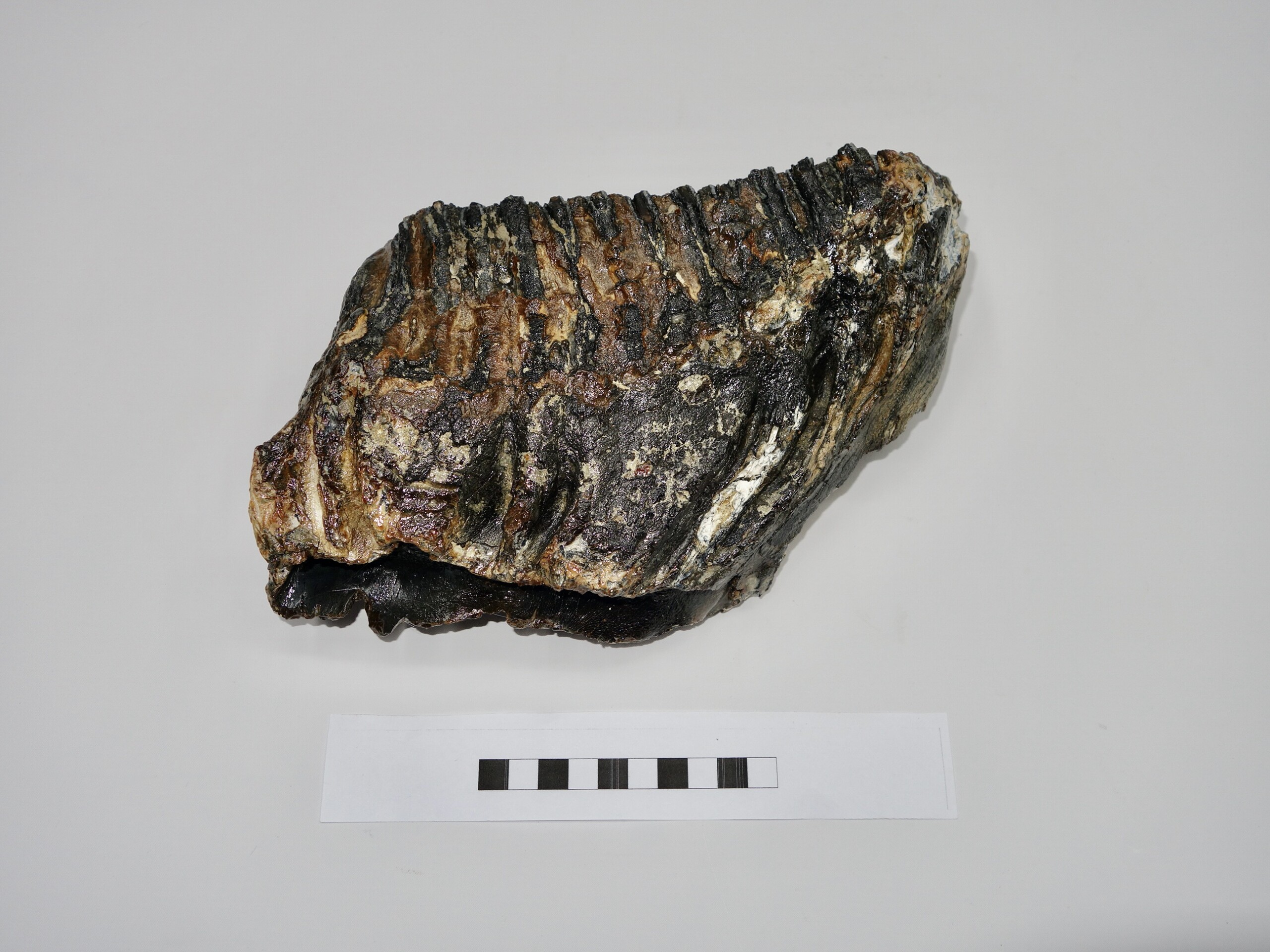 On offer is a fantastic M3 molar of an adult Woolly Mammoth from the Pleistocene era. This molar comes from the right lower jaw. Fantastic quality tooth with beautiful chewing surface. Wonderful state of preservation, as seen in the images, and no restoration whatsoever. Judging from the size, this molar belonged to an adult Mammoth. The black and white section of the ruler in the image represents 10 cm / 3.9 inch.