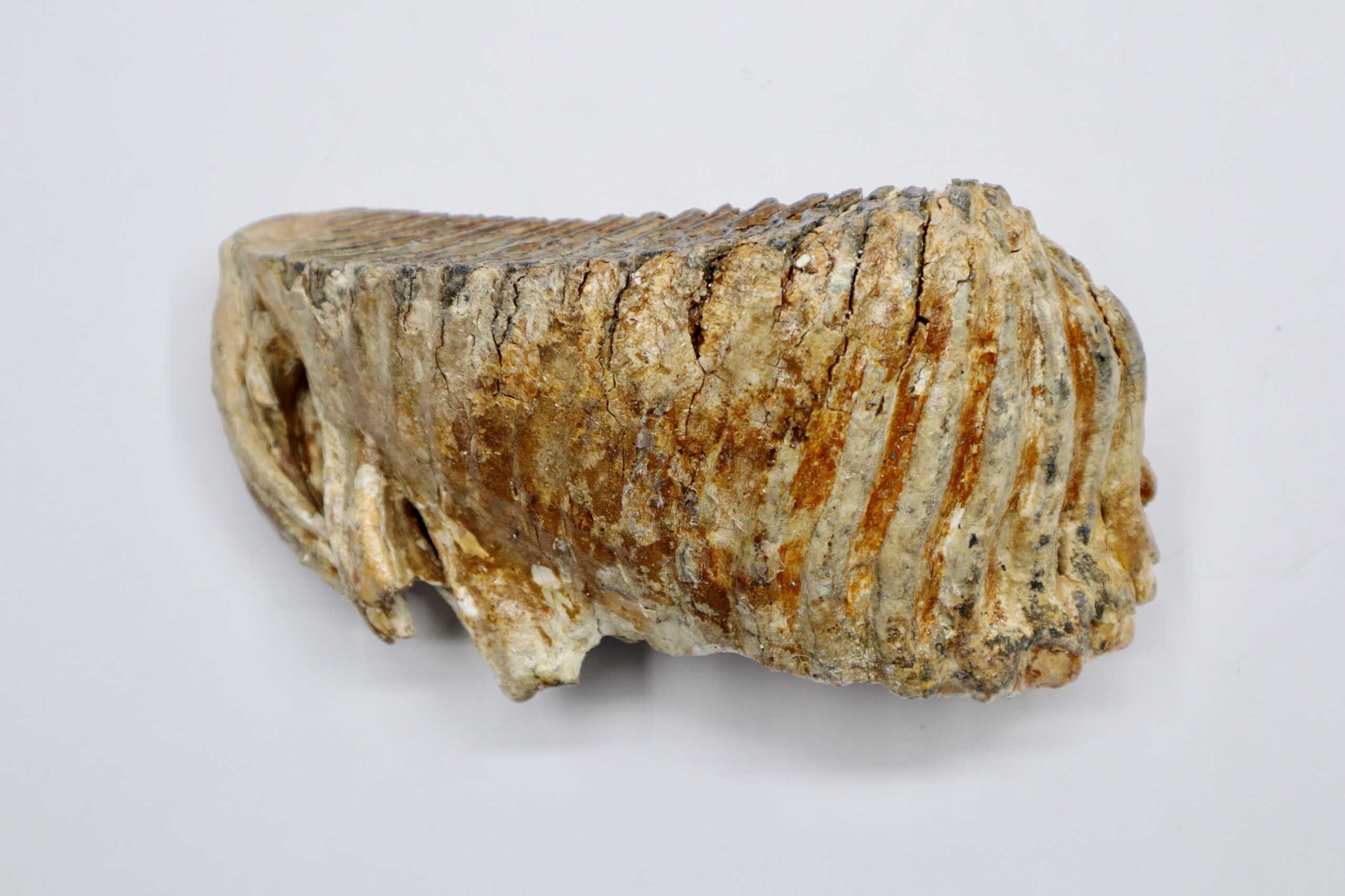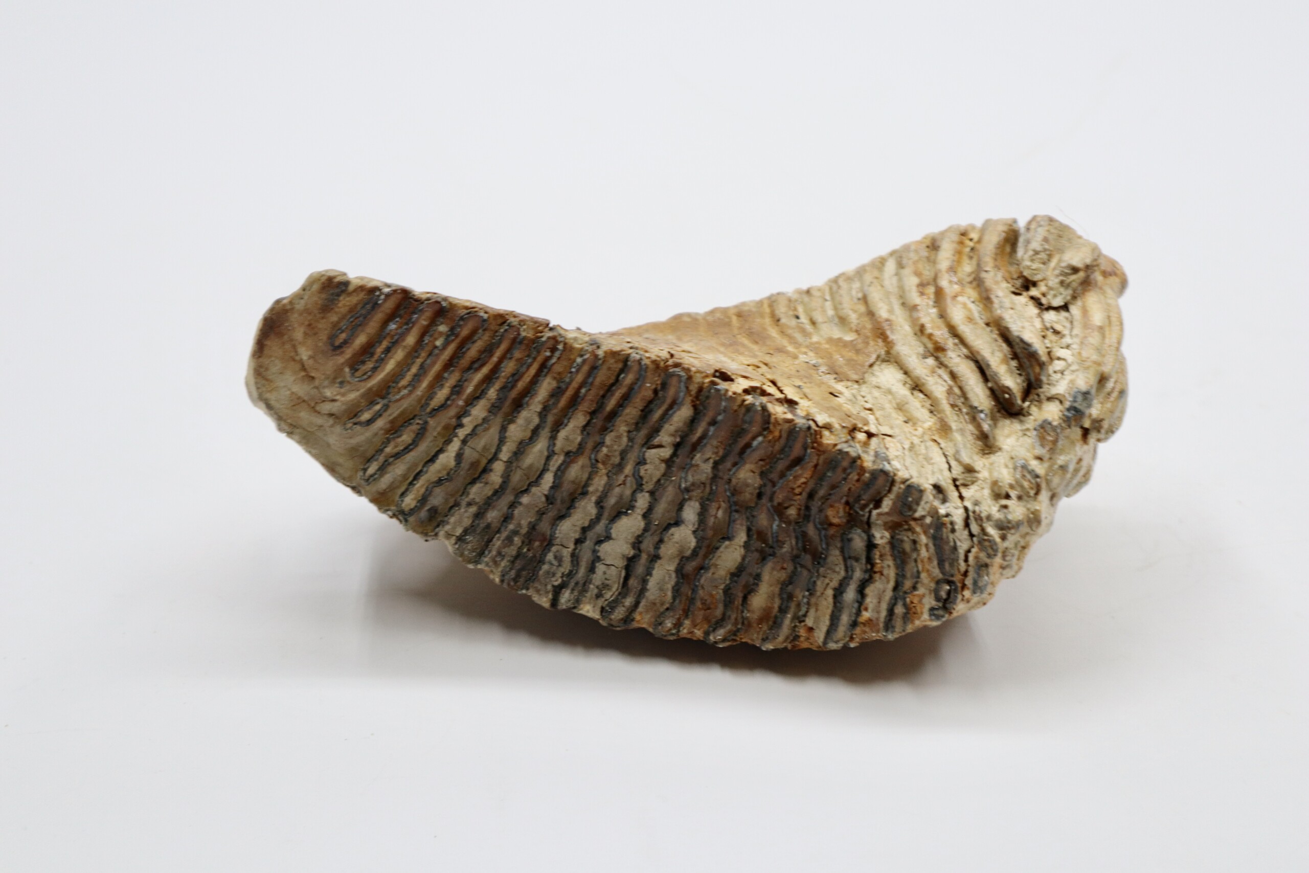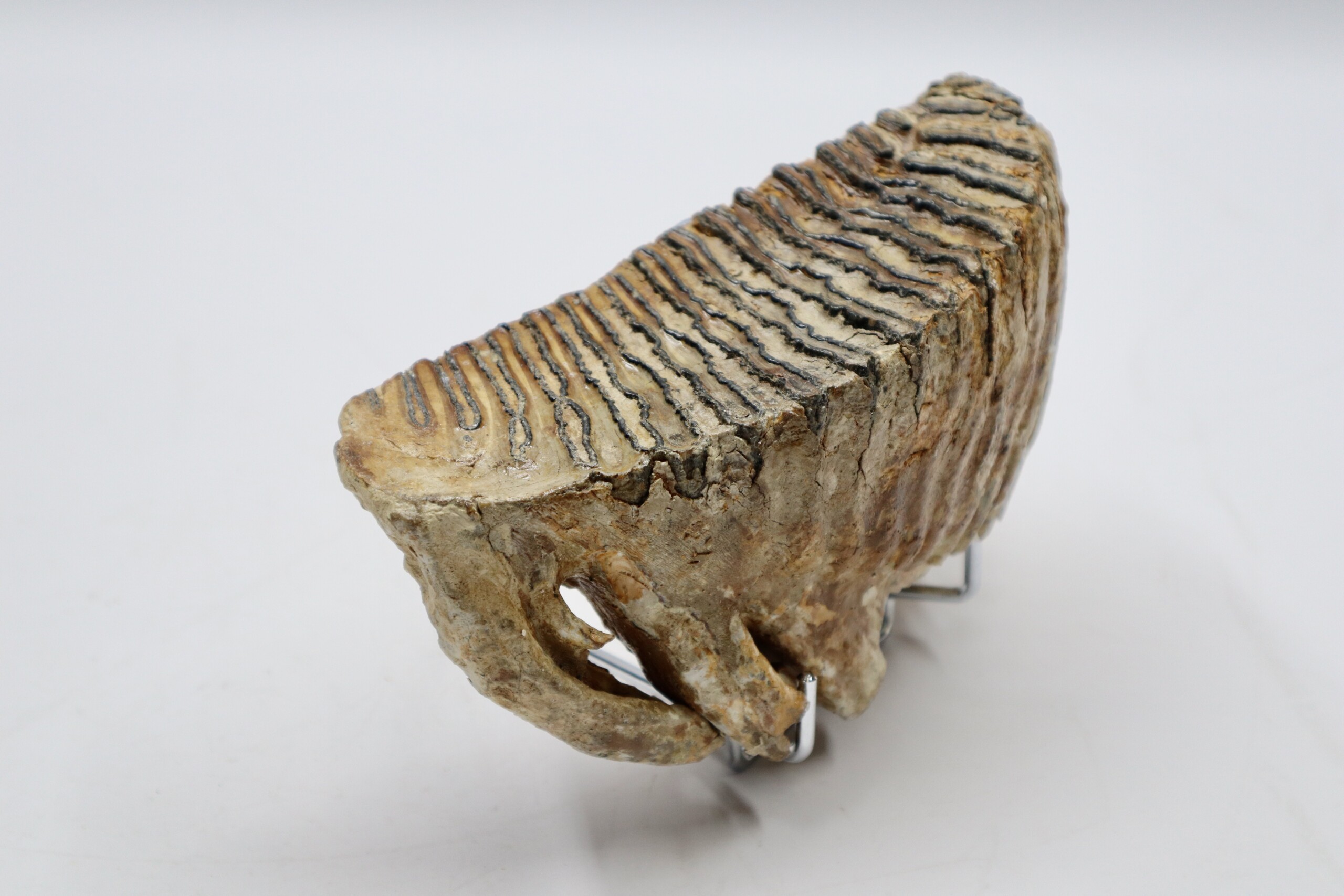 On offer is a fantastic M3 molar of an adult Woolly Mammoth from the Pleistocene era. This molar comes from the right lower jaw and is a beautiful example of an adult animal, in good state of preservation as seen in the images. The black and white section of the ruler in the image represents 10 cm / 3.9 inch. No restoration whatsoever.