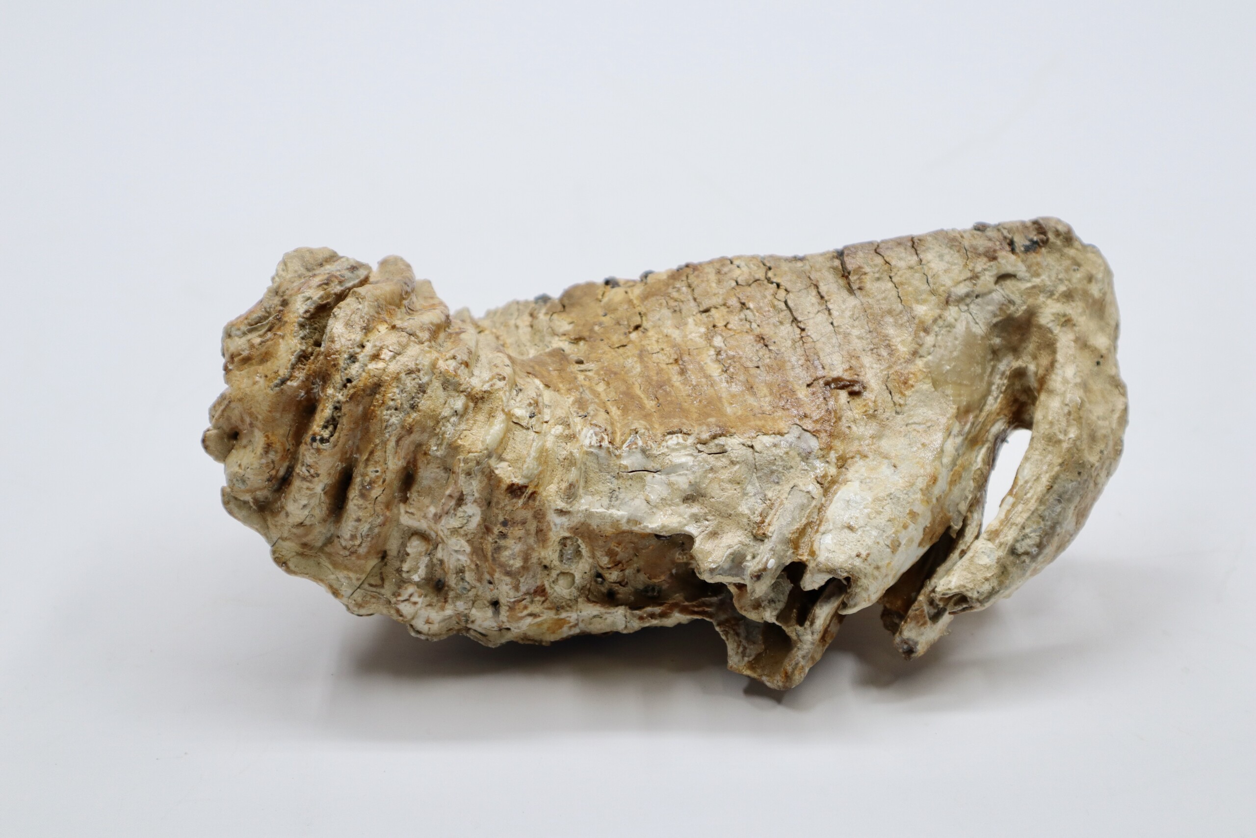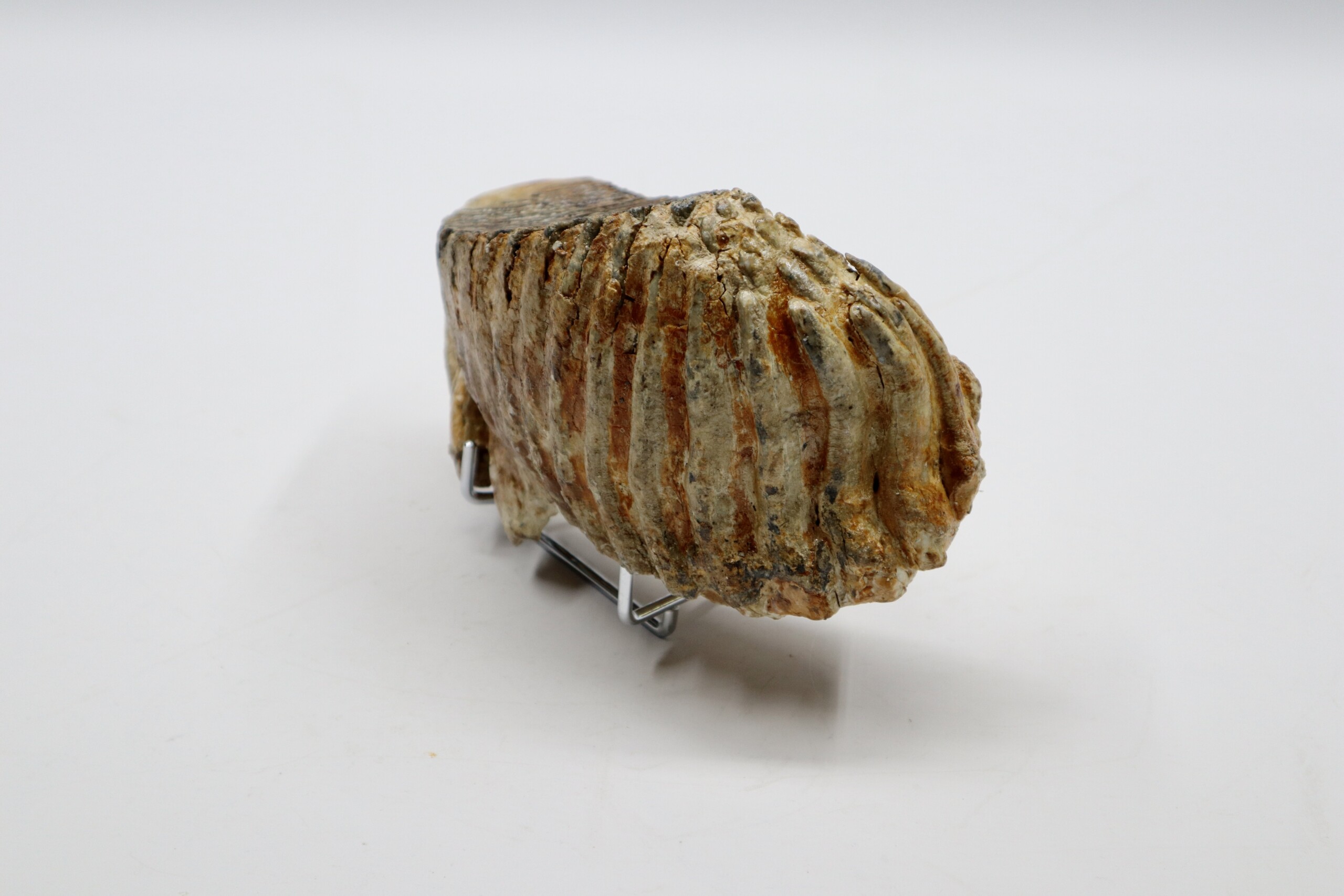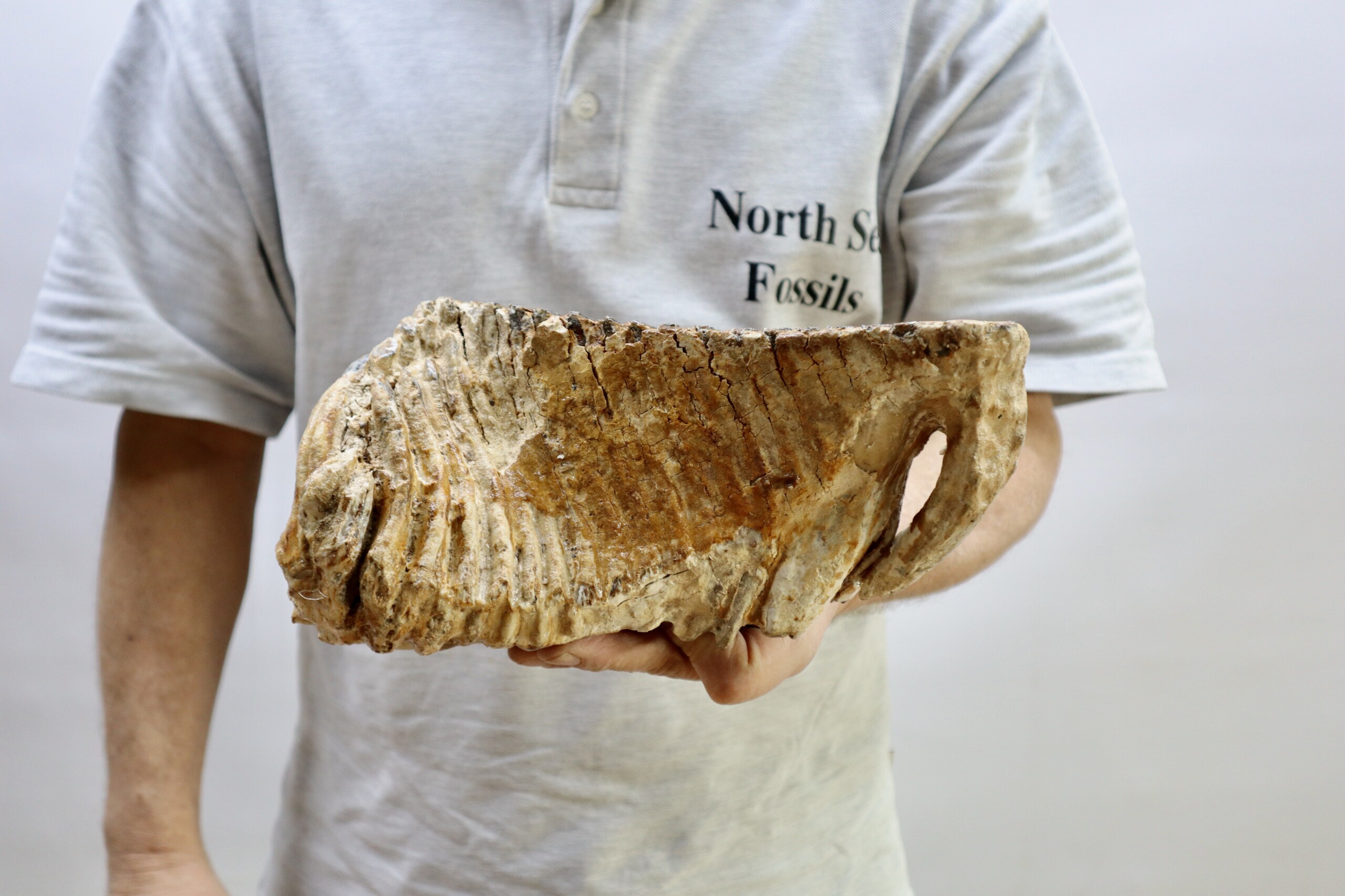 On offer is a fantastic M3 molar of an adult Woolly Mammoth from the Pleistocene era. This molar comes from the right lower jaw and is a beautiful example of an adult animal, in good state of preservation as seen in the images. The black and white section of the ruler in the image represents 10 cm / 3.9 inch. No restoration whatsoever.
