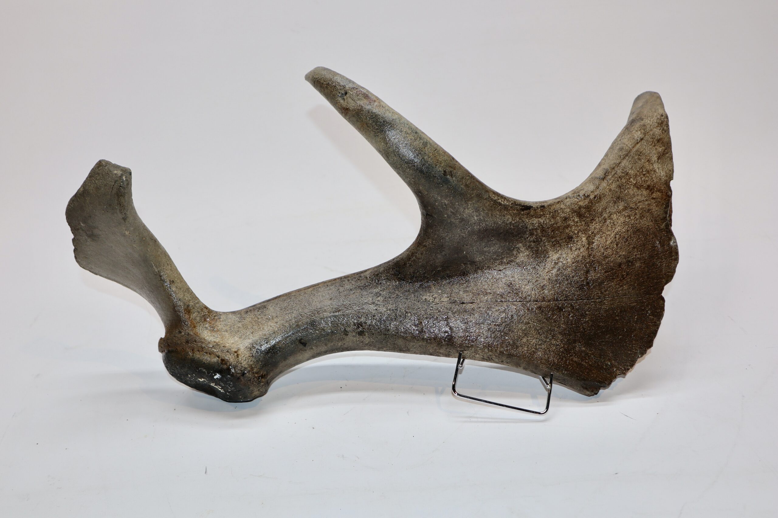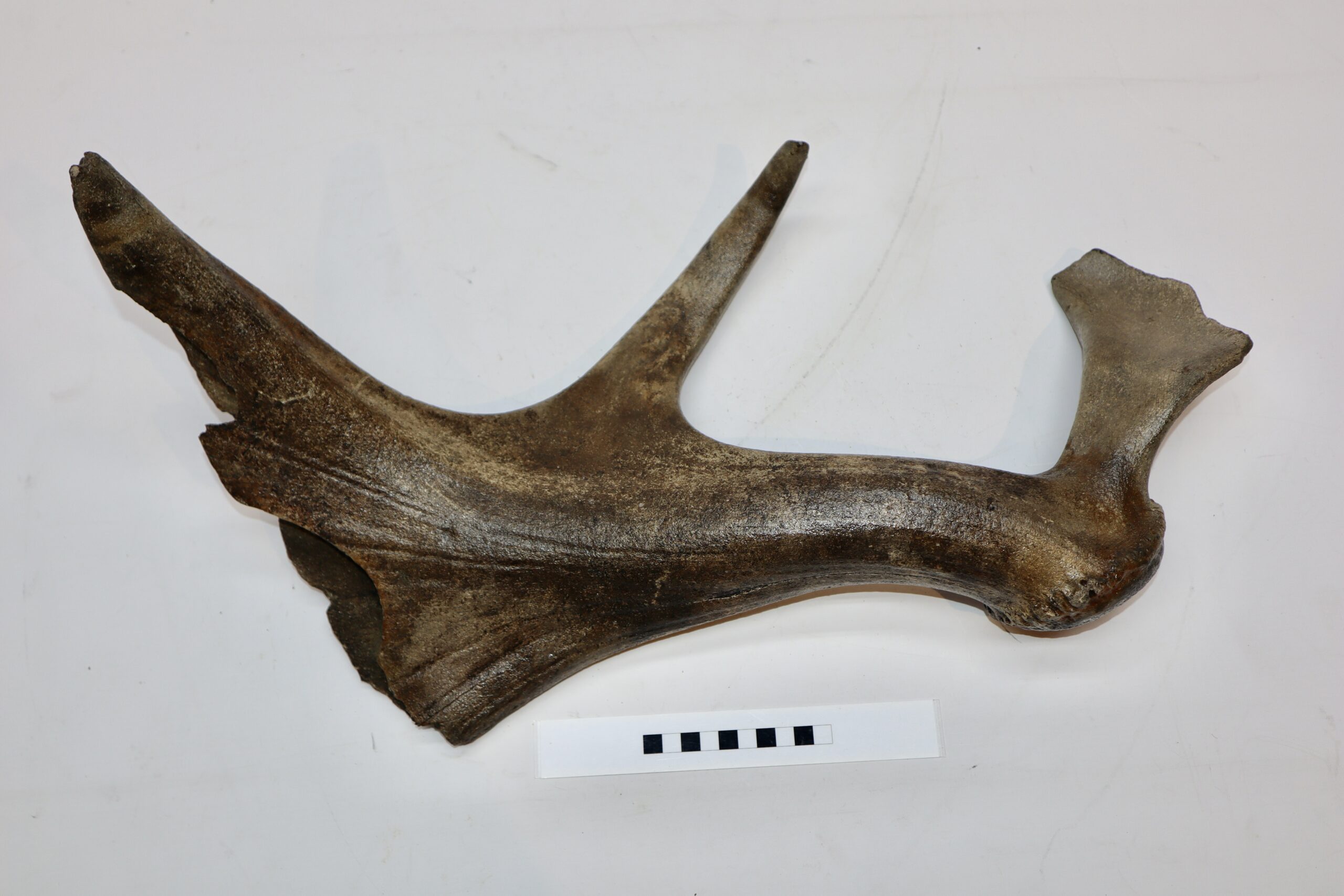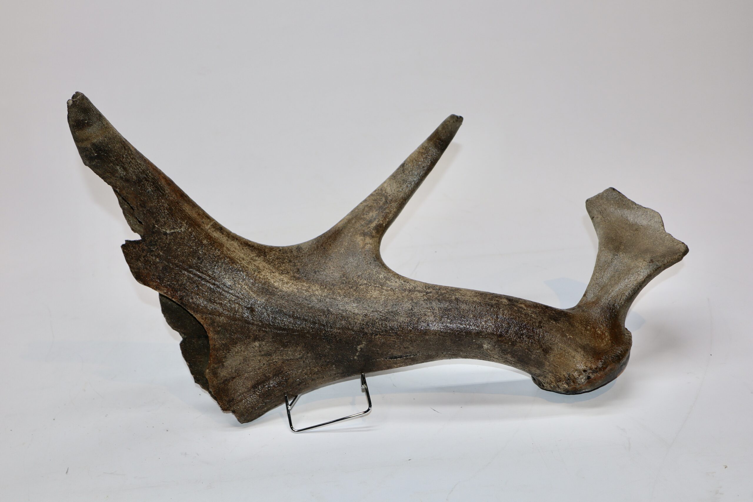Irish elk was one of the most impressive creatures of all Ice age fauna, its enormous antlers being very sought after. On offer is a good and large partial antler of this fantastic animal, in good condition, as seen in the images. No restoration whatsoever. Complete antlers of the Irish Elk make tens of thousands of dollars in sales at the major auction houses, and this is a wonderful opportunity to acquire a relic of this animal at a fraction of the cost. The black and white section of the ruler in the image represents 10 cm / 3.9 inch.