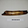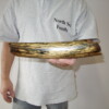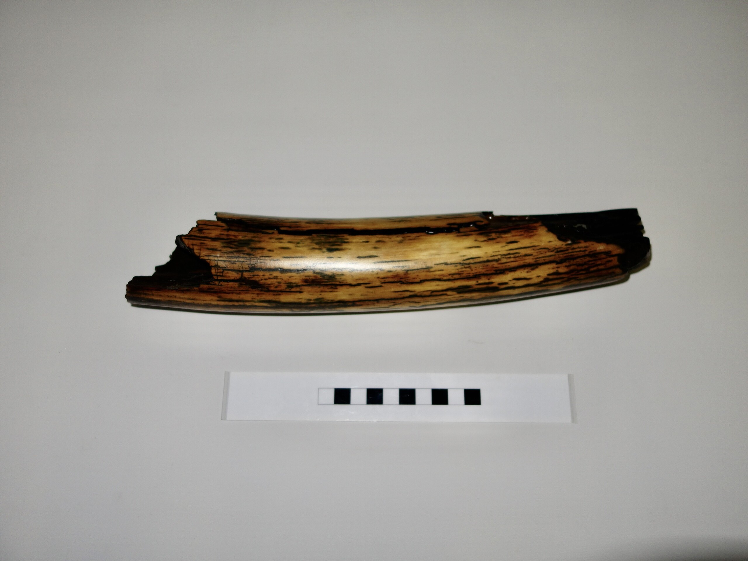 On offer is a fantastic piece of tusk of a Woolly Mammoth from the Pleistocene era. This is the middle part of the tusk, the tip and the base are missing, but otherwise it is in wonderful state of preservation, as seen in the images. No restoration whatsoever. This tusk piece is of beautiful colouring of mainly white, gold, brown and black ivory and with beautiful patterning. The black and white section of the ruler in the image represents 10 cm / 3.9 inch. Judging from the circumference, this would have belonged to a female Mammoth. This piece has been applied with a matt finish, but it is also possible to order it with a glossy finish.