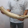 On offer is a fantastic piece of tusk of a Woolly Mammoth from the Pleistocene era. This is the middle part of the tusk, the base and tip are missing, but otherwise it is in excellent state of preservation, as seen in the images. No restoration whatsoever. This tusk piece is of beautiful colouring of white, gold, brown and grey ivory and beautiful patterning and contrasts of colour. The black and white section of the ruler in the image represents 10 cm / 3.9 inch. This piece has been applied with a matt finish, but it is also possible to order it with a glossy finish.