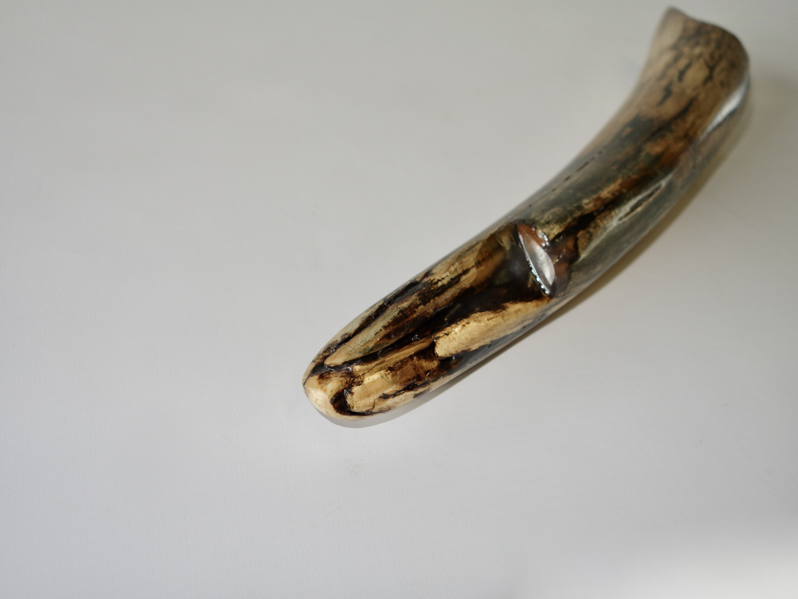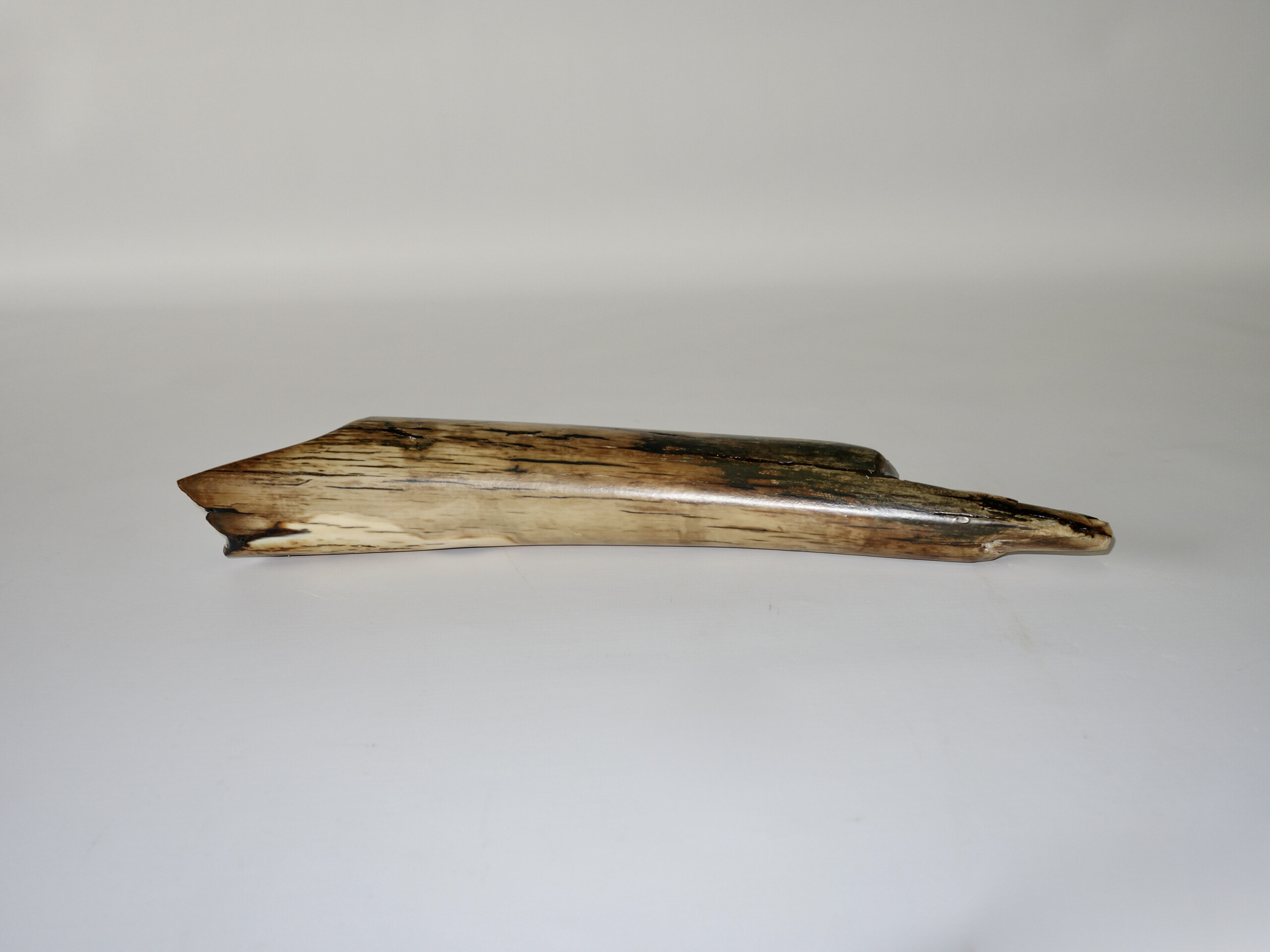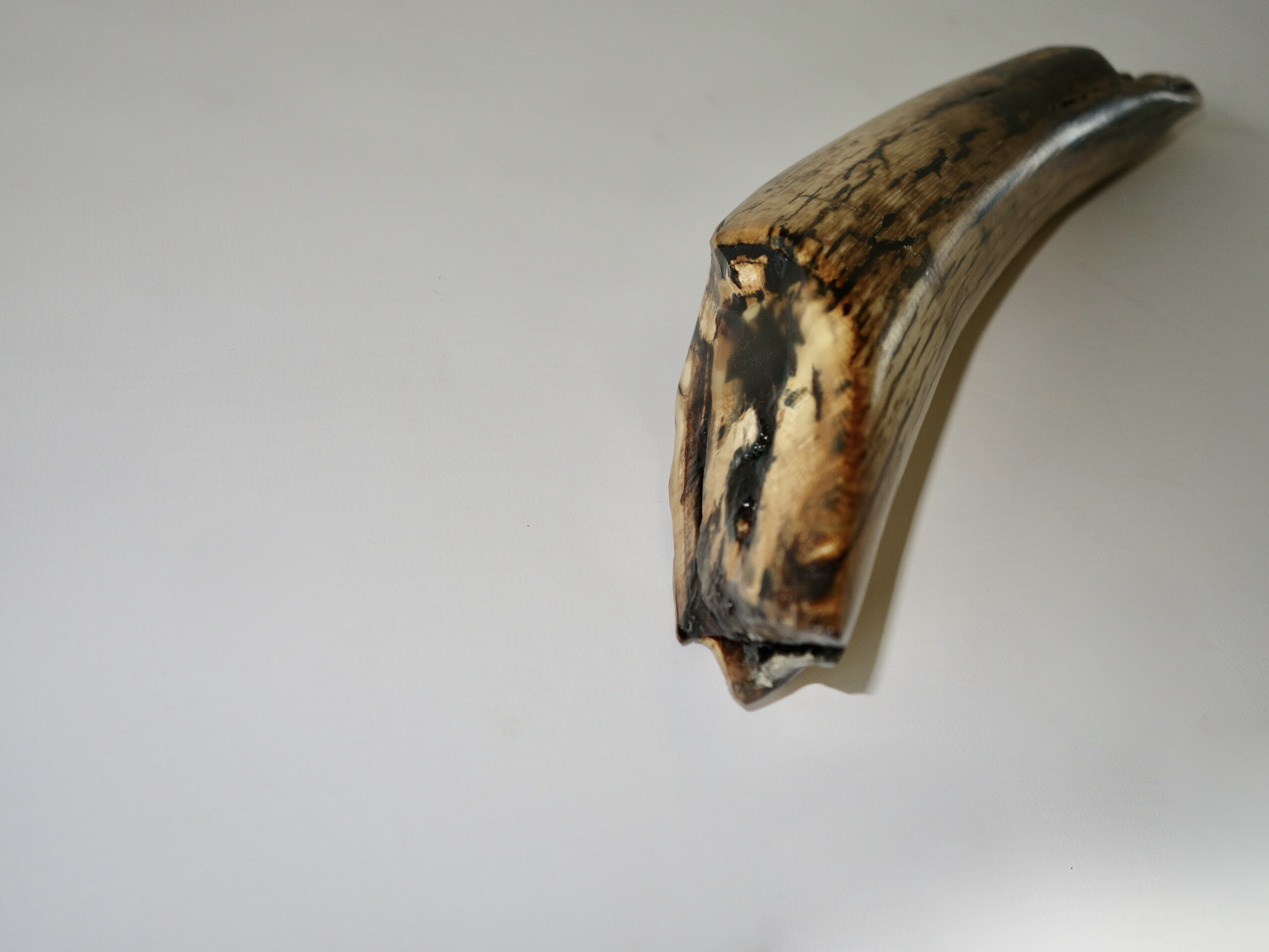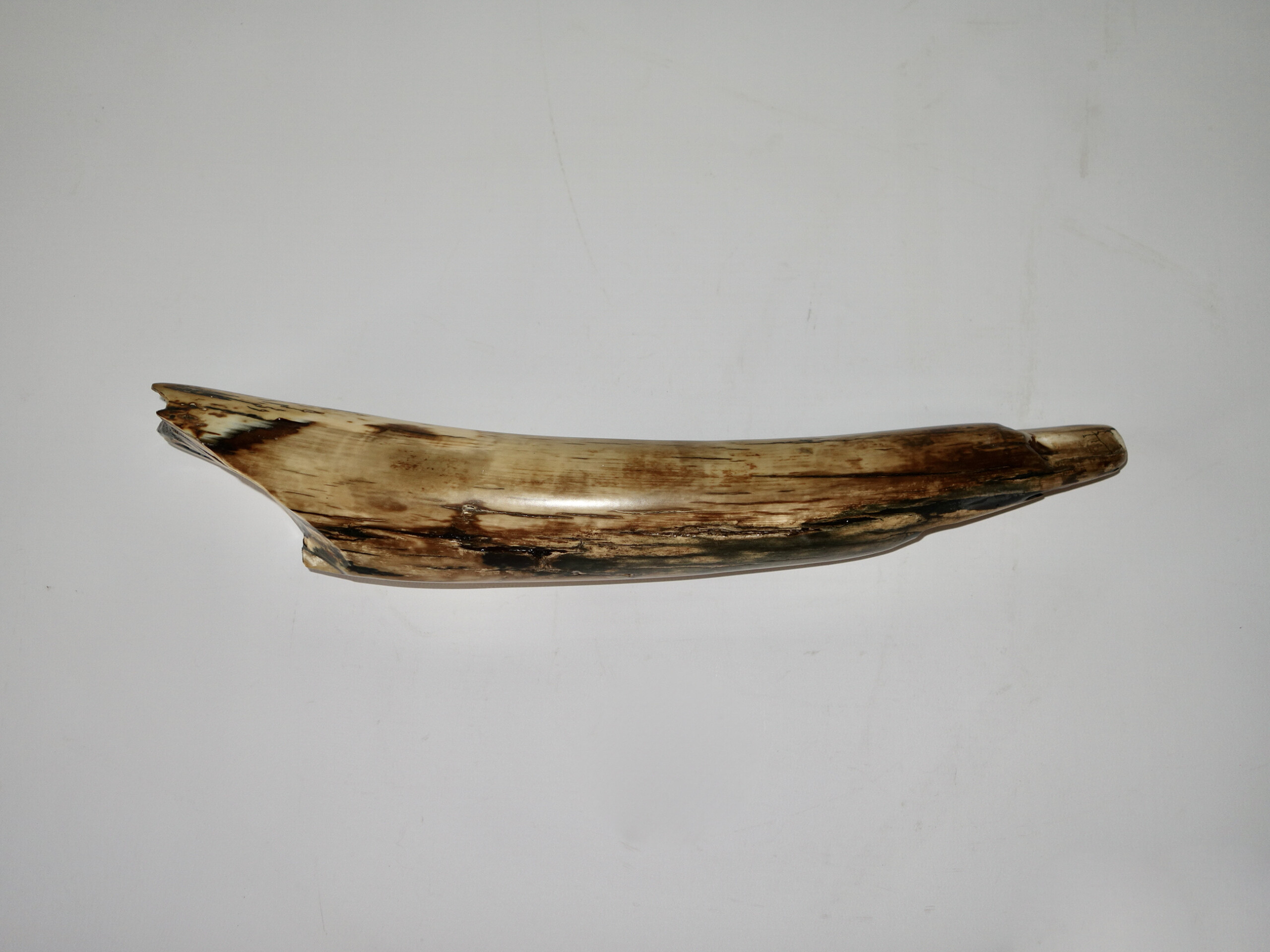 On offer is a gorgeous and large piece of tusk of a Woolly Mammoth from the Pleistocene era. This is the middle part of the tusk, the base and tip are missing, but otherwise it is in excellent state of preservation, as seen in the images. No restoration whatsoever. This tusk piece is of beautiful colouring of mainly white, gold, brown, grey and black ivory, and with absolutely stunning patterning. The black and white section of the ruler in the image represents 10 cm / 3.9 inch. Judging from the circumference, this would have belonged to a female Mammoth. This piece has been applied with a matt finish, but it is also possible to order it with a glossy finish.
