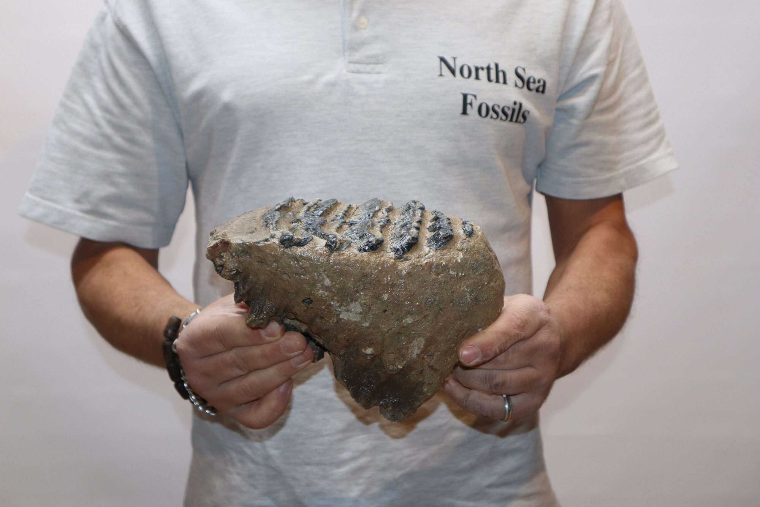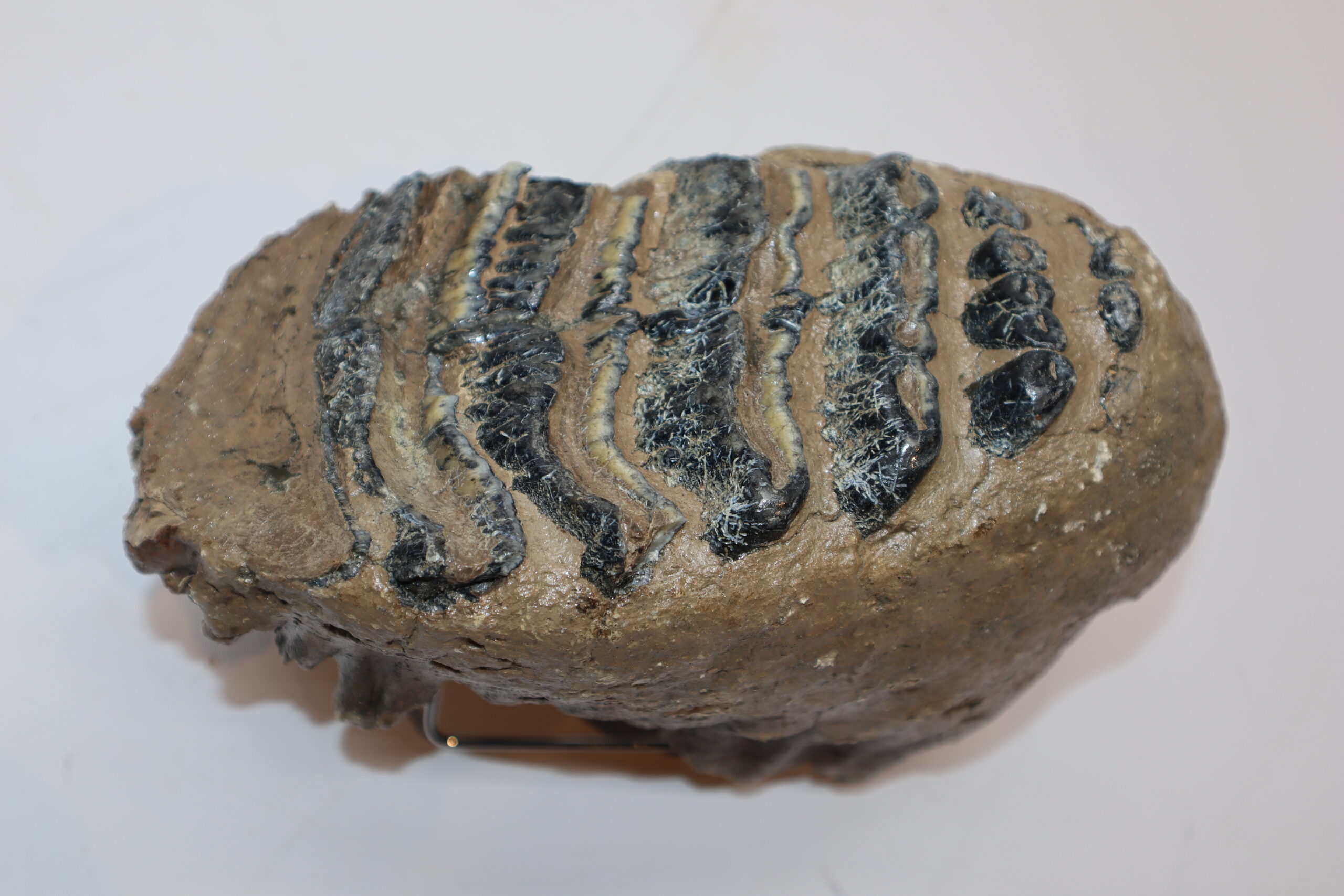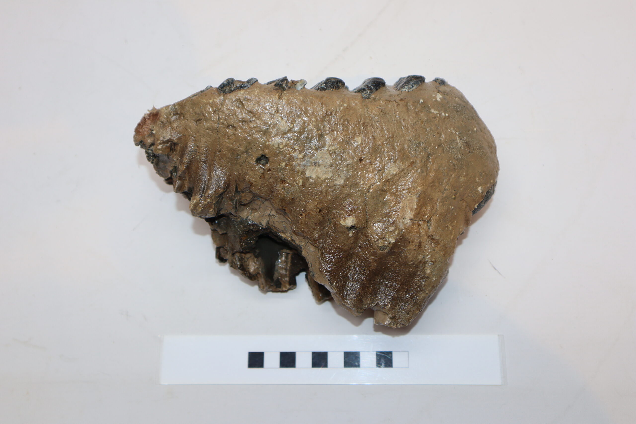 On offer is a fantastic M2 molar that comes from the right upper jaw of a Southern Mammoth, or Mammuthus meridionalis. With a shoulder height of approx 4 metres (13 feet), this is one of the largest species of Mammoth to have ever lived. It is also much older and very much rarer than the more commonly encountered Woolly Mammoth. This is a fantastic example of a nearly adult animal, in wonderful state of preservation as seen in the images. No restoration whatsoever. The black and white section of the ruler in the image represents 10 cm / 3.9 inch. No restoration whatsoever. Highly recommended.