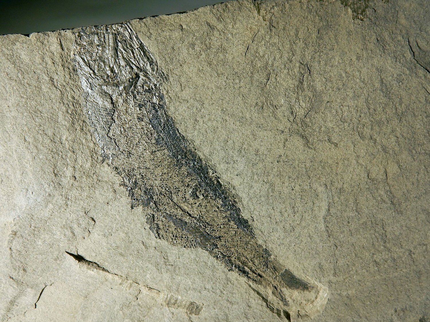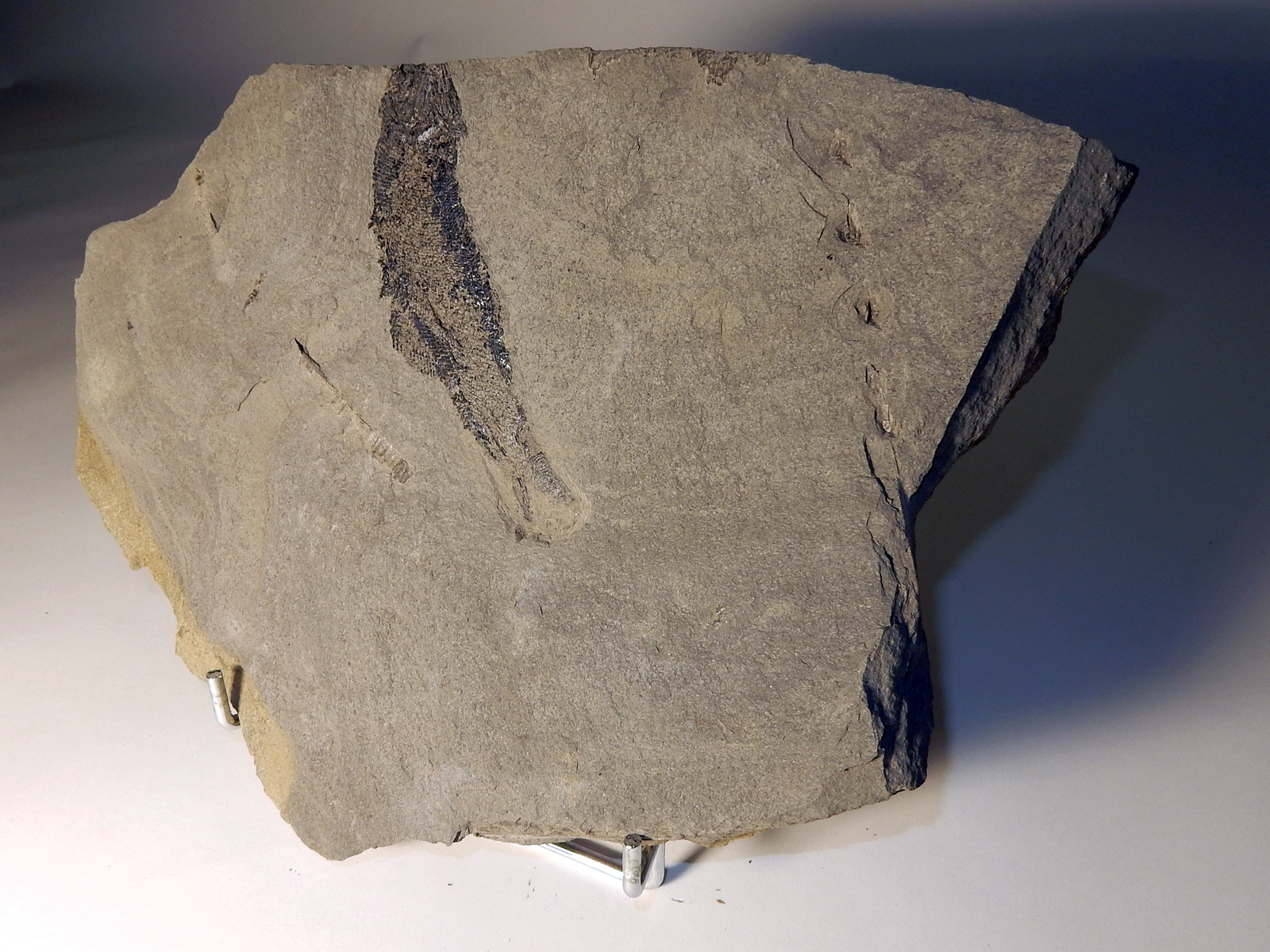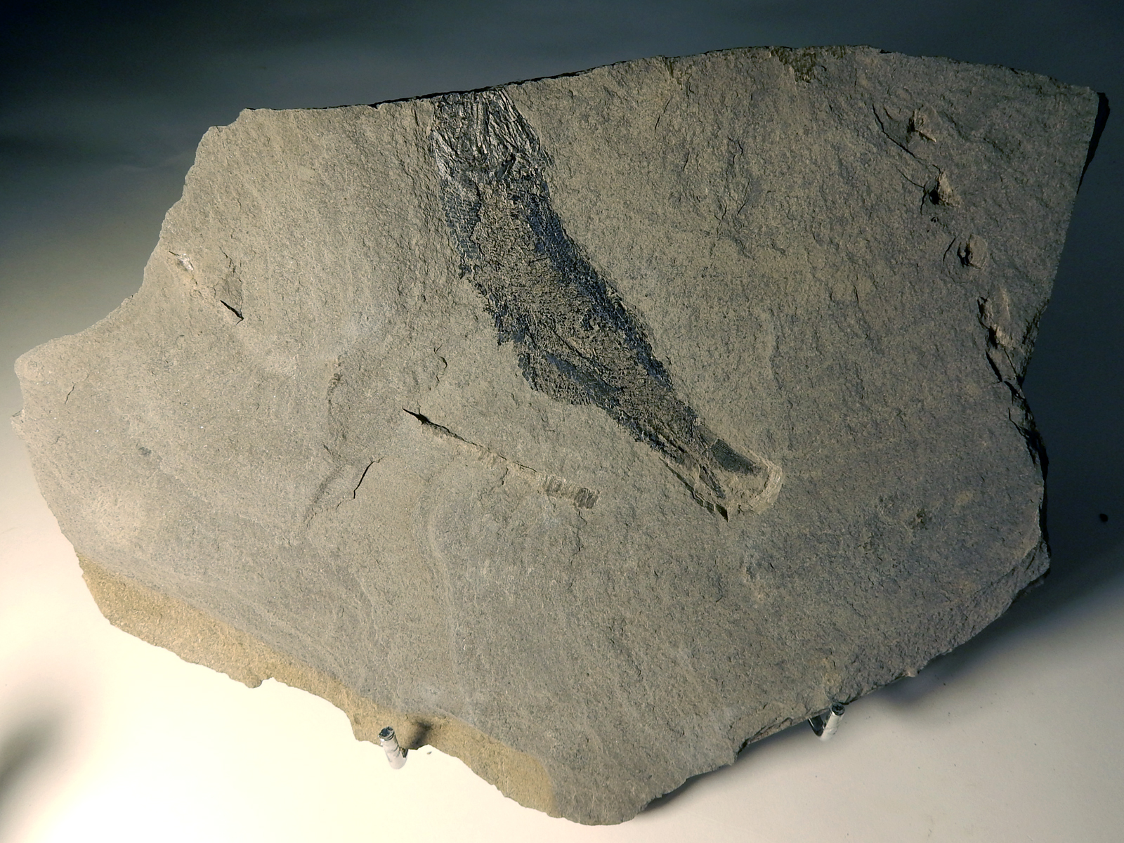 On offer is a well-preserved almost complete example of a Palaeoniscum freieslebeni, a fossilized extint species of ray-finned fish. Nicely preserved and many details can be seen, including the fins and skull. Nicely centred on a limestone slab. This comes with a stainless steel display stand.