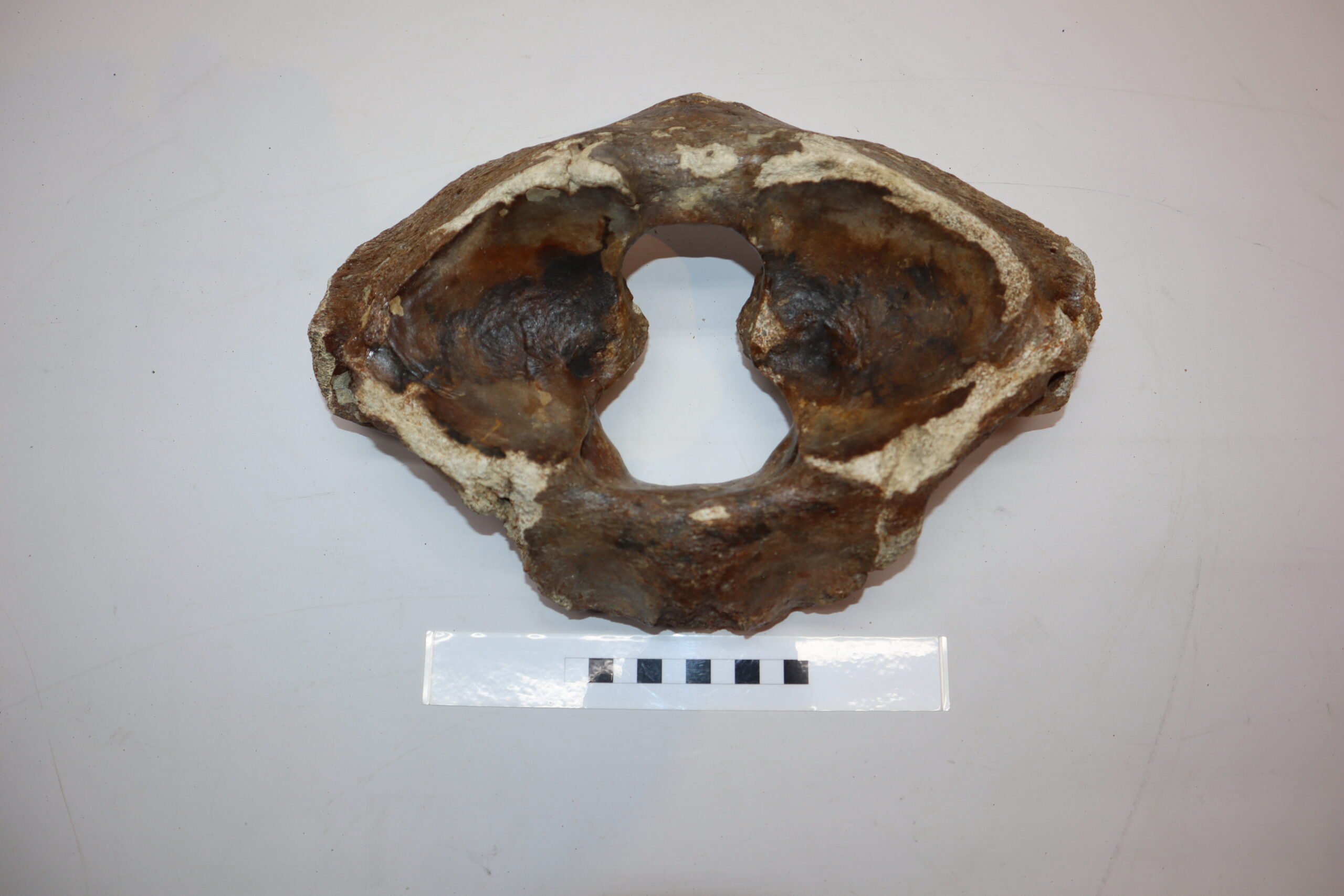 On offer is a wonderful atlas of a Woolly Mammoth from the Pleistoecene era. This piece is in good condition, as seen in the images. No restoration whatsoever. Together with the axis this large and impressive fossil made it possible for the animal to turn its head, whilst still protecting the nerves. The black-and-white section in the ruler in one of the images represents 10 cm / 3.9 inch.