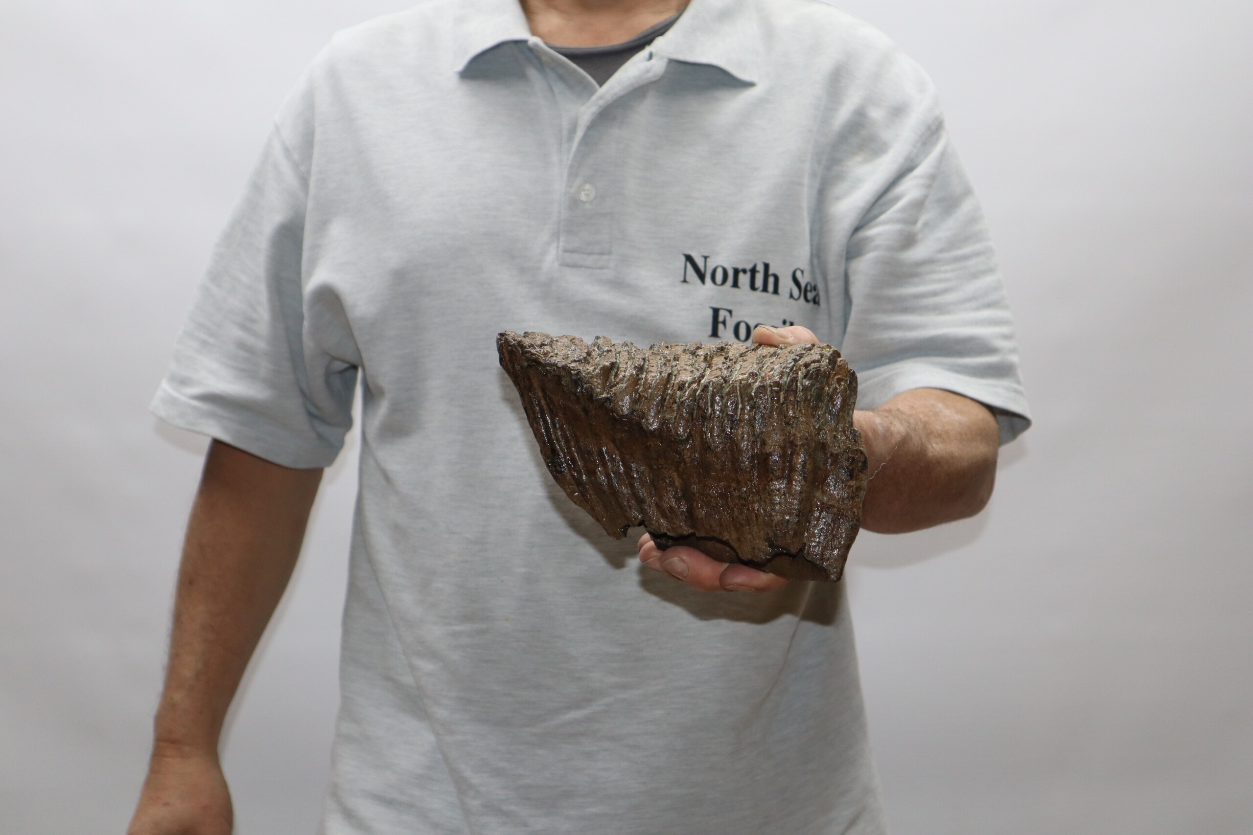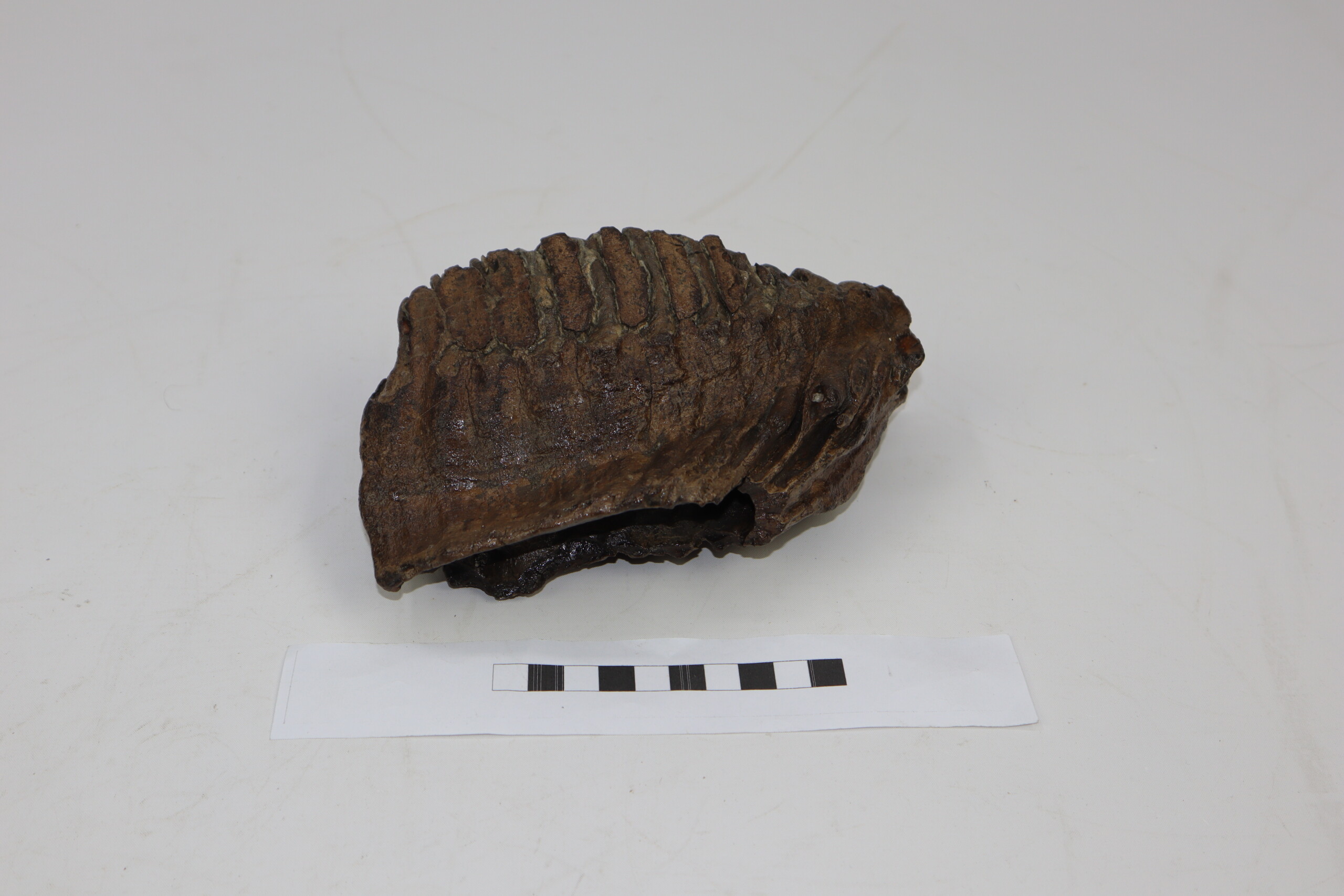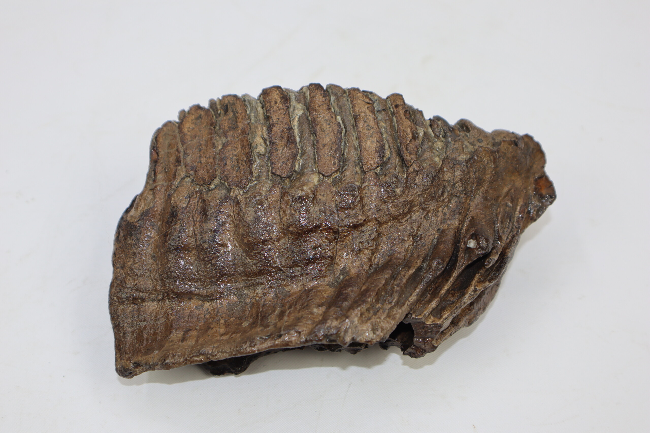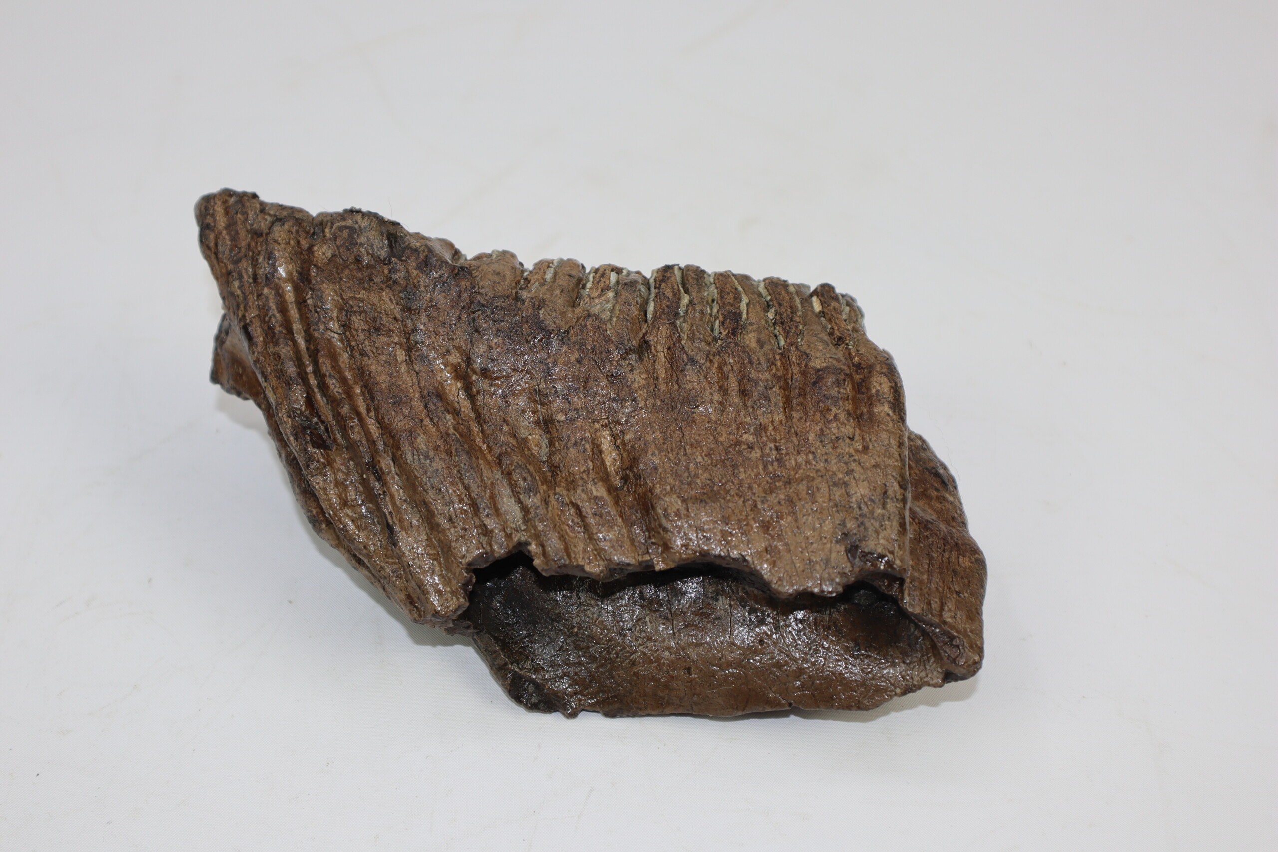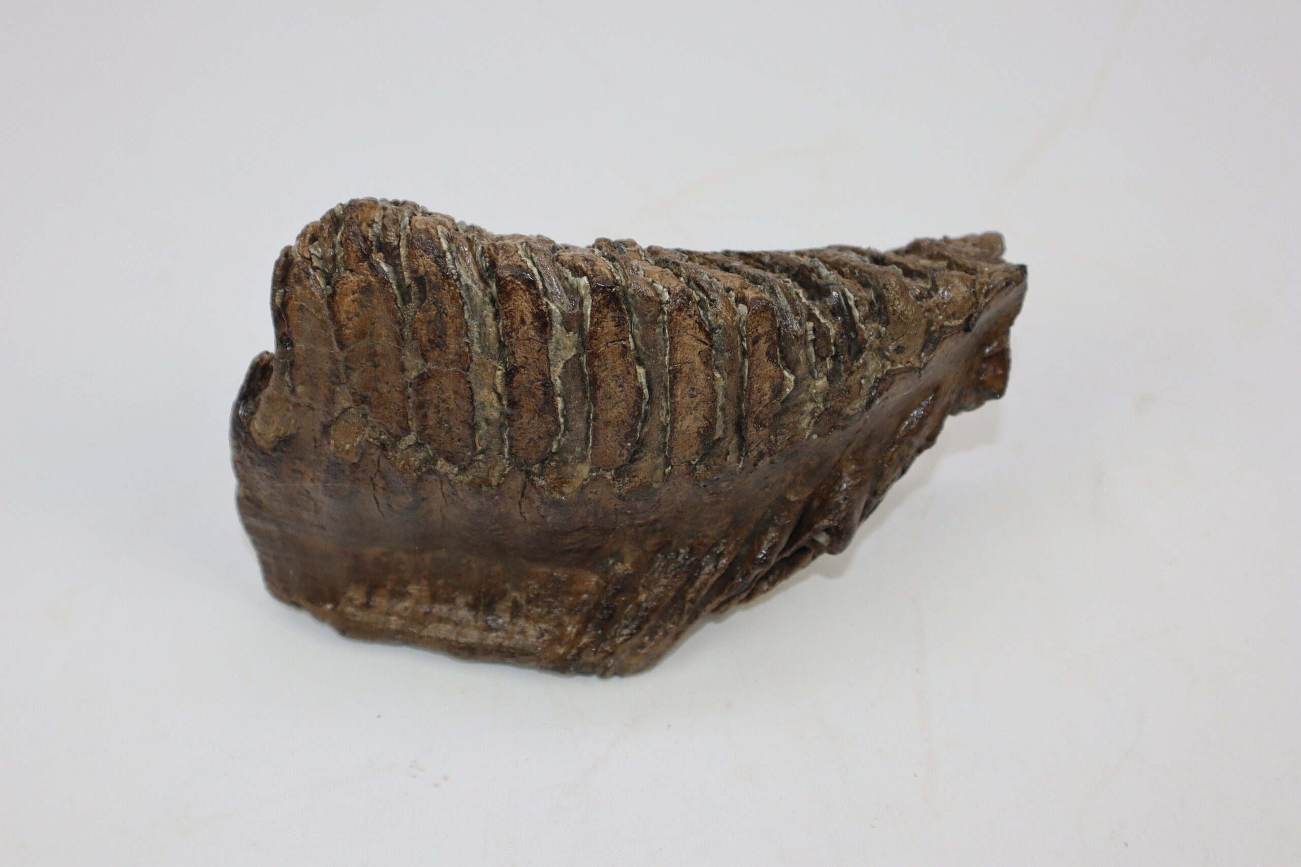 On offer is a beautiful M3 molar of an adult Woolly Mammoth from the Pleistocene era. This molar comes from the left lower jaw and is a goodย example of an adult animal, in nice state of preservation as seen in the images. The black and white section of the ruler in the image represents 10 cm / 3.9 inch. No restoration whatsoever.