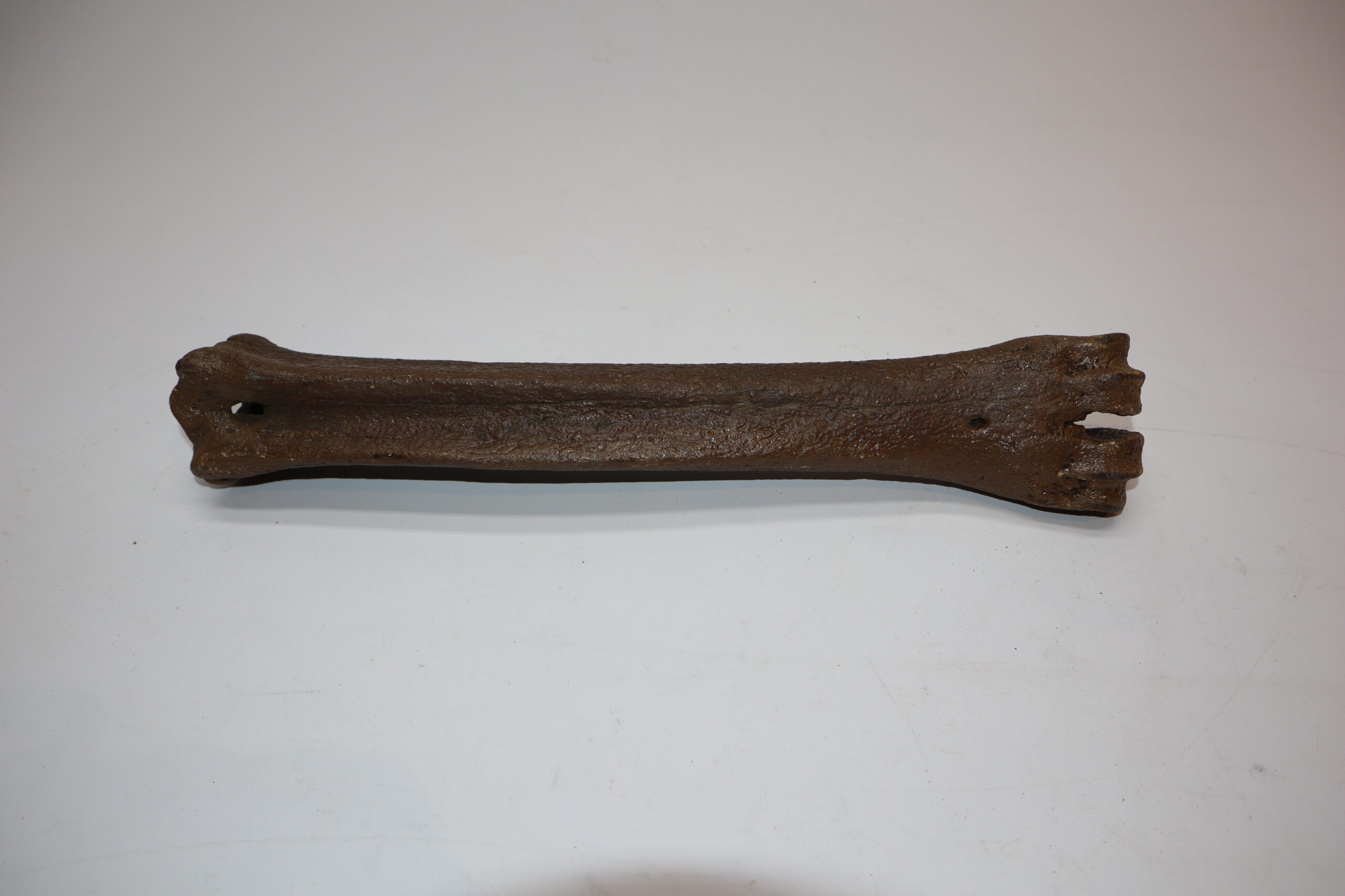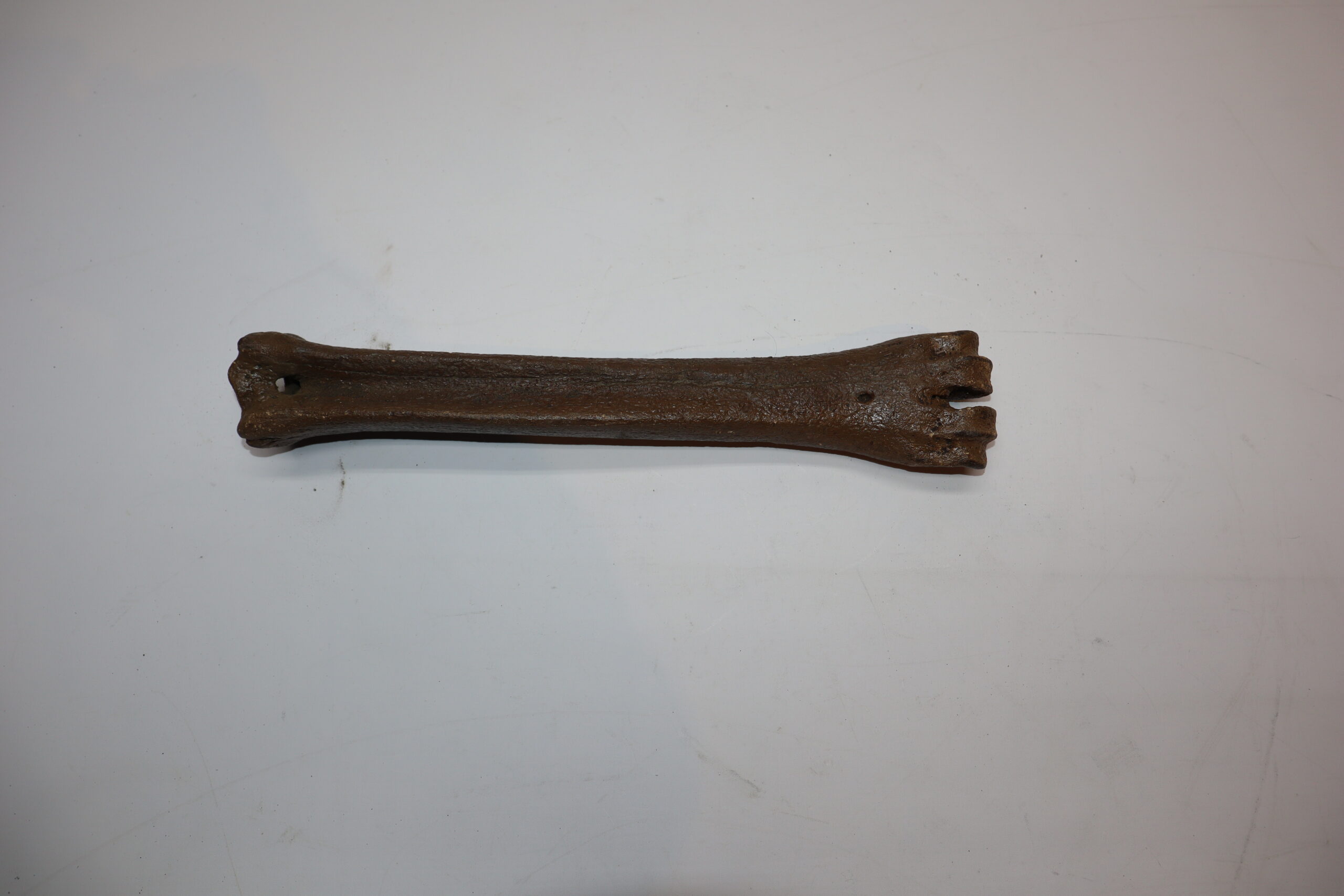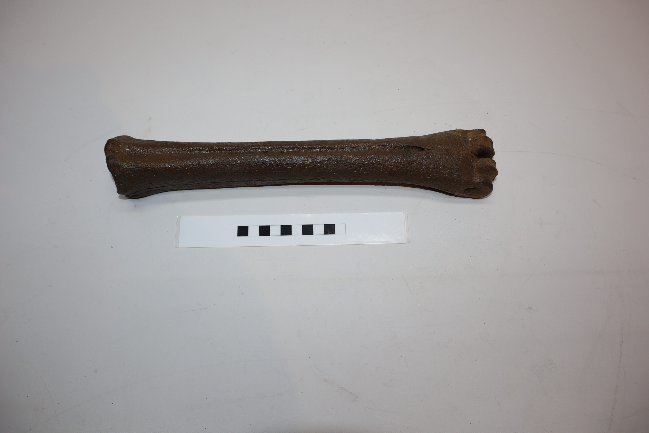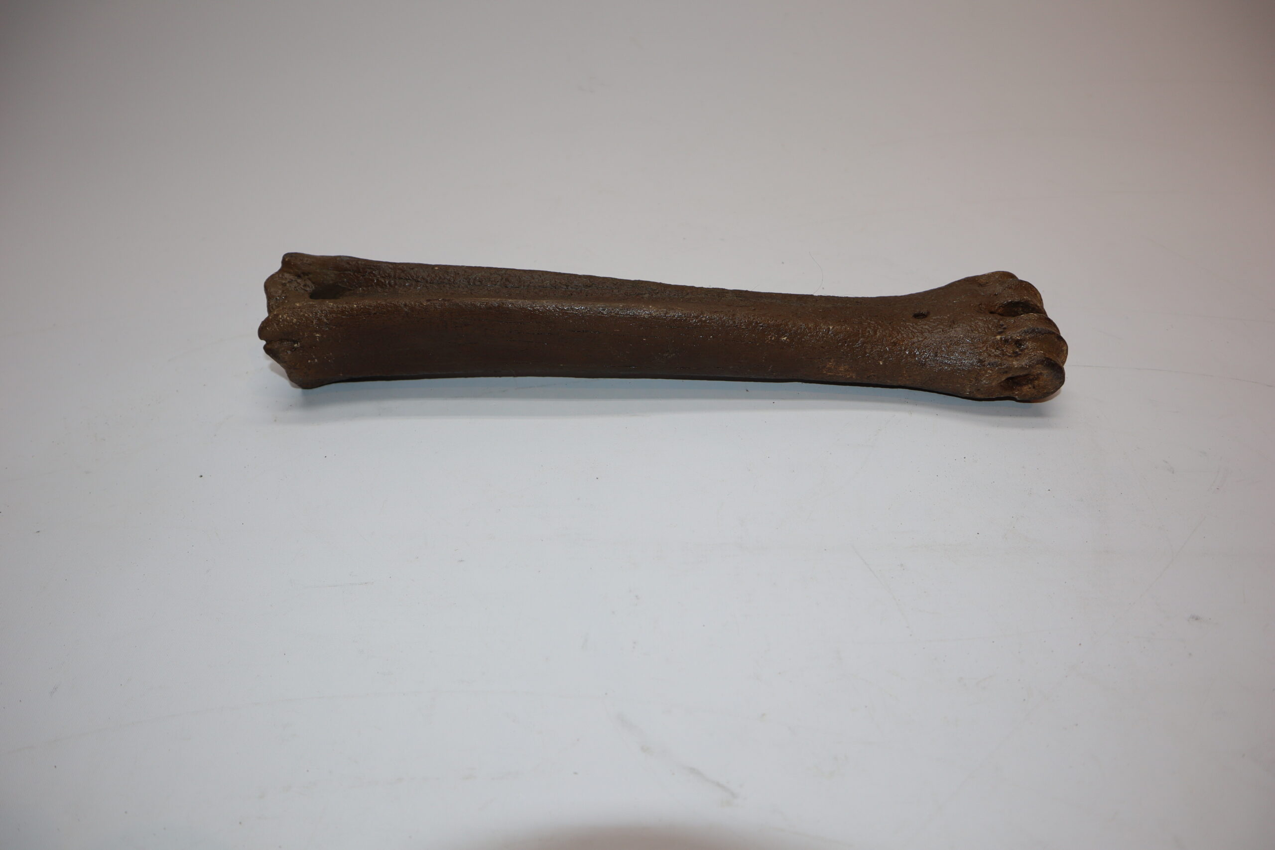 Irish elk was one of the most impressive creatures of all Ice age fauna, its enormous antlers being very sought after. On offer is a good and largeย metatarsus (foot bone) of this fantastic animal, in good condition, as seen in the images. No restoration whatsoever. The black and white section of the ruler in the image represents 10 cm / 3.9 inch.