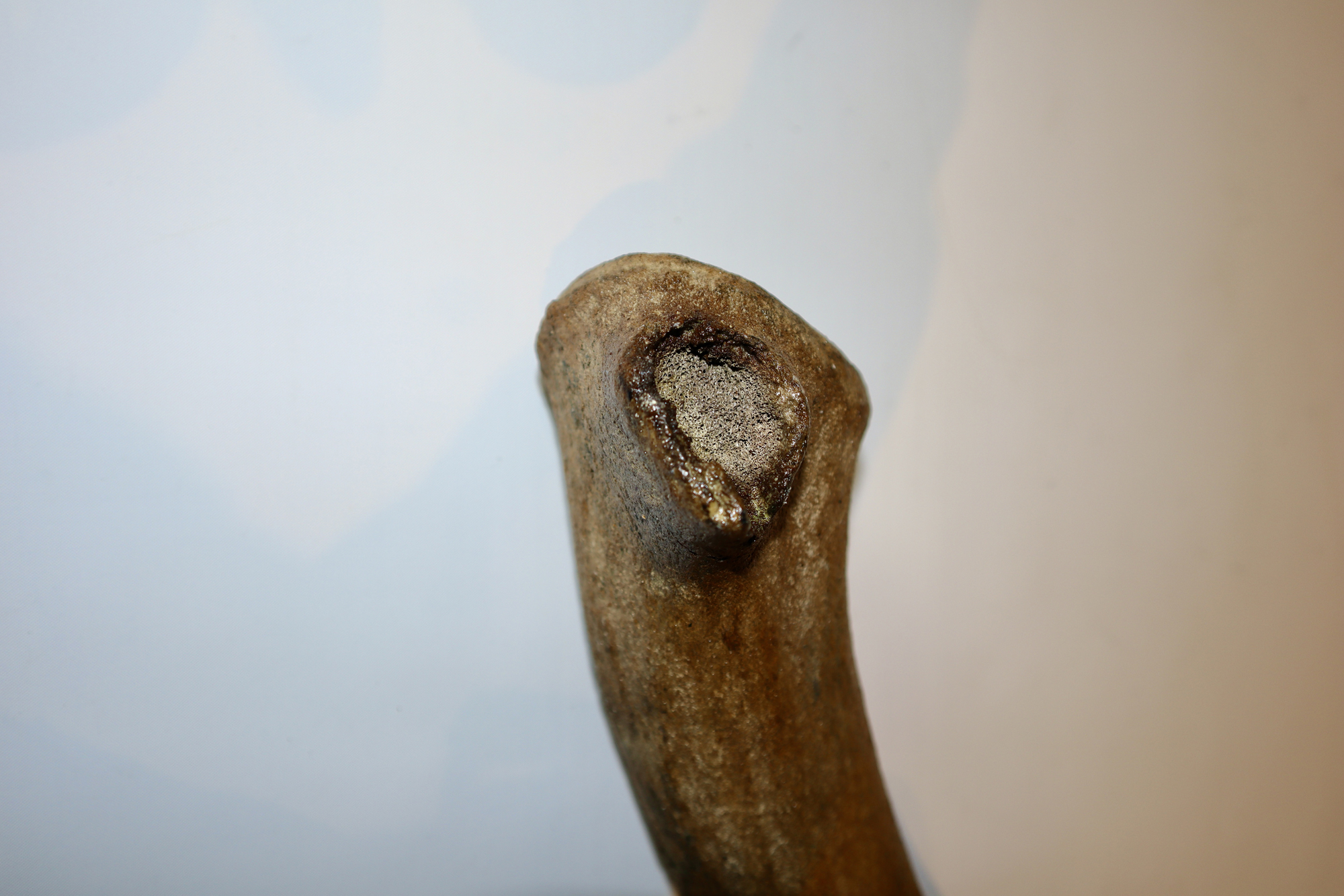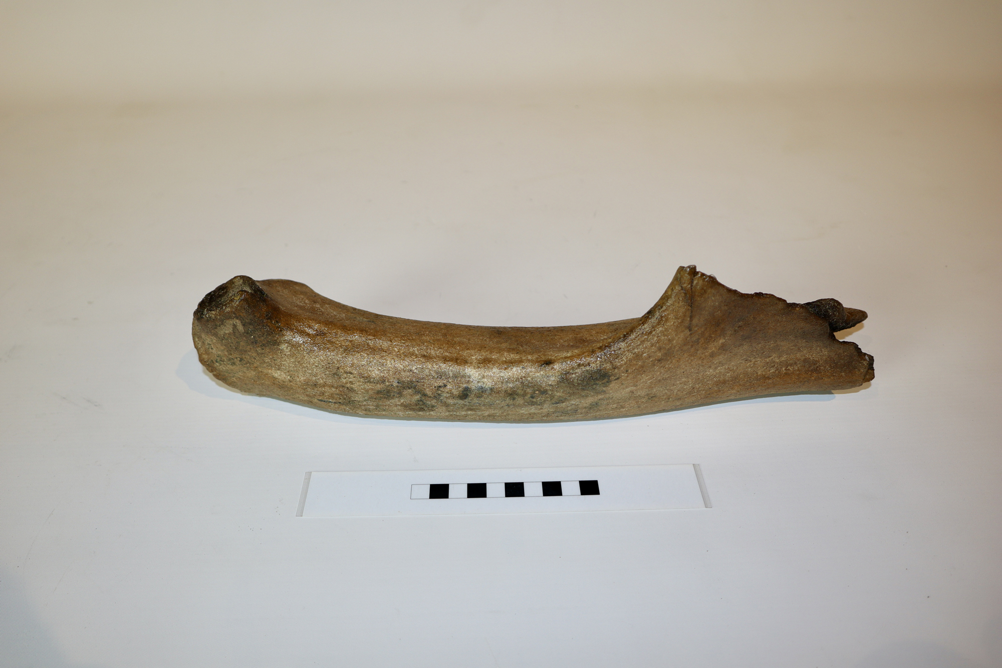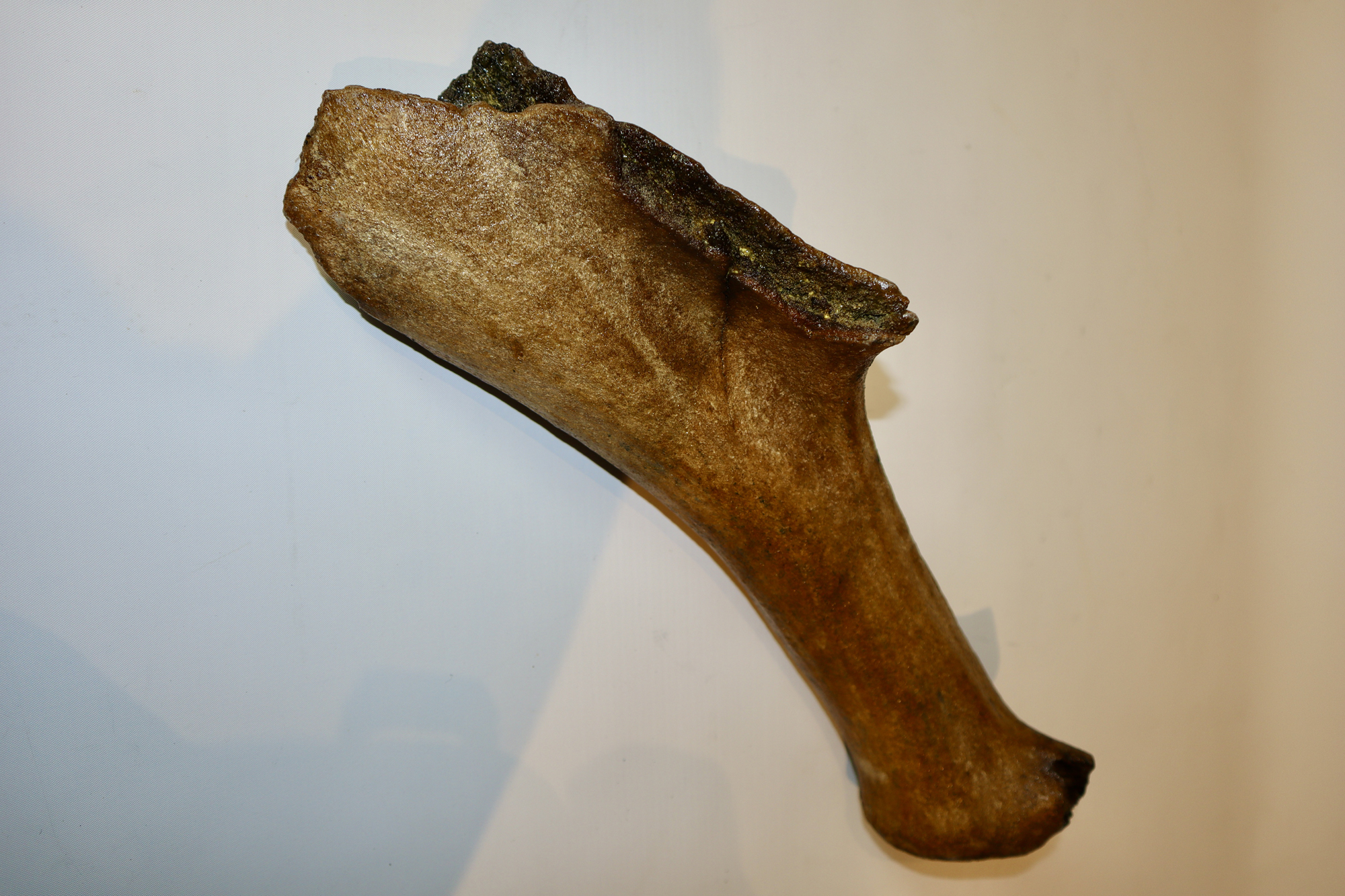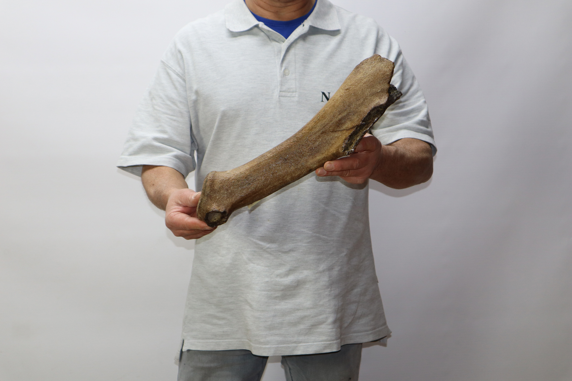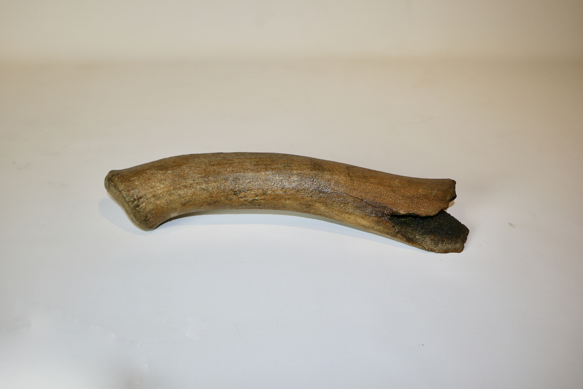 Irish elk was one of the most impressive creatures of all Ice age fauna, its enormous antlers being very sought after. On offer is a good and large partial antler of this fantastic animal, in good condition, as seen in the images. No restoration whatsoever. Complete antlers of the Irish Elk make tens of thousands of dollars in sales at the major auction houses, and this is a wonderful opportunity to acquire a relic of this animal at a fraction of the cost. The black and white section of the ruler in the image represents 10 cm / 3.9 inch.