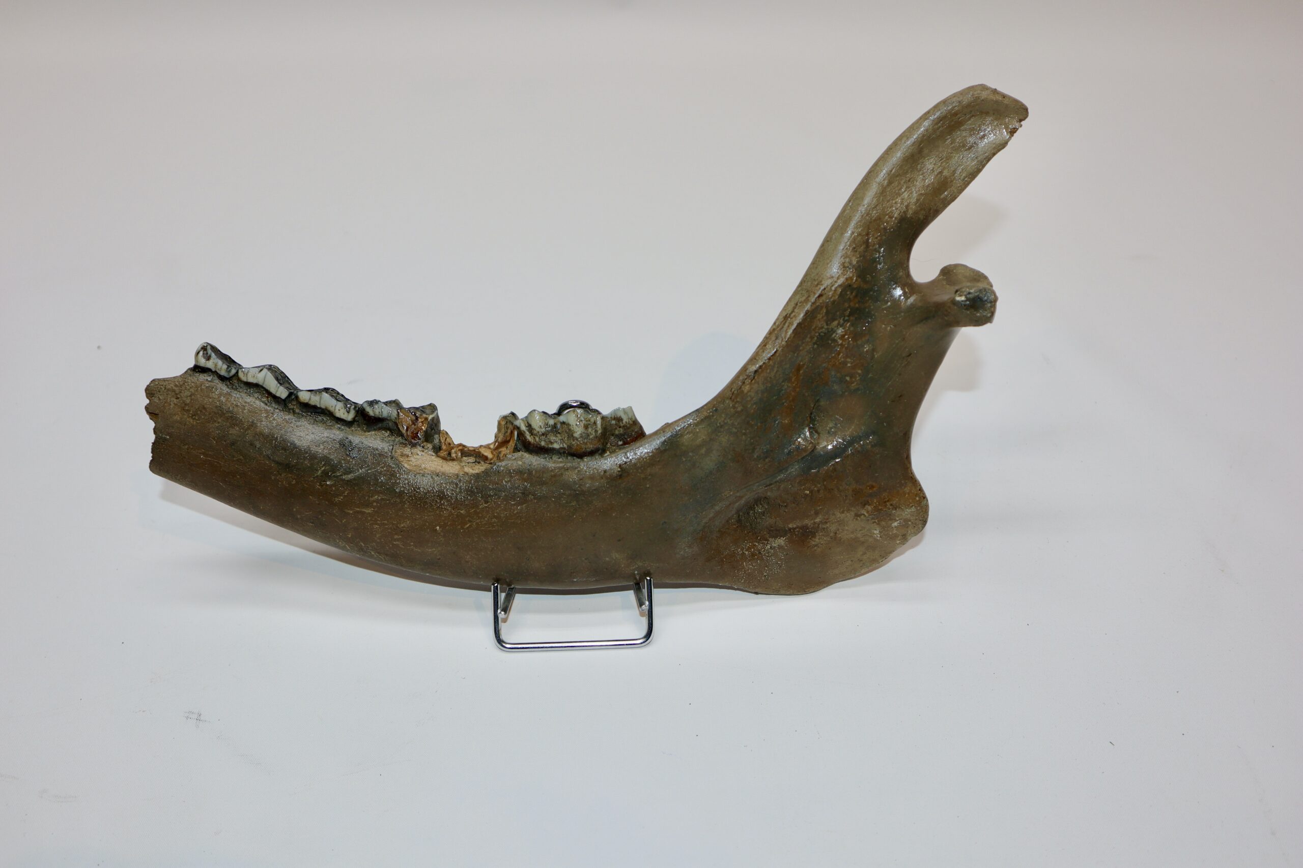 Irish elk was one of the most impressive creatures of all Ice age fauna, its enormous antlers being very sought after. On offer is a good and large partial antler of this fantastic animal, in good condition, as seen in the images. No restoration whatsoever. Complete antlers of the Irish Elk make tens of thousands of dollars in sales at the major auction houses, and this is a wonderful opportunity to acquire a relic of this animal at a fraction of the cost. The black and white section of the ruler in the image represents 10 cm / 3.9 inch.