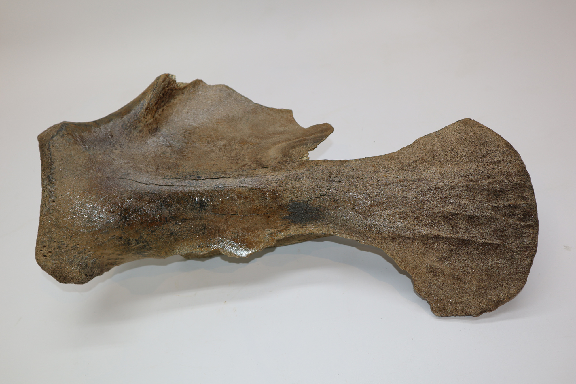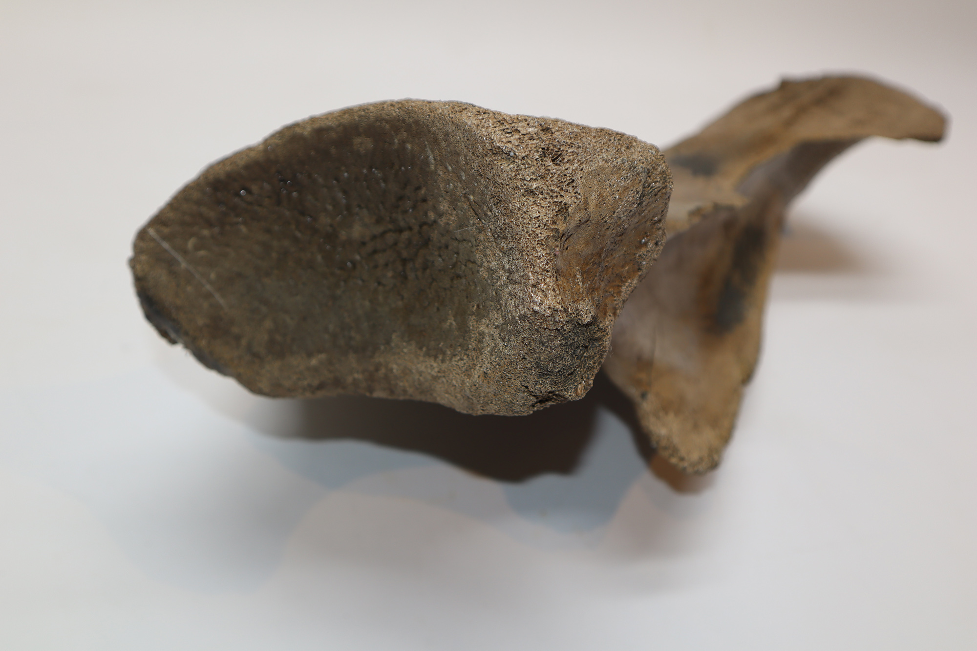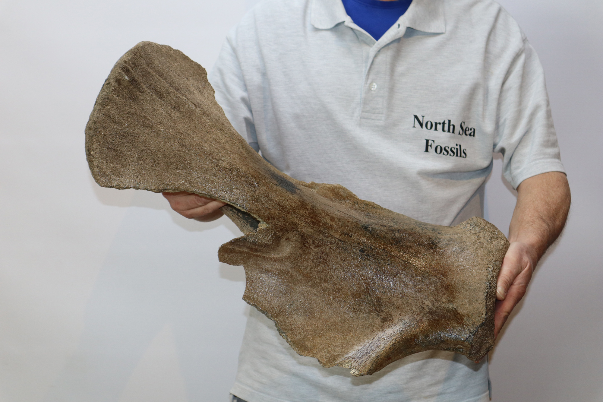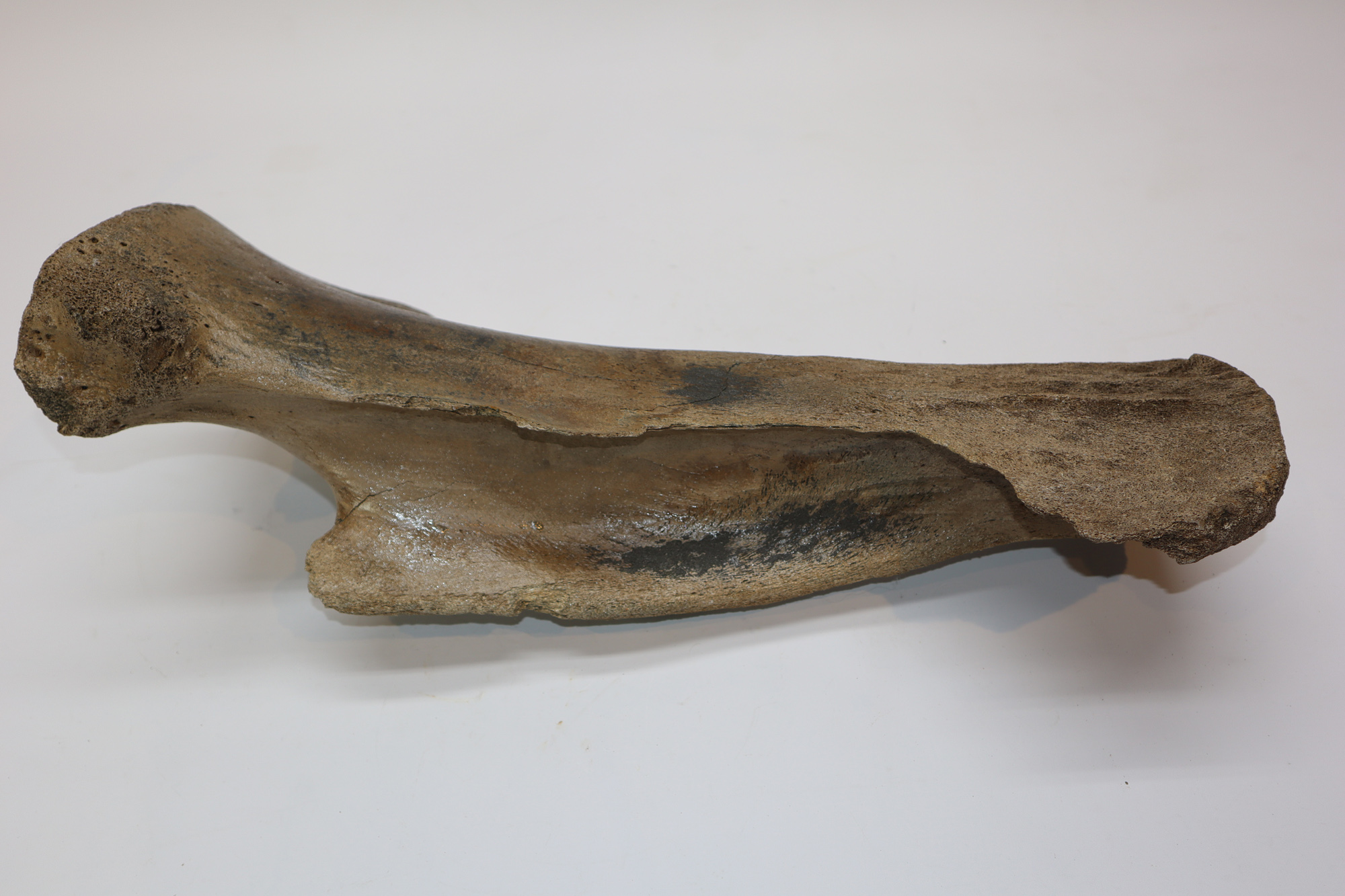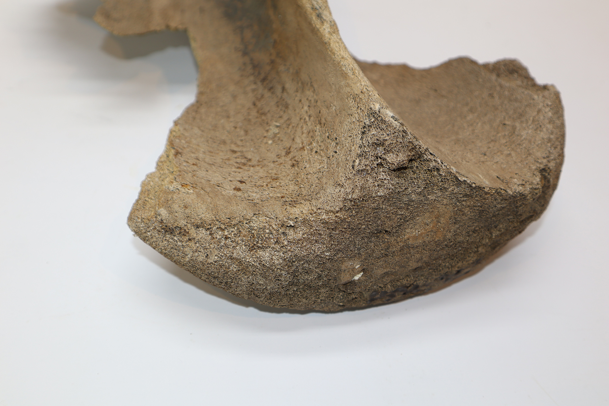 On offer is a partial shoulderblade or scapula of an adult Woolly Mammoth from the Pleistocene era. Interesting piece and attractively priced. Although this is a fragment, many anatomical details are still visible, and generally in good condition, as seen in the images. No restoration whatsoever. The black and white section of the ruler in the image represents 10 cm / 3.9 inch.