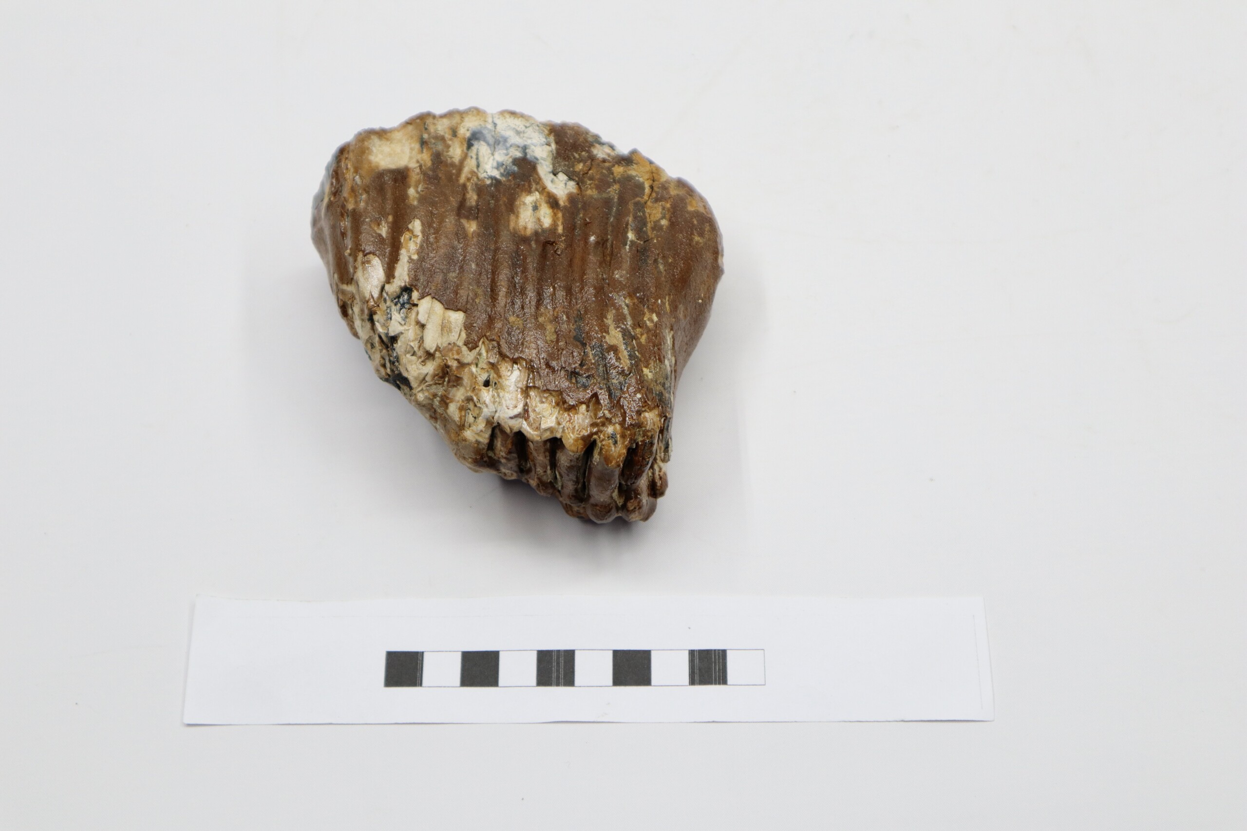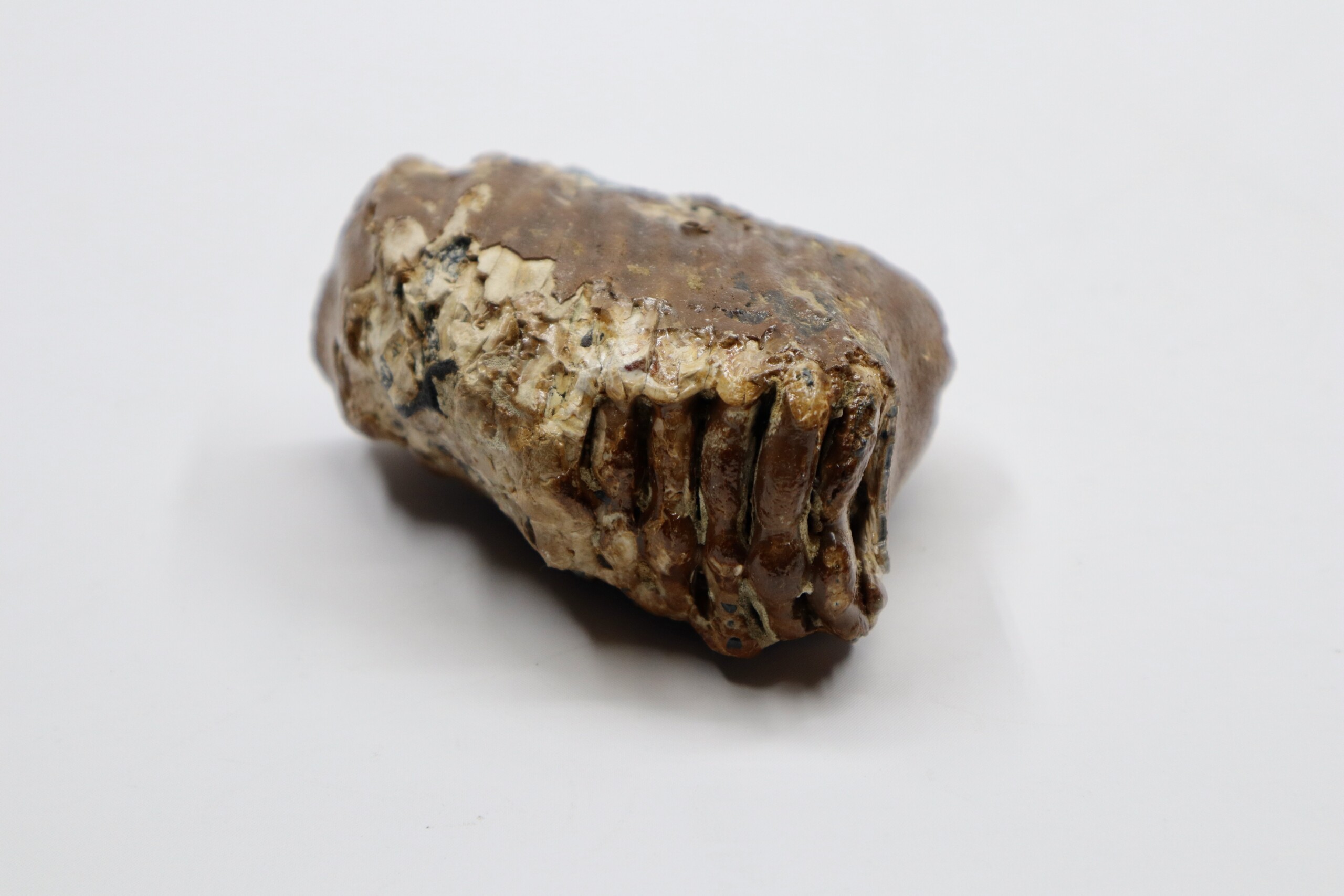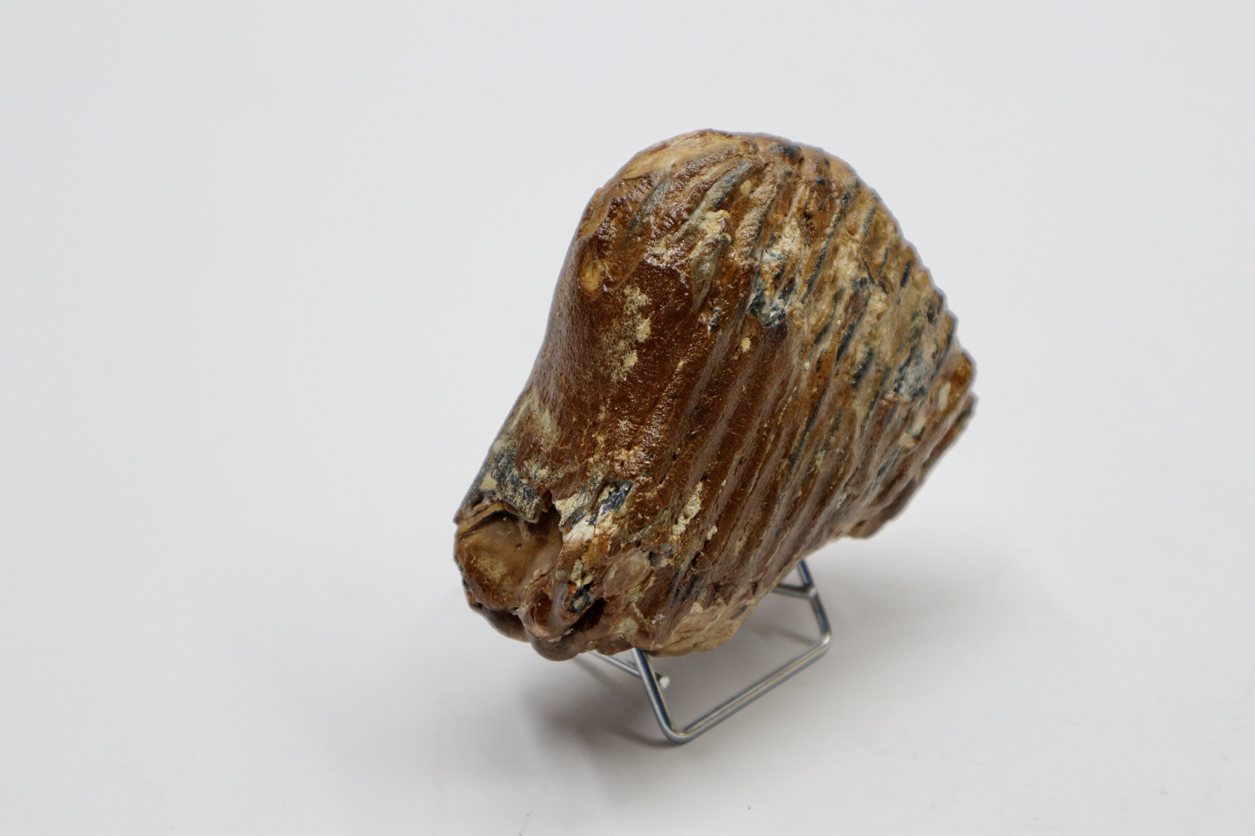 On offer is a good M1 molar of a sub-adult Woolly Mammoth from the Pleistocene era. This molar comes from the left upper jaw. Good quality tooth with beautiful chewing surface and good roots. Nice state of preservation, as seen in the images, and no restoration whatsoever. The black and white section of the ruler in the image represents 10 cm / 3.9 inch.