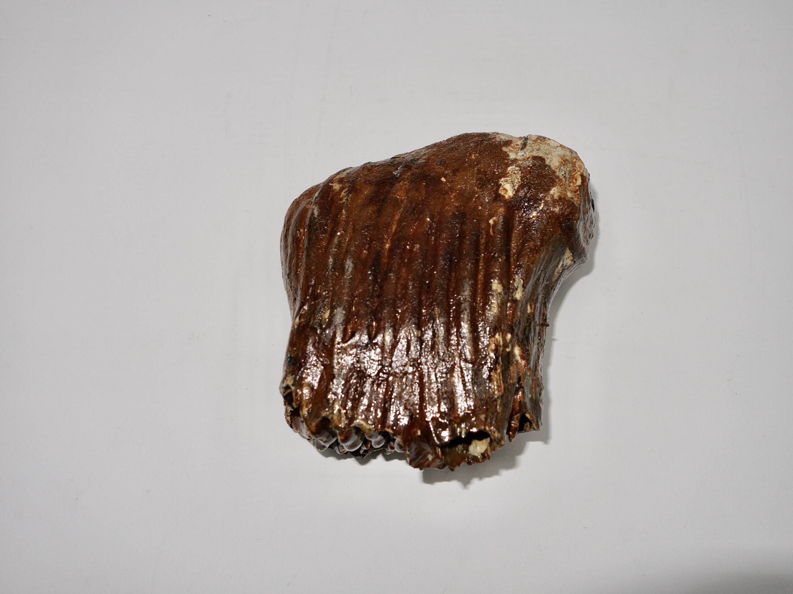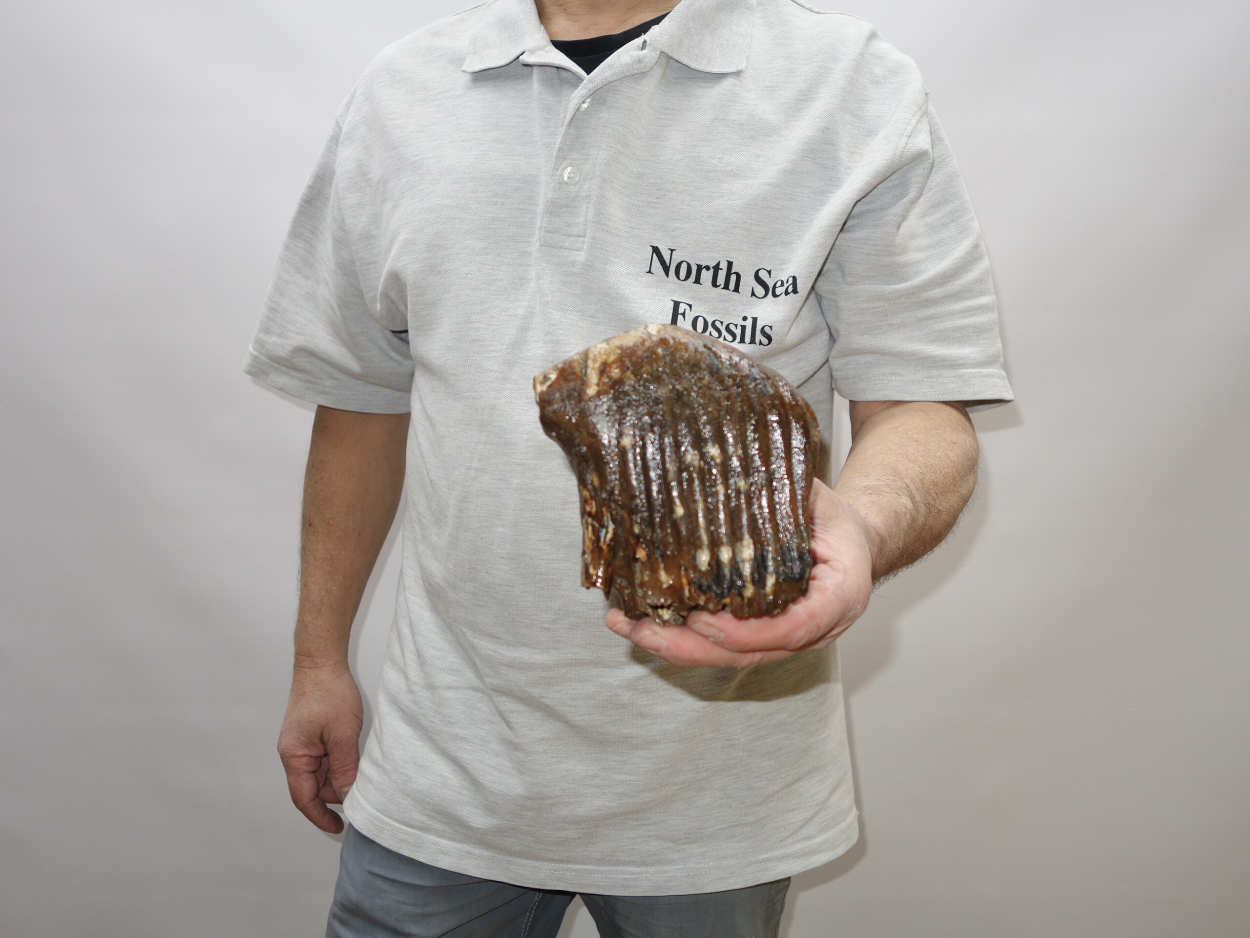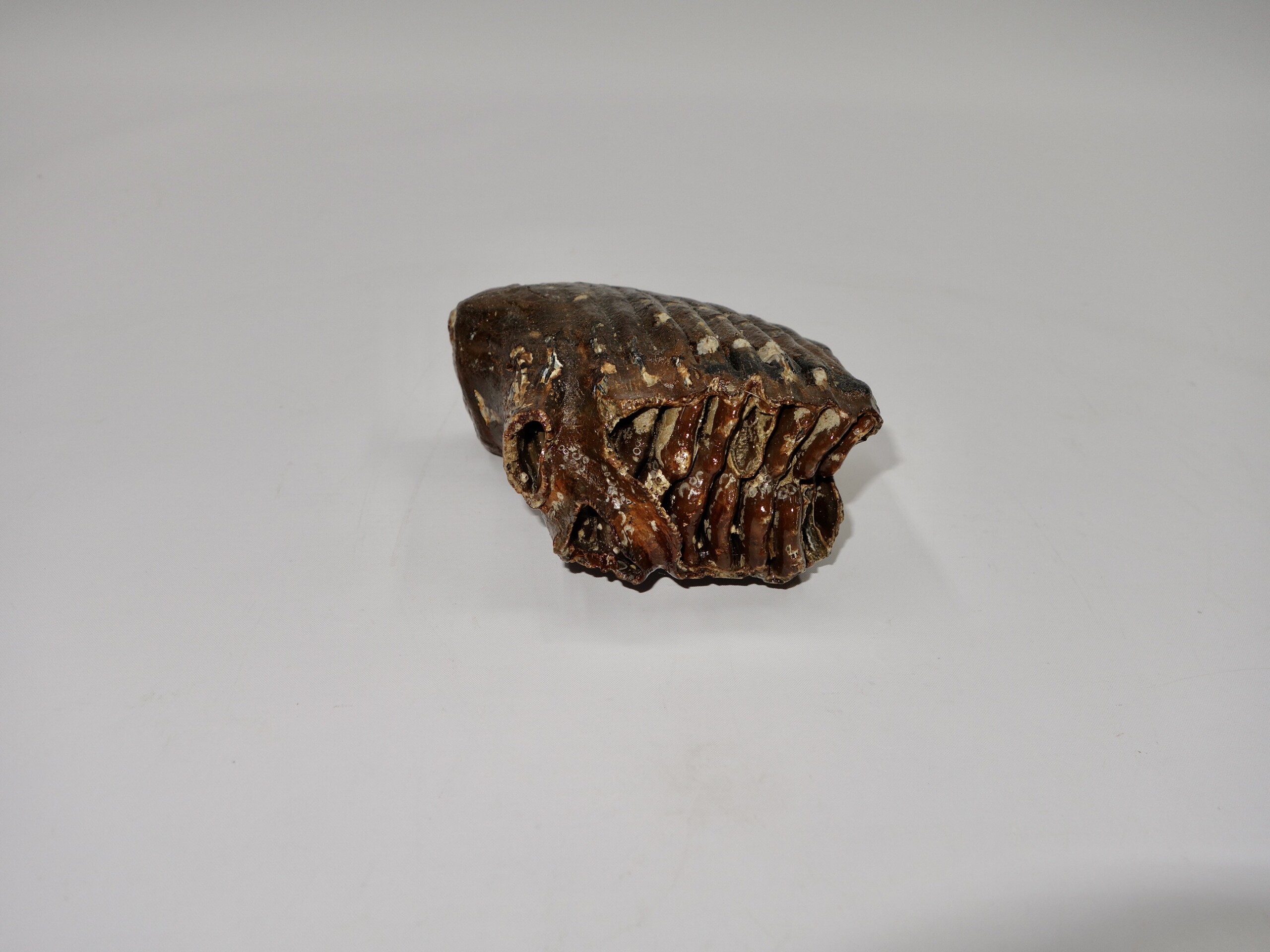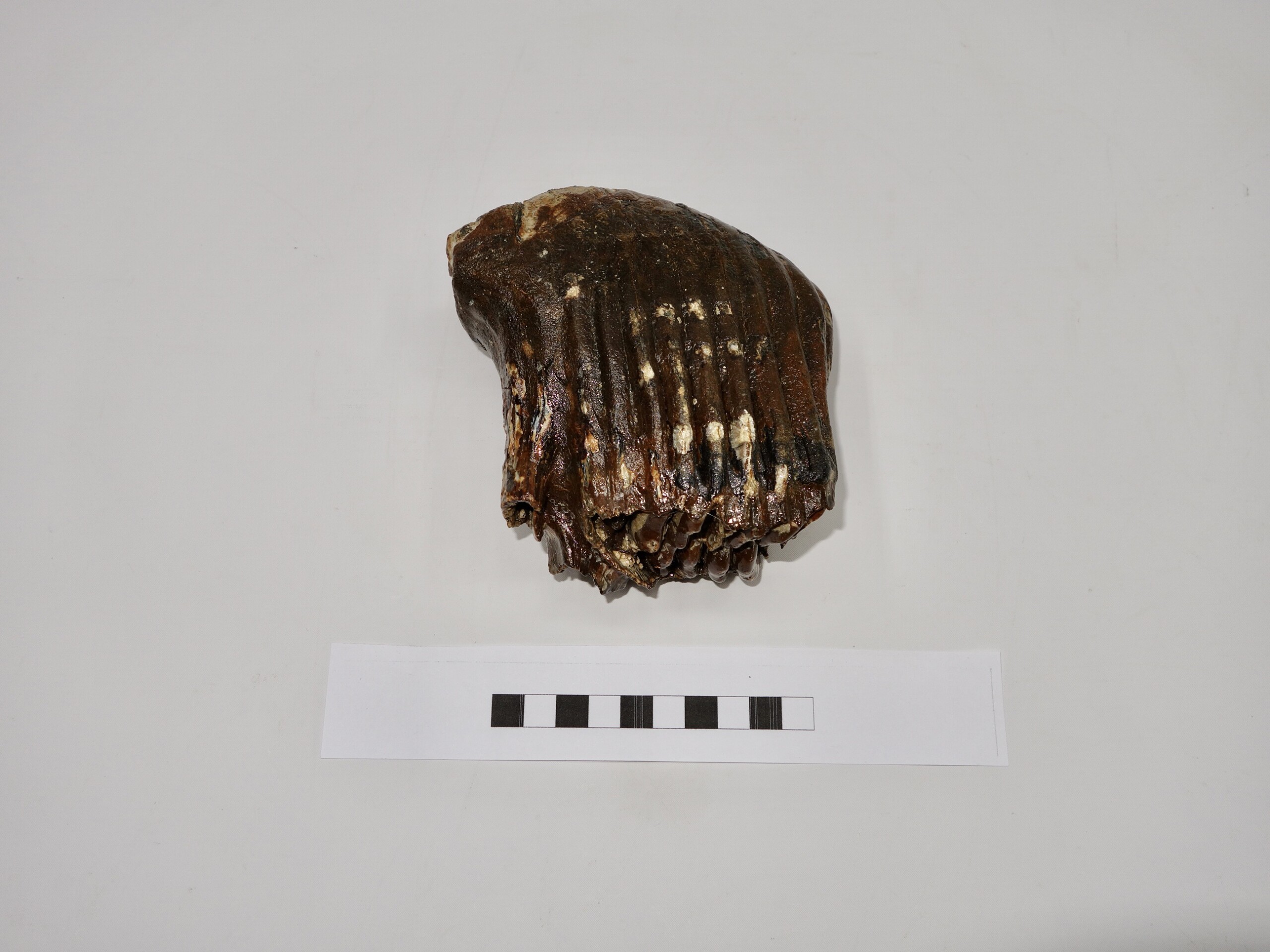 On offer is a good M1 molar of a sub-adult Woolly Mammoth from the Pleistocene era. This molar comes from the right upper jaw. Good quality tooth with beautiful chewing surface and good roots. Nice state of preservation, as seen in the images, and no restoration whatsoever. The black and white section of the ruler in the image represents 10 cm / 3.9 inch.