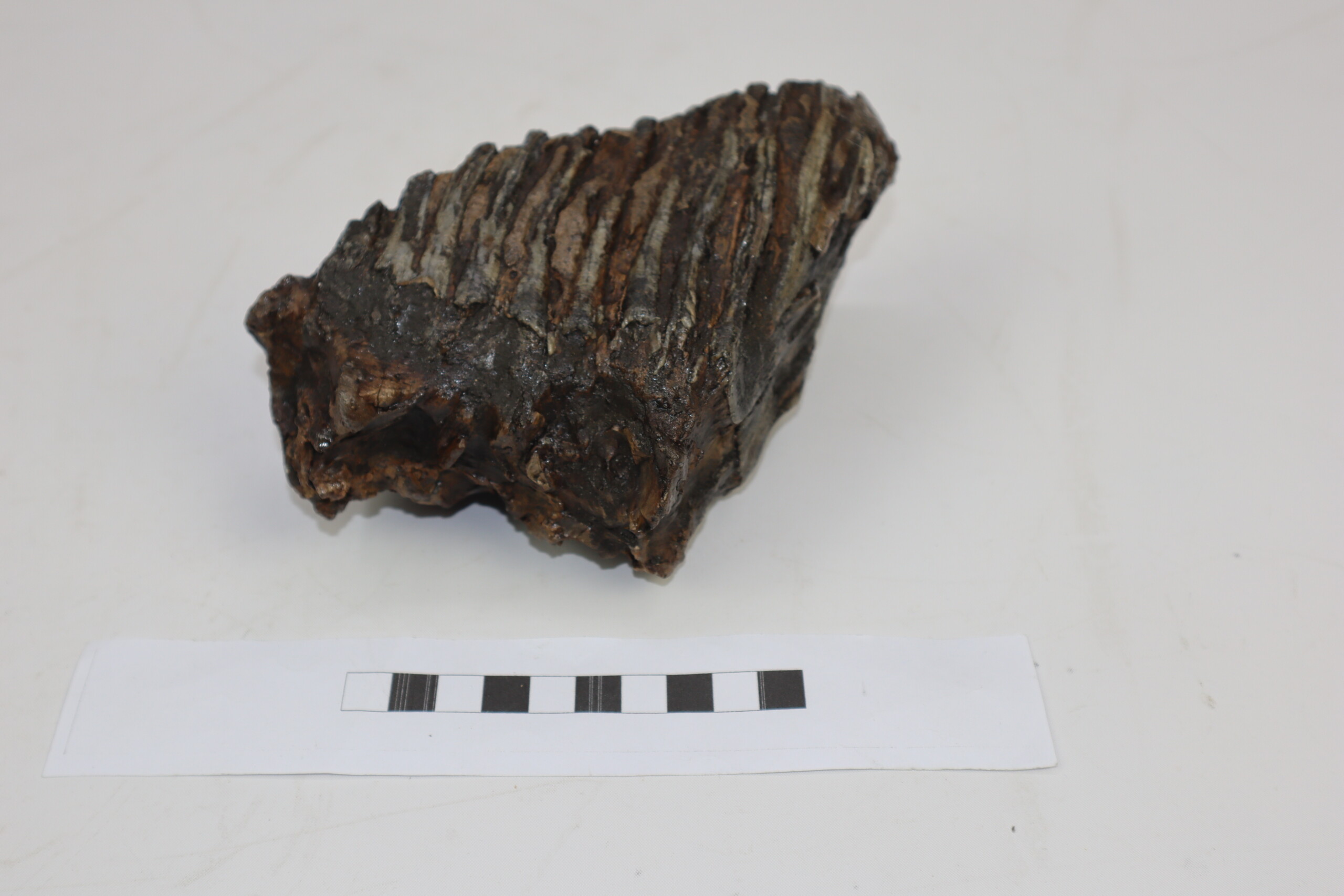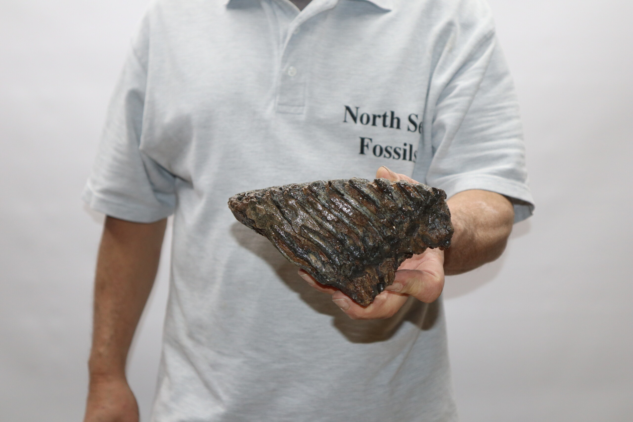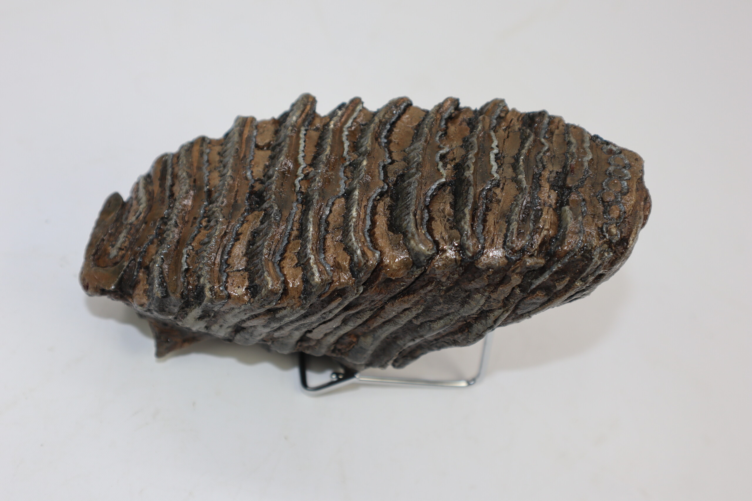 On offer is a good upper jaw M2 molar of a sub-adult Woolly Mammoth from the Pleistocene era. This molar comes from the left upper jaw and is a nice example of a nearly adult animal, in good state of preservation, as seen in the images. The black and white section of the ruler in the image represents 10 cm / 3.9 inch. No restoration whatsoever.