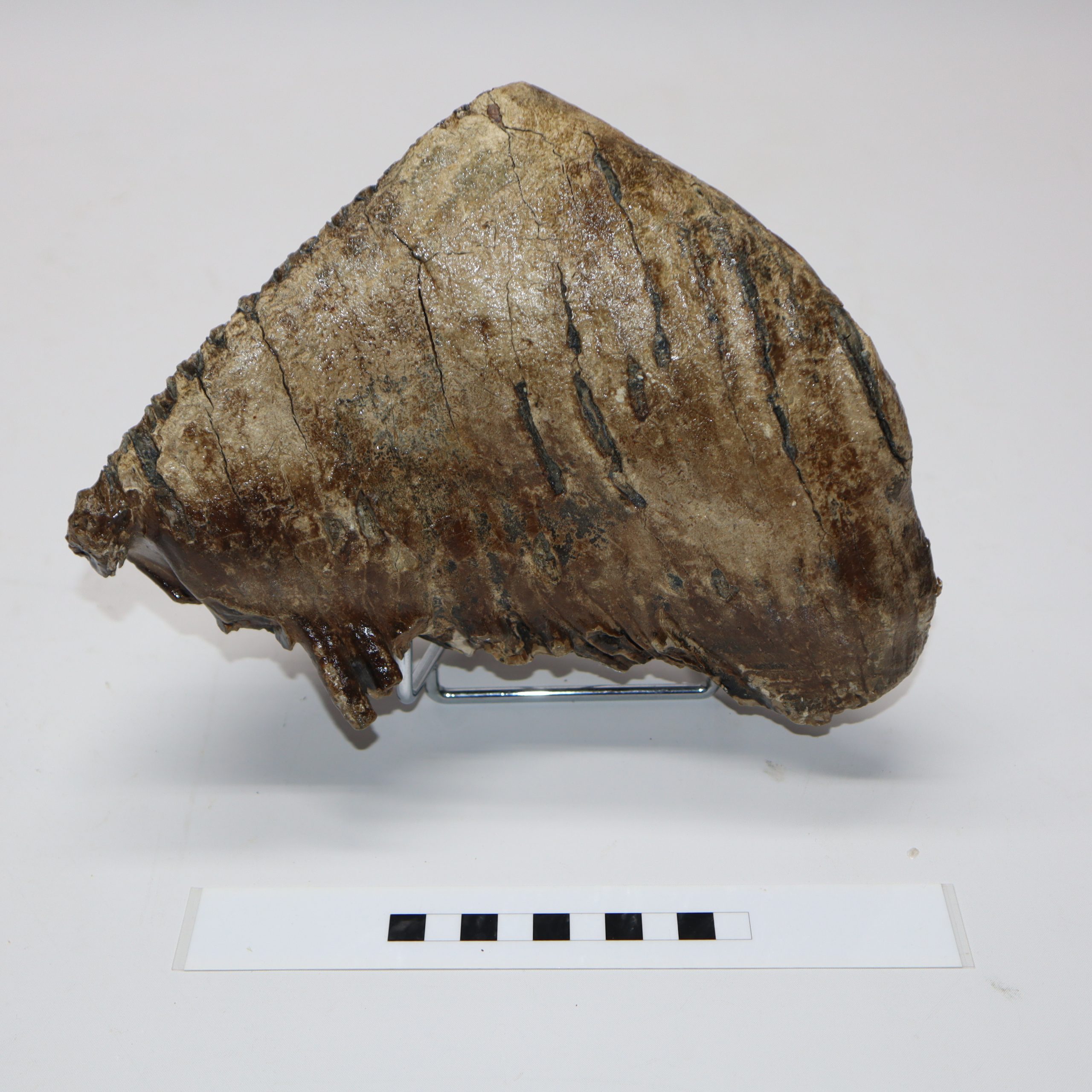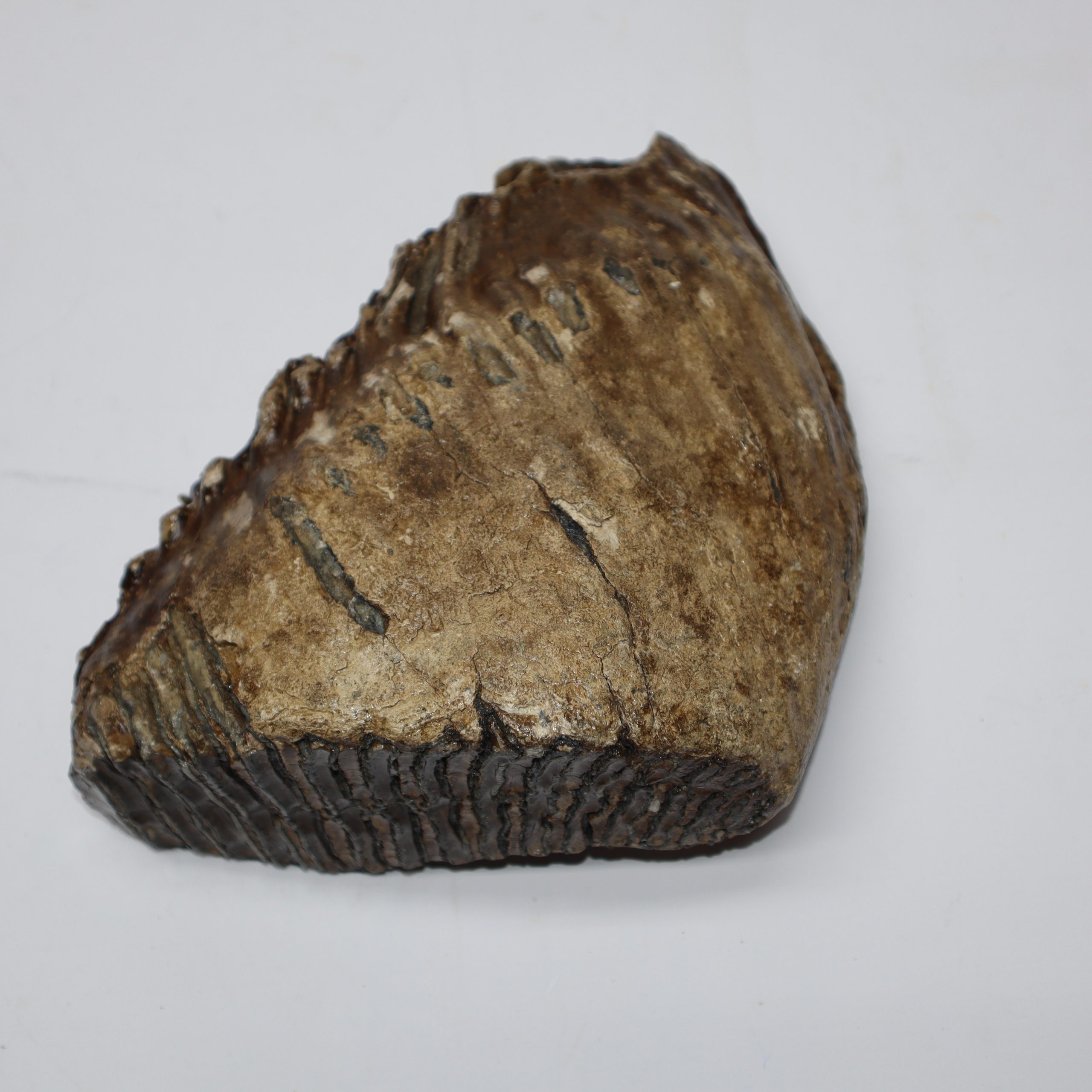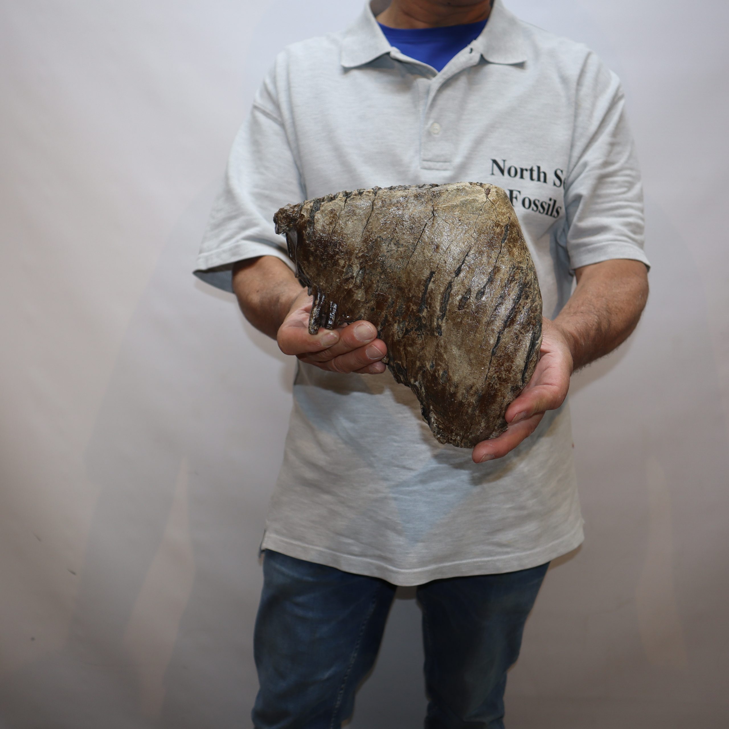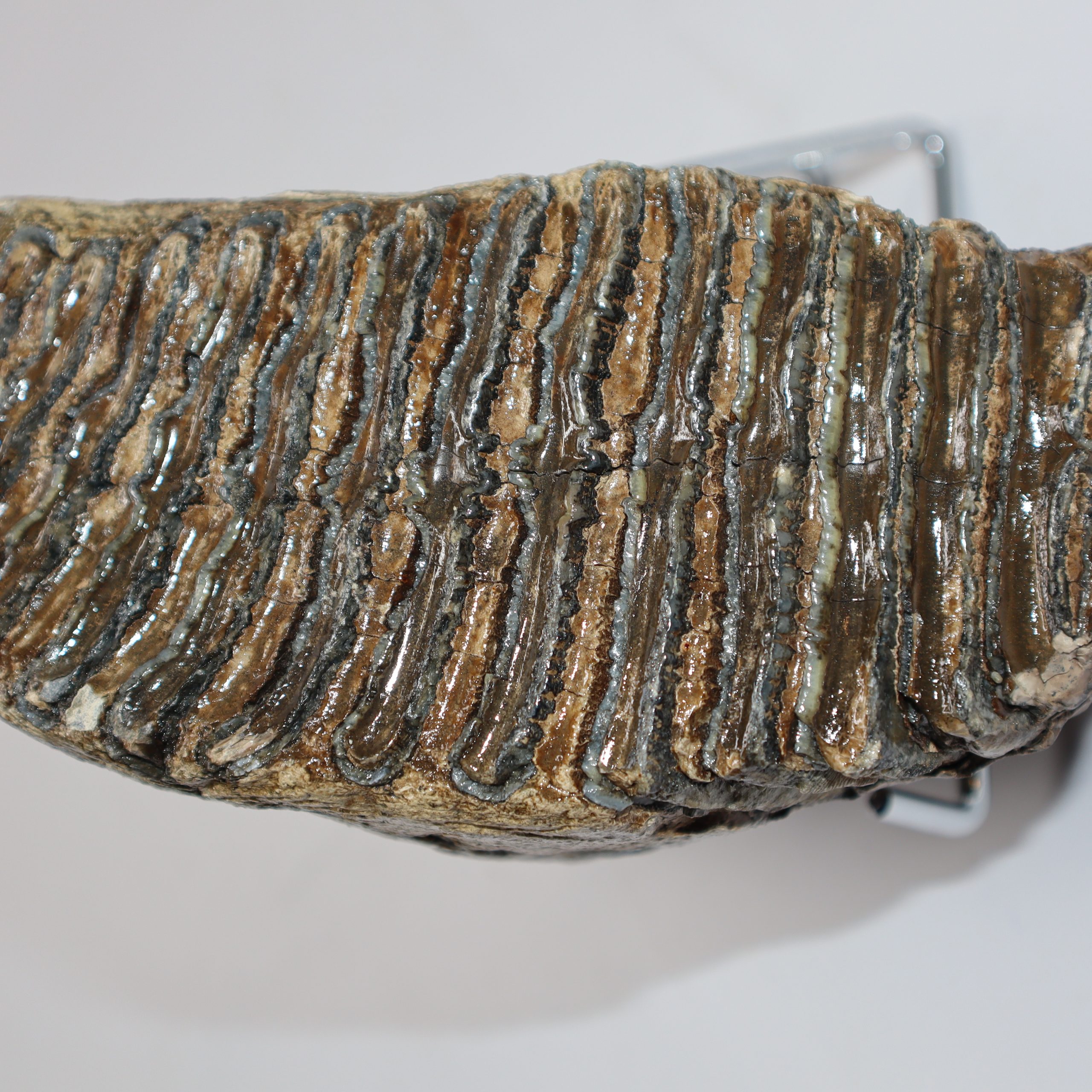 On offer is a gorgeous and large M3 molar of aย Woolly Mammoth from the Pleistocene era. This molar comes from the left upper jaw and is a beautiful example of a fully grown animal, in fantastic state of preservation and with a beautiful chewing surface as seen in the images. No restoration whatsoever. Judging from the size, this belonged to an adult Mammoth in the prime of its life. The black and white section of the ruler in the image represents 10 cm / 3.9 inch.