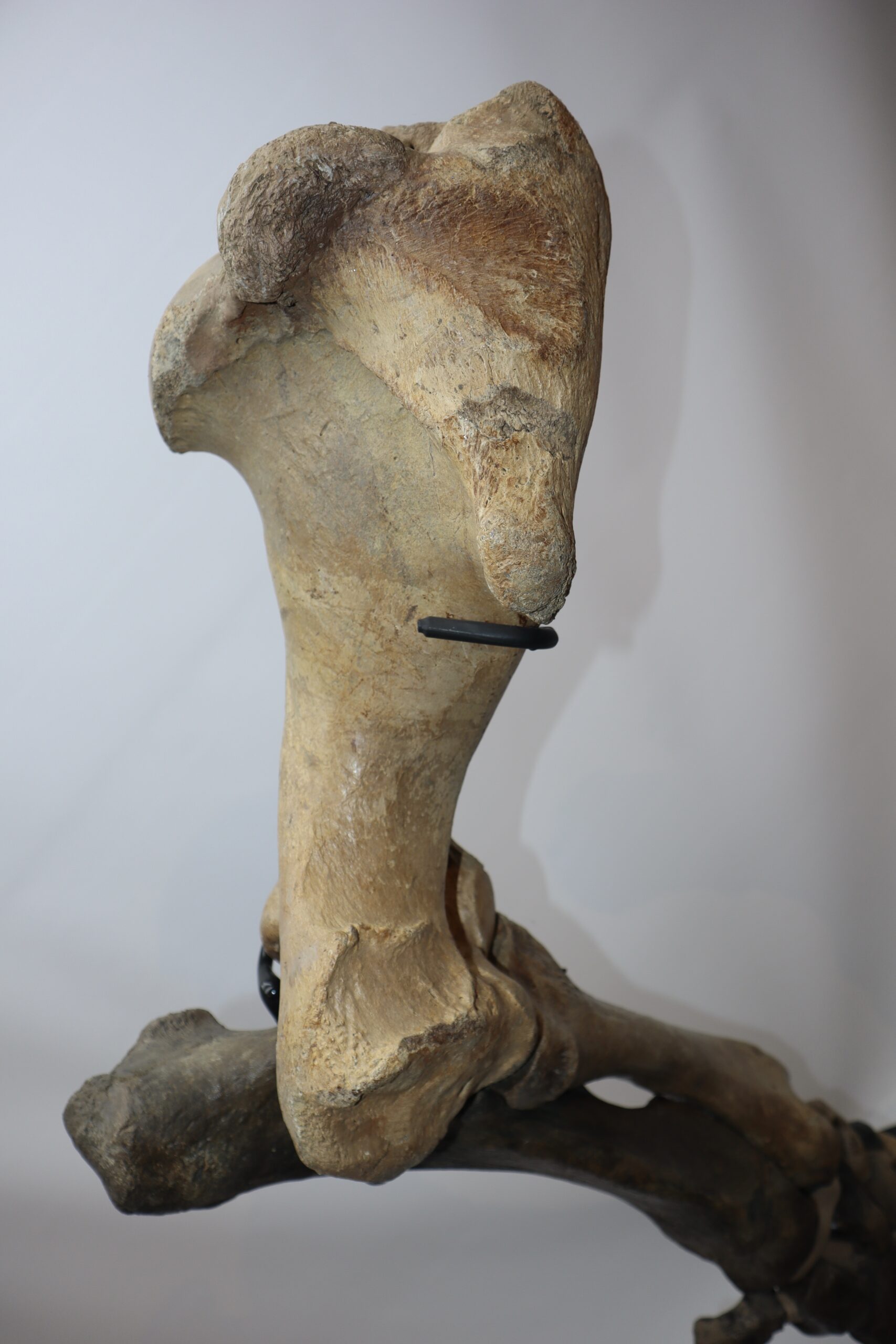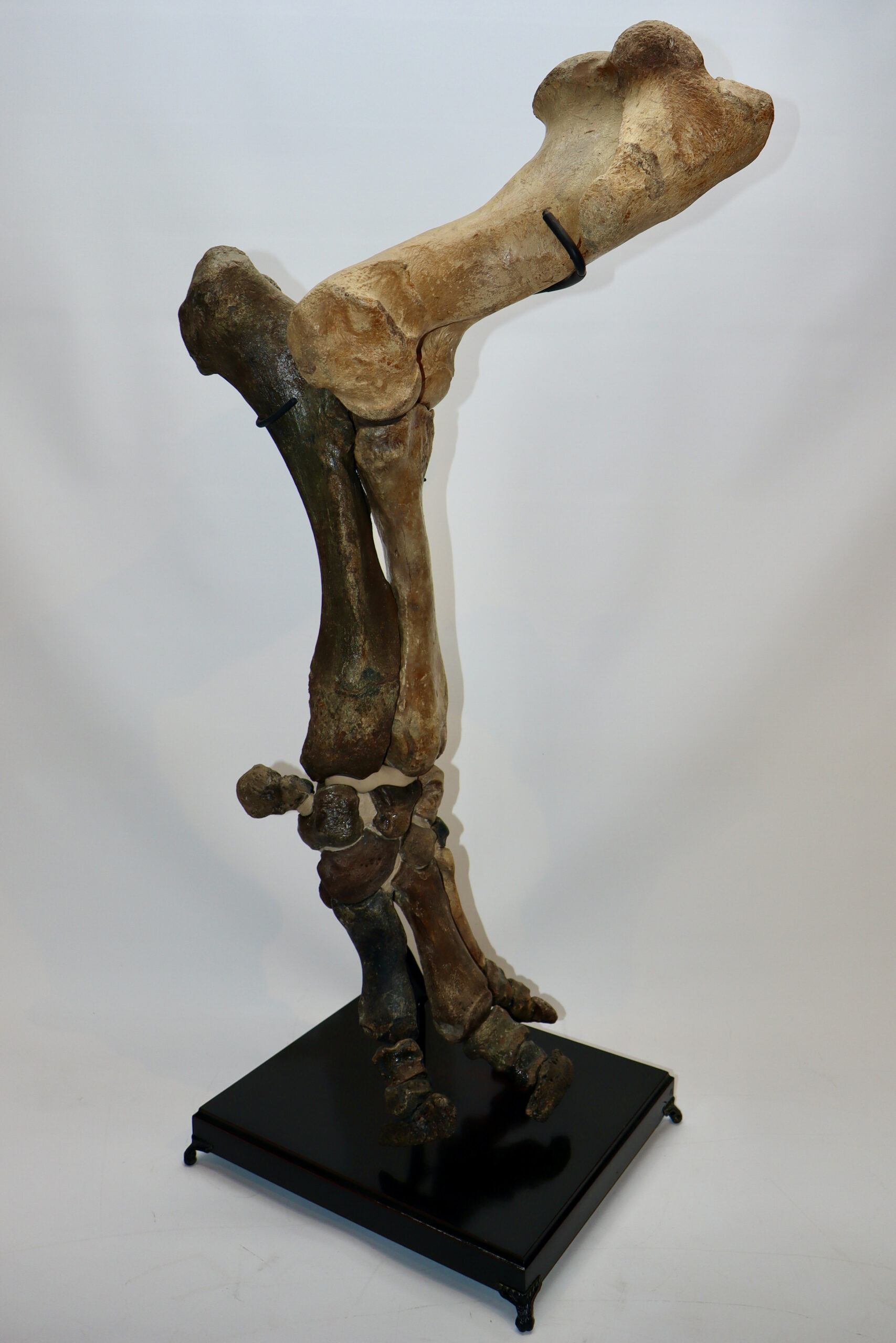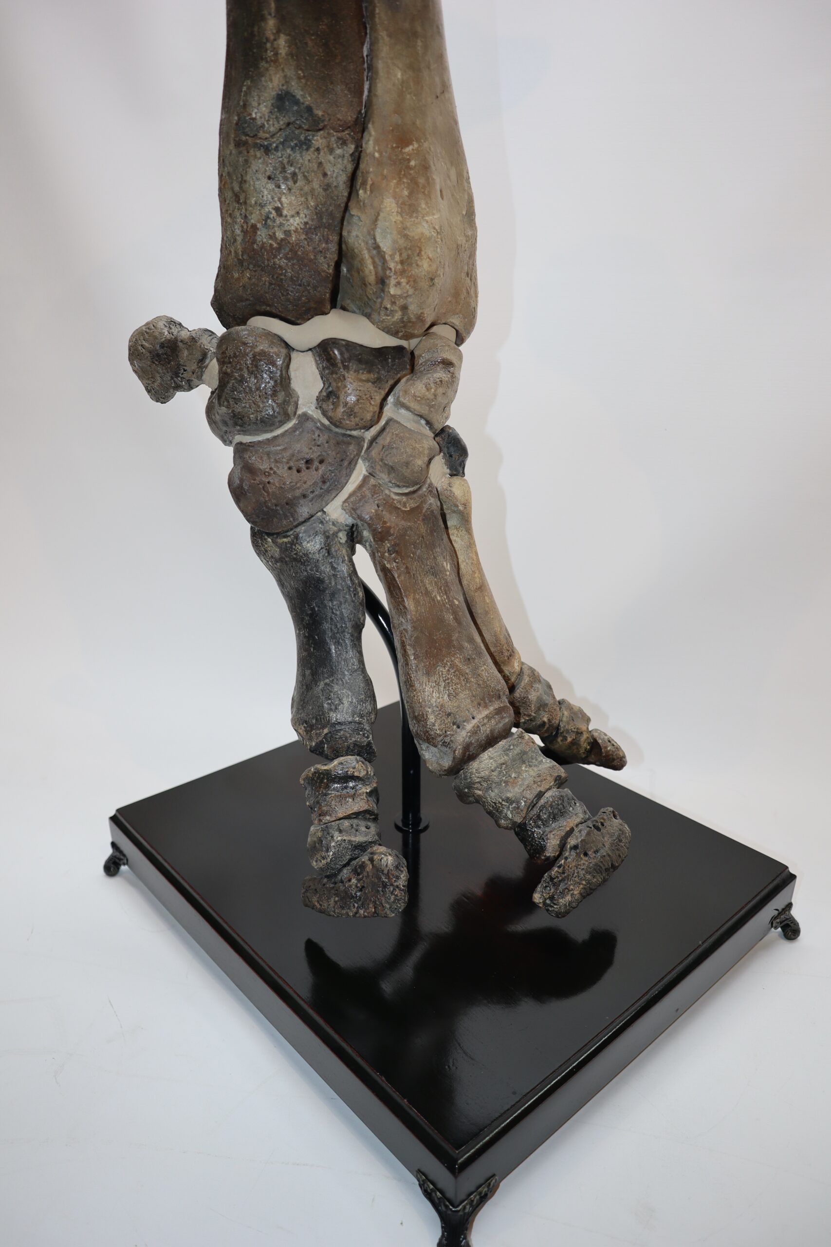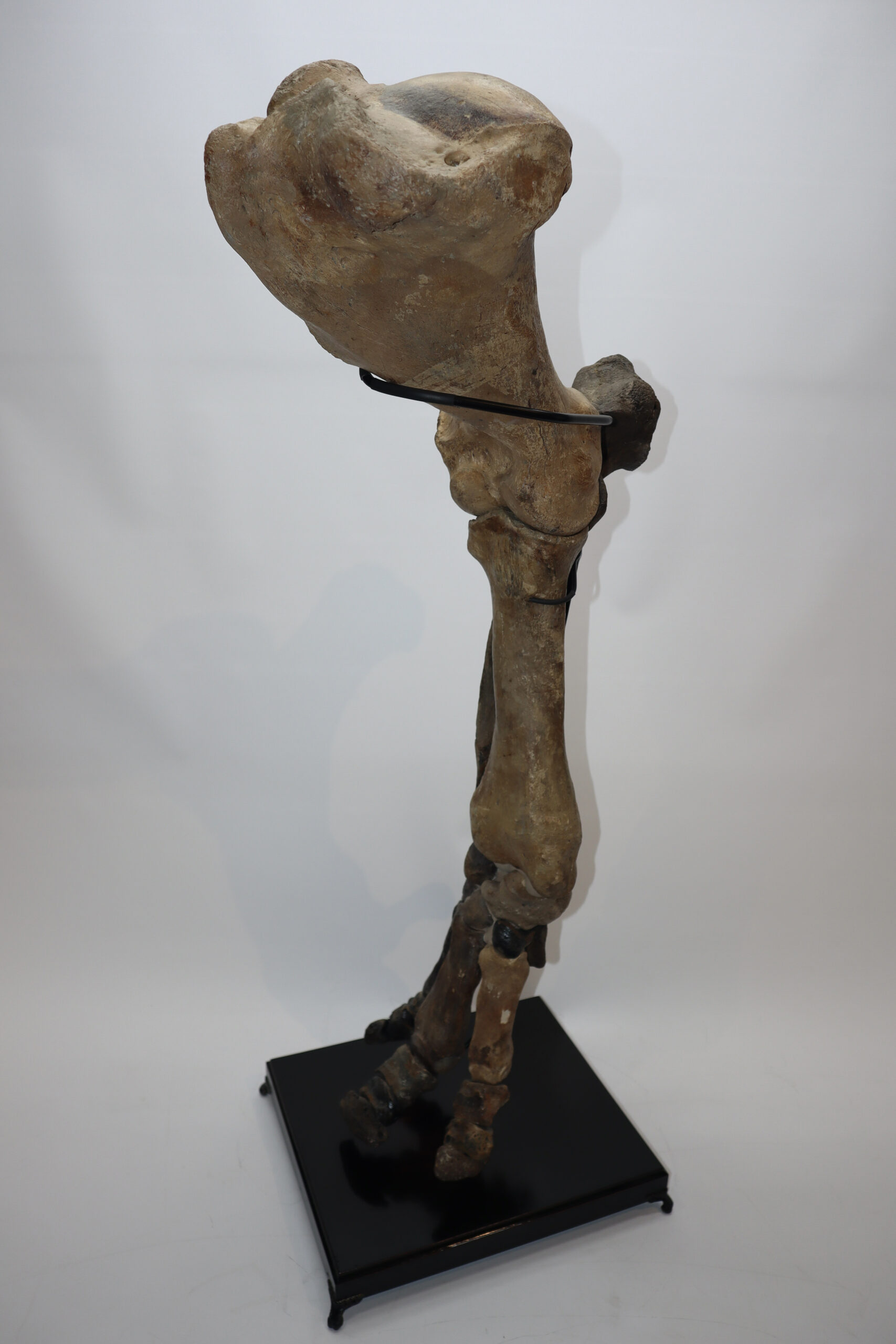 We are proud to present this excessively rare and most stunningly preserved right side forelimb of a Pleistocene Woolly Rhinoceros. Highly recommended for advanced collectors and museum and university collections. In many years of collecting and dealing we have almost never seen a Rhino forelimb like this one! Truly a unique fossil. It is very rare and special for its truly magnificent state of preservation, preserving small details of anatomy. This piece consists of a fantastic humerus, radius/ulna and the manus, consisting of the various footbones, all assembled according to the latest scientific consensus. Worthy of any museum collection. The black and white section of the ruler in the image represents 10 cm / 3.9 inch.