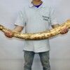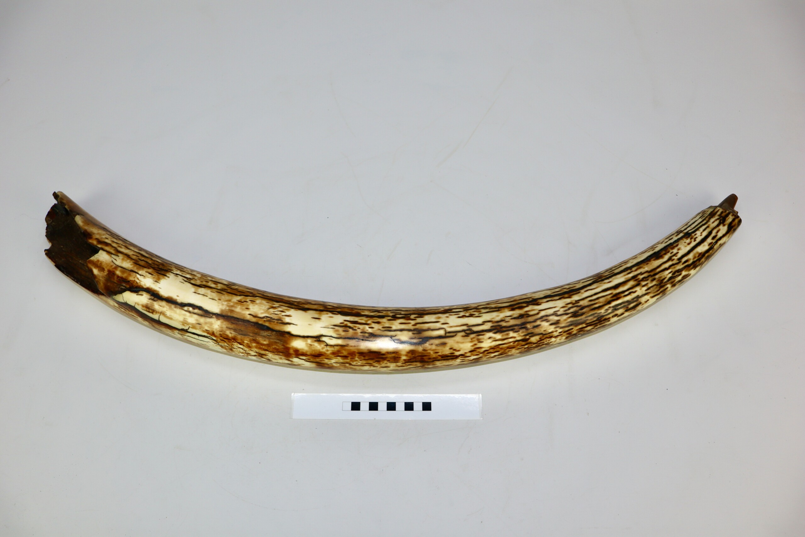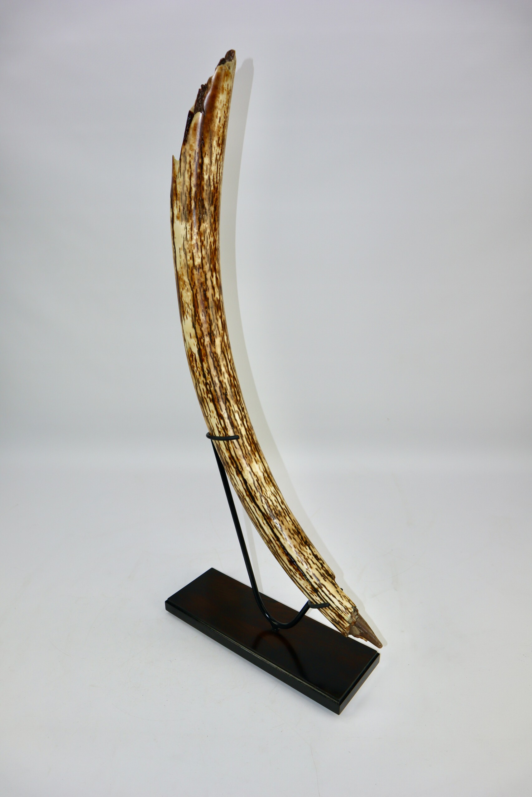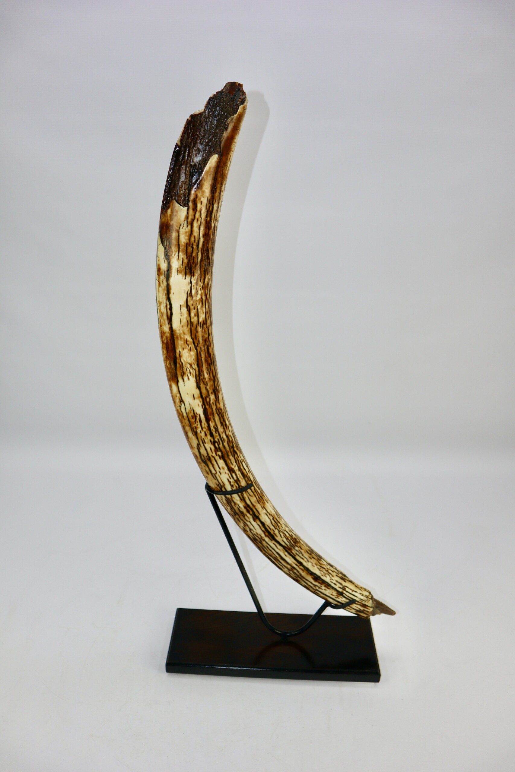 On offer is a fantastic half tusk of a female Woolly Mammoth from the Pleistocene era. Although it is only a half tusk, otherwise it is in excellent condition as seen in the images. This is the middle part of the tusk, the base and tip are missing. A crack has been professionally repaired, otherwise no restoration whatsoever. This tusk piece is of beautiful ivory of mainly white, gold, grey andย brown ivory, and with stunning patterning. Fantastic piece and highly recommended. The black and white section of the ruler in the image represents 10 cm / 3.9 inch. This piece has been applied with a matt finish, but it is also possible to order it with a glossy finish.