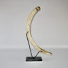 On offer is a fantastic half tusk of a female Woolly Mammoth from the Pleistocene era. Although it is only a half tusk, otherwise it is in excellent condition as seen in the images. This is the middle part of the tusk, the base and tip are missing. This tusk piece is of beautiful ivory of mainly white, gold, grey andย brown ivory, and with stunning patterning. Fantastic piece and highly recommended. The black and white section of the ruler in the image represents 10 cm / 3.9 inch. This piece has been applied with a matt finish, but it is also possible to order it with a glossy finish.