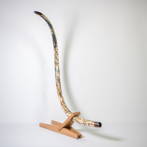 Attractively displayed on a custom-made stand with natural wood finish, and ready to display. We also have a stand of another design for this superb tusk, you can choose which one you want. Not only a museum-quality fossil, but also truly a work of art in its own right.