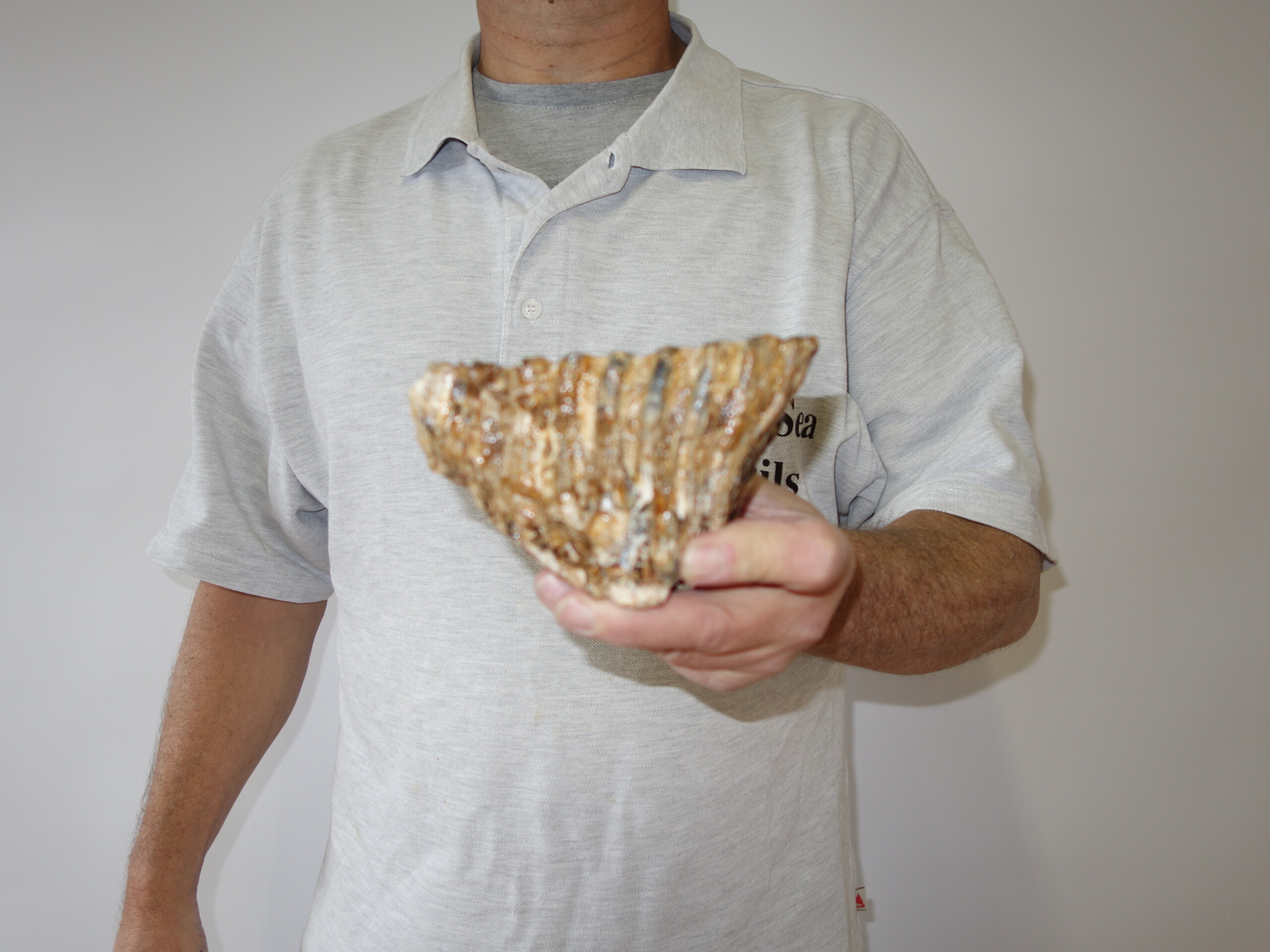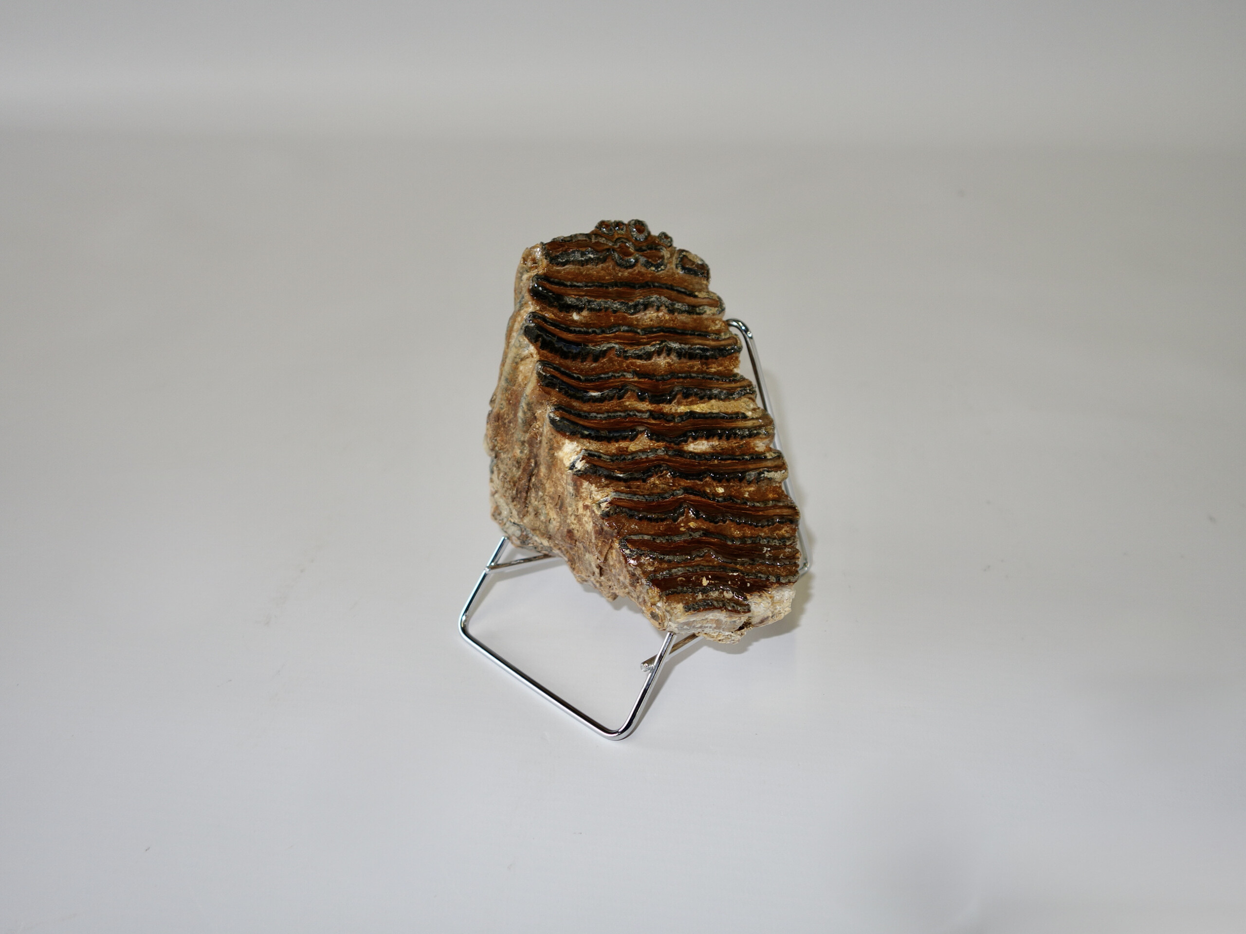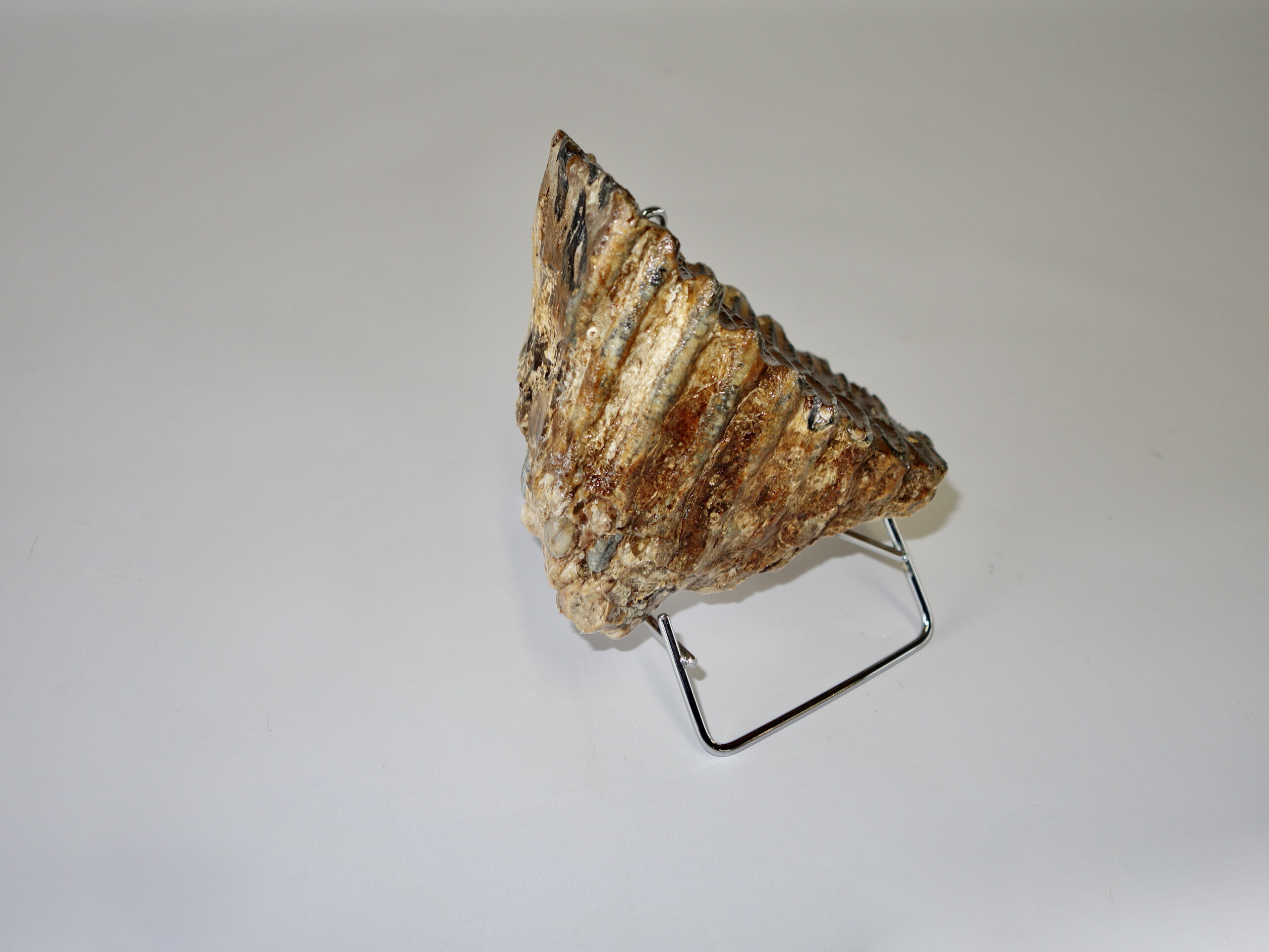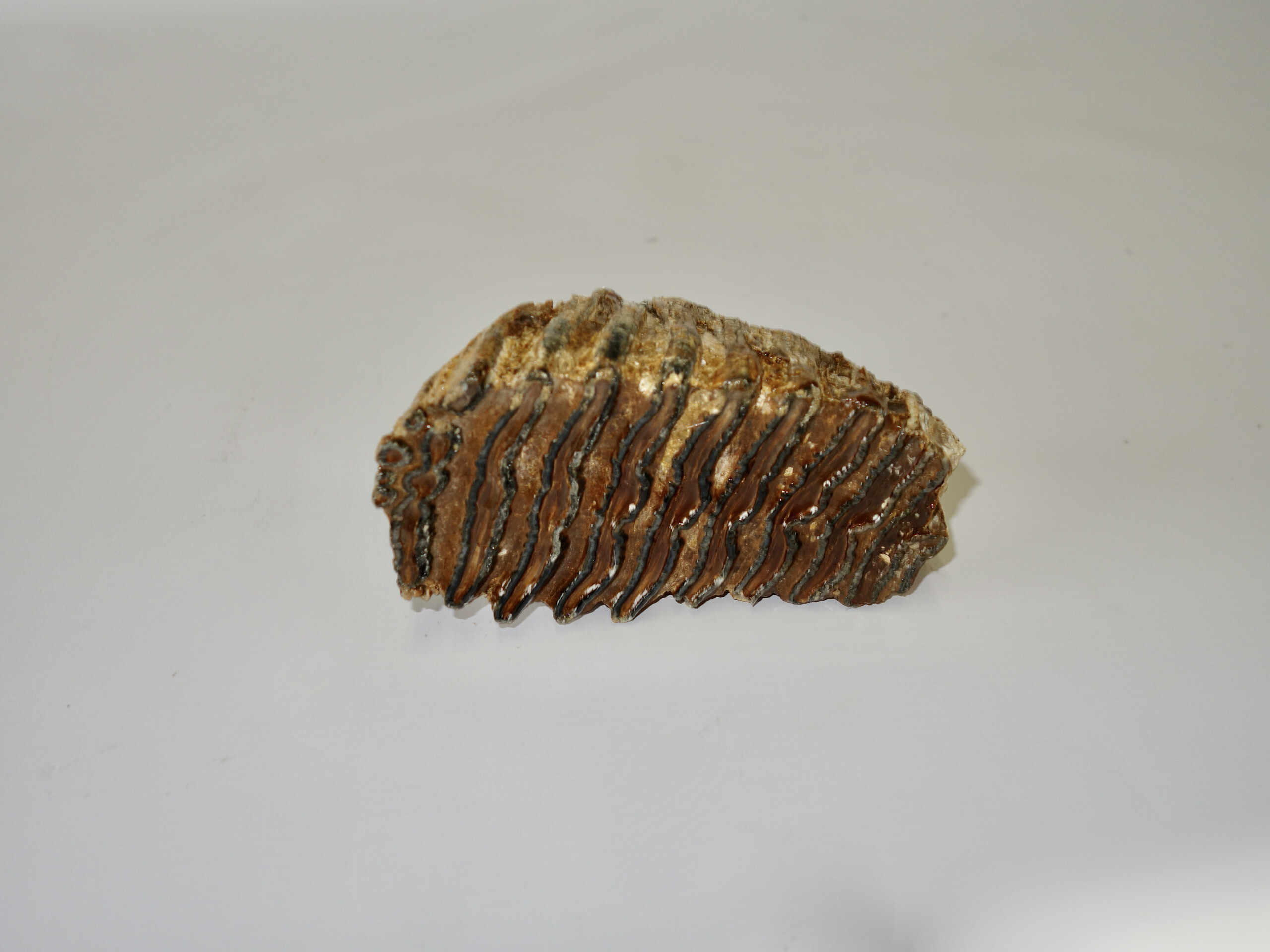 On offer is a nice M1 molar that comes from the left upper jaw of a Woolly Mammoth from the Pleistocene era. This is aย nice example of a juvenile animal, in good state of preservation as seen in the images. The black and white section of the ruler in the image represents 10 cm / 3.9 inch. No restoration whatsoever.