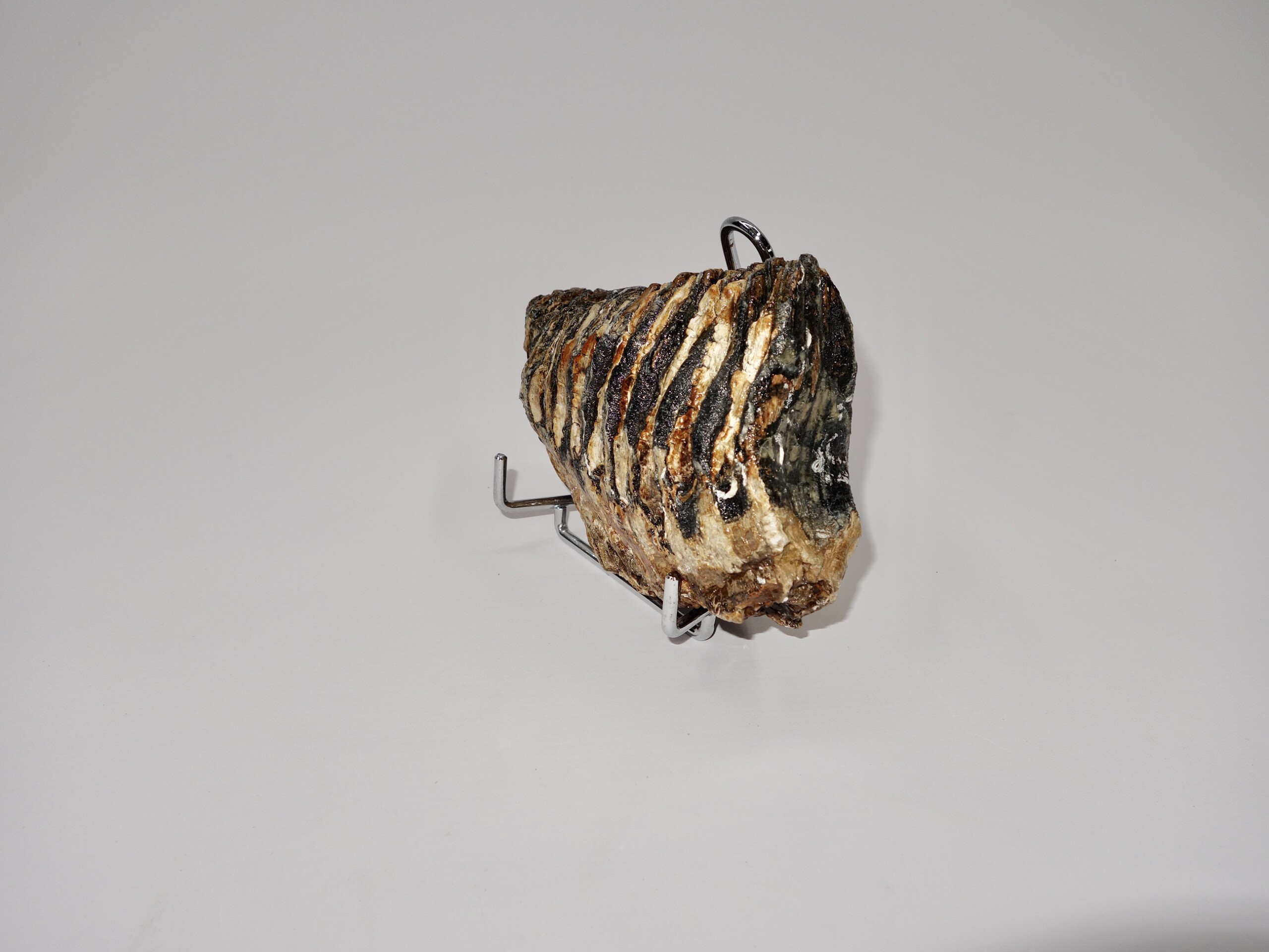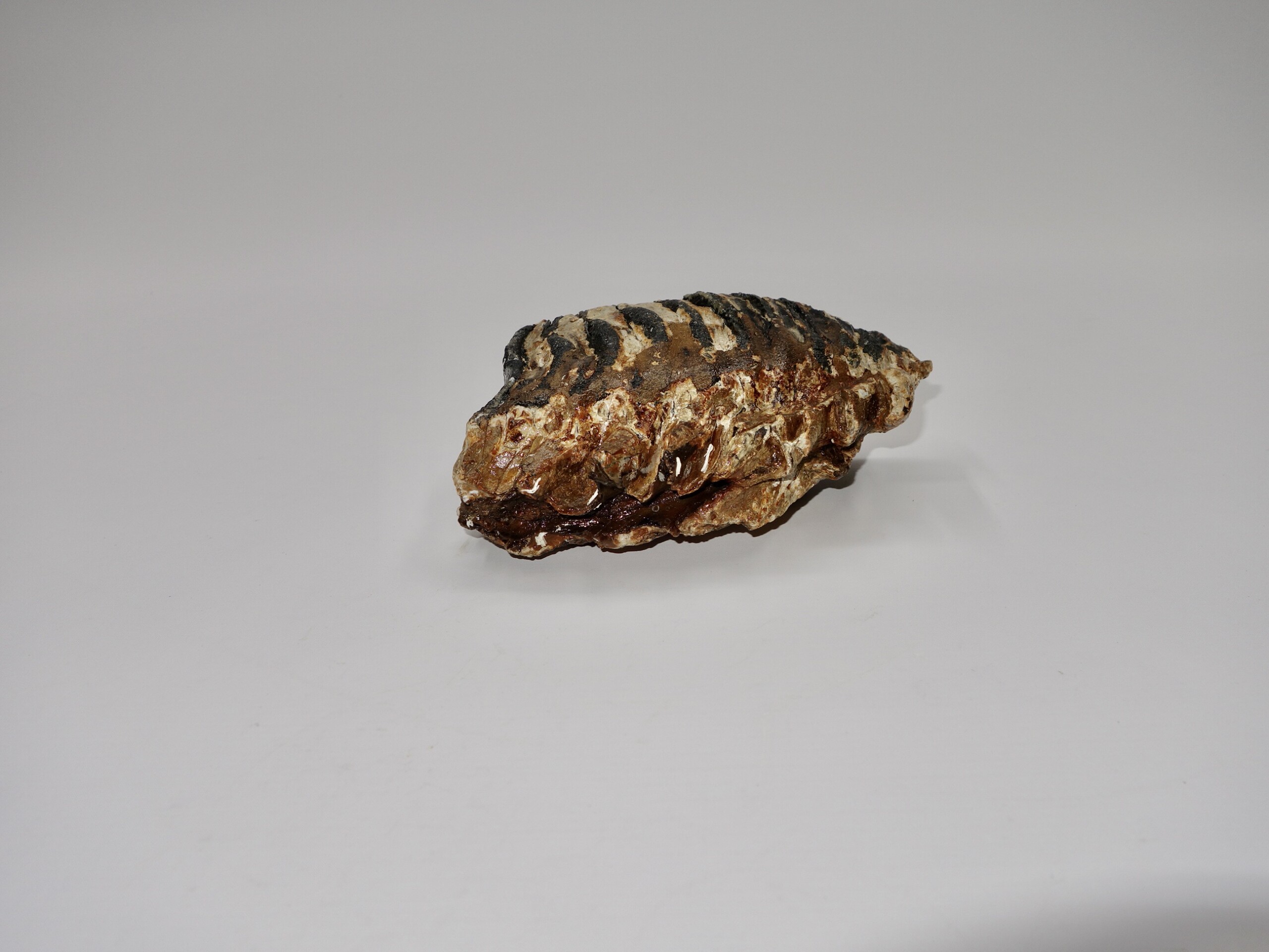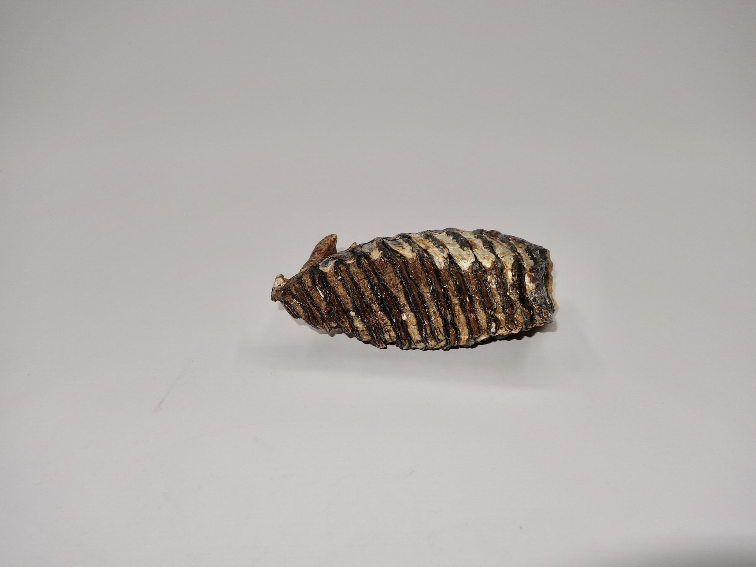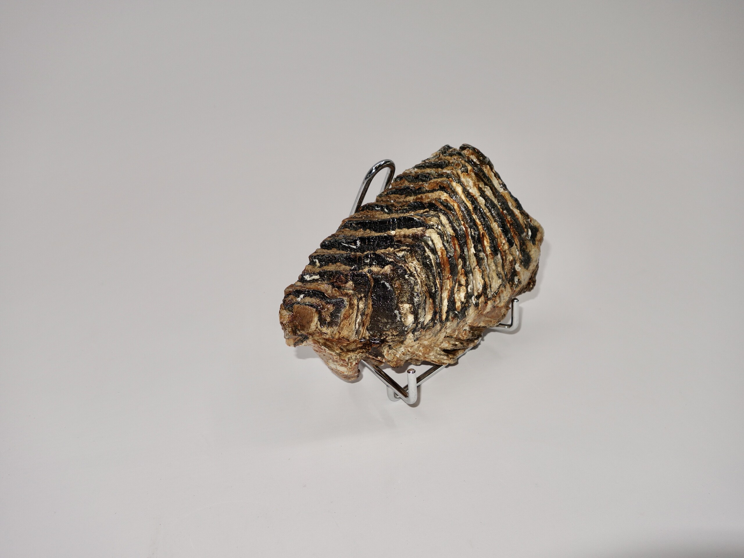 On offer is a nice partial M3 molar of an adult Woolly Mammoth from the Pleistocene era. This molar comes from the left lower jaw. This is in partial condition, missing a few ridges, but still a nice fossil, as seen in the images. No restoration whatsoever. The black and white section of the ruler in the image represents 10 cm / 3.9 inch.