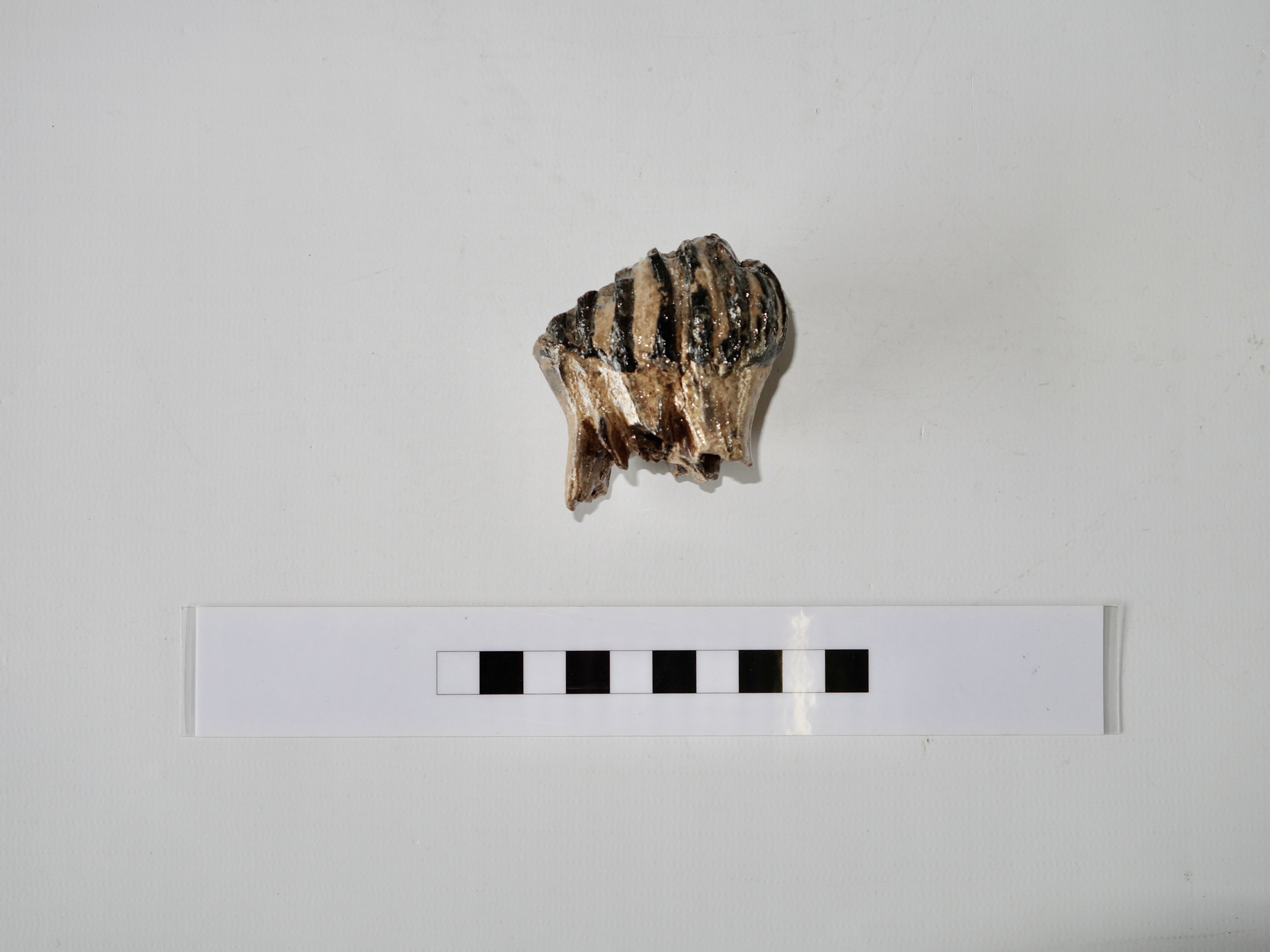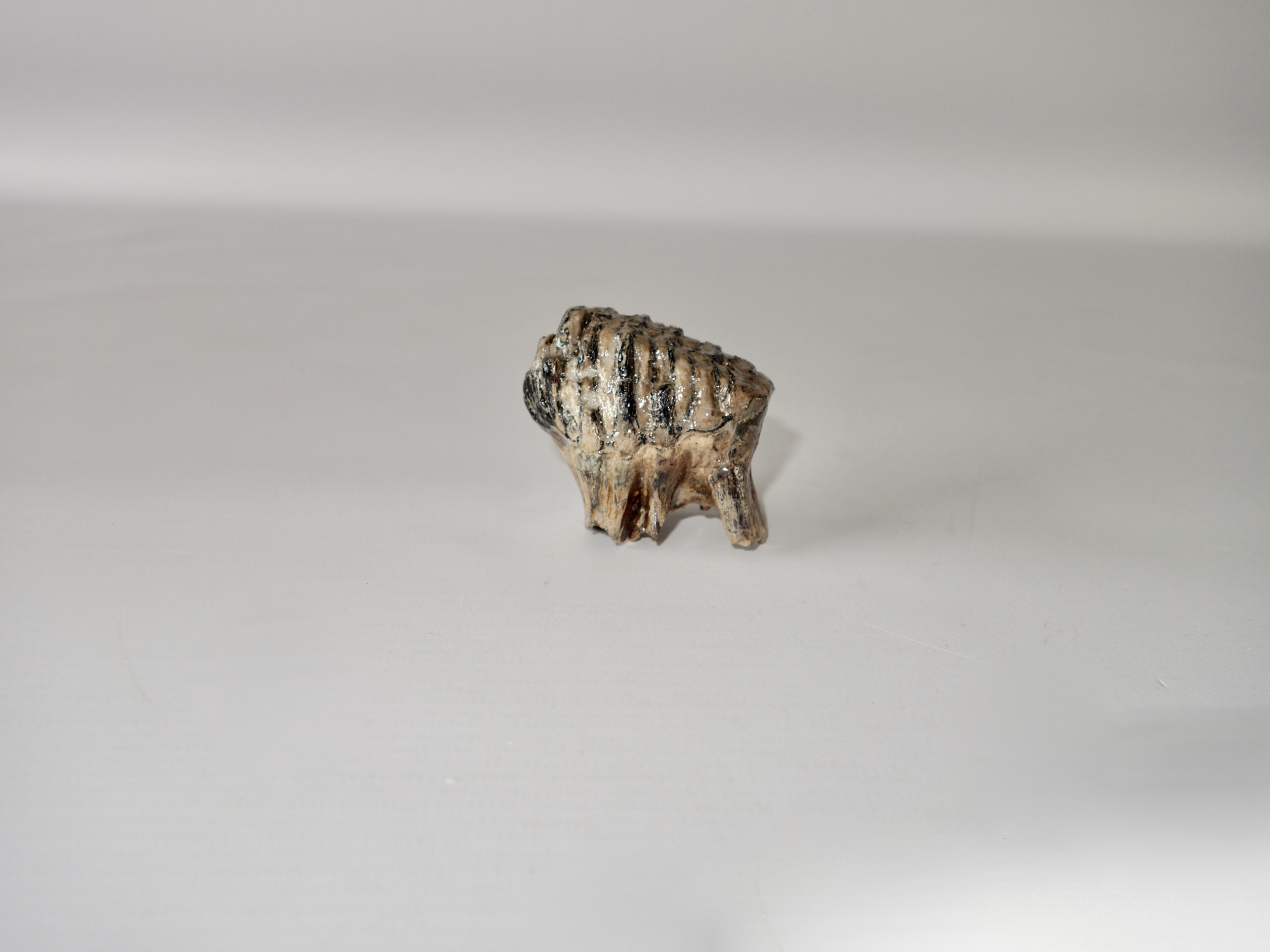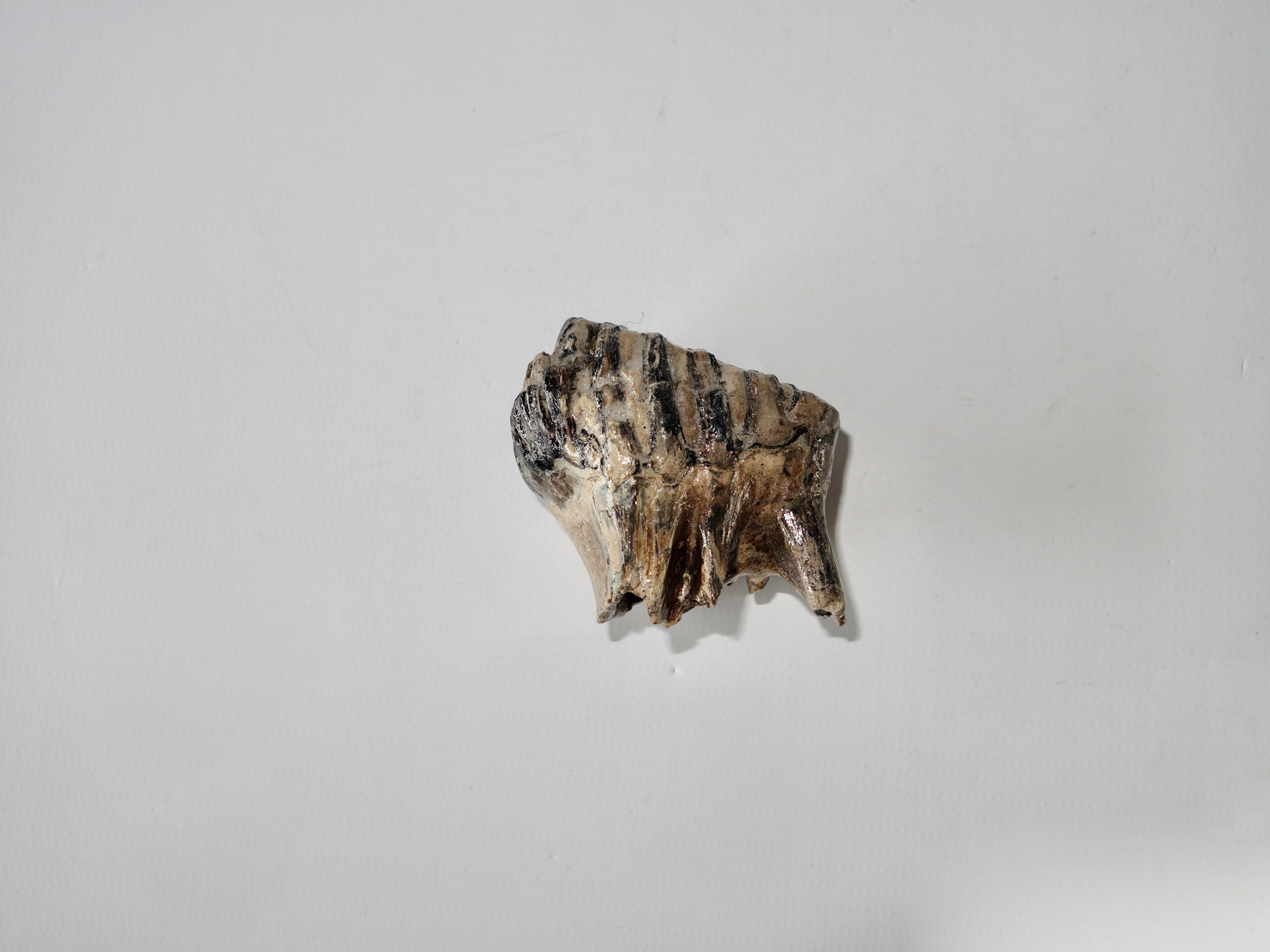 On offer is a superb and very rare P3 molar of a juvenile Woolly Mammoth from the Pleistocene era. This molar comes from the right upper jaw. This molar is in fantastic state of preservation and with a good chewing surface, as seen in the images. No restoration whatsoever. The black and white section of the ruler in the image represents 10 cm (3.9 inch).