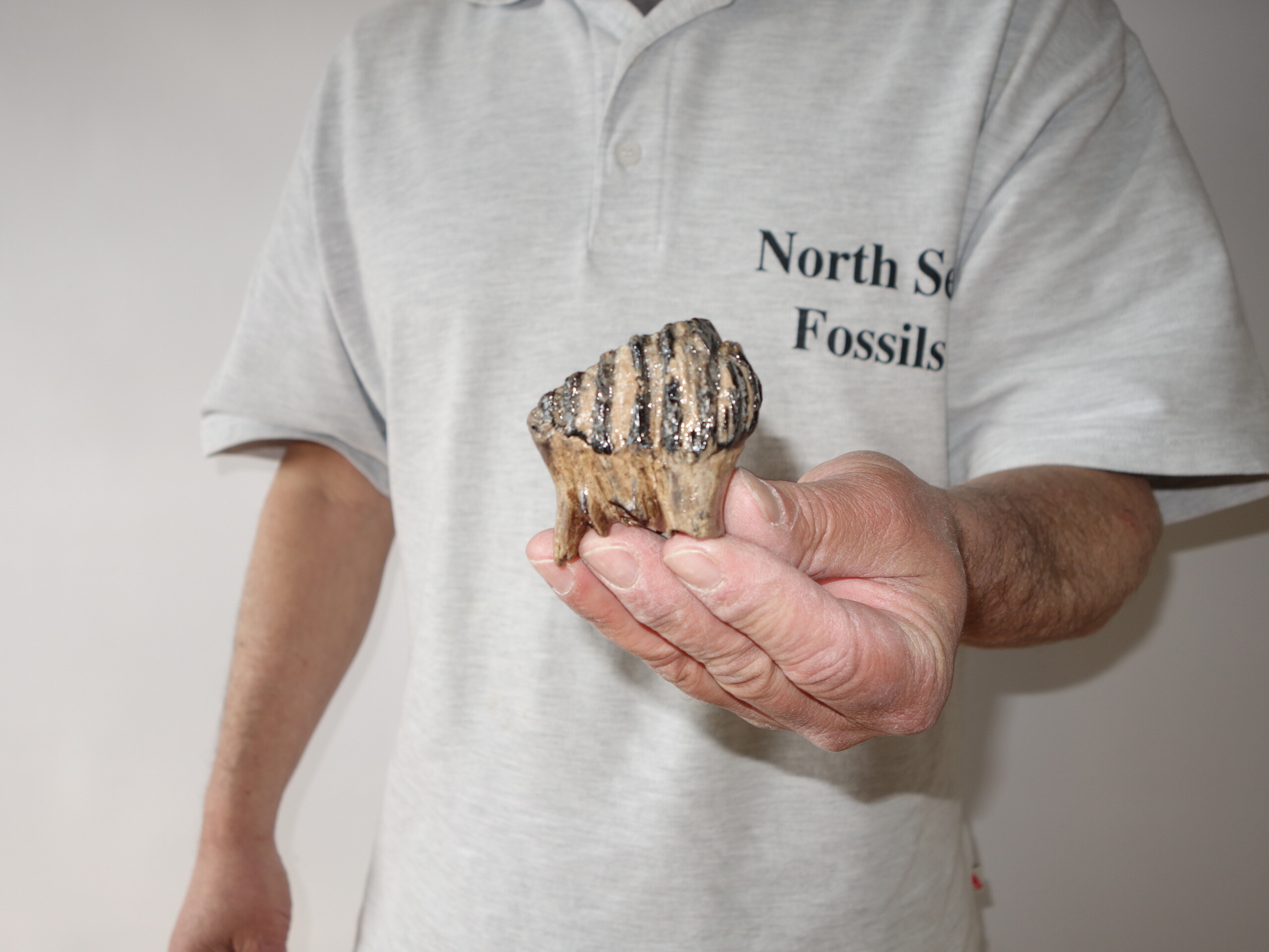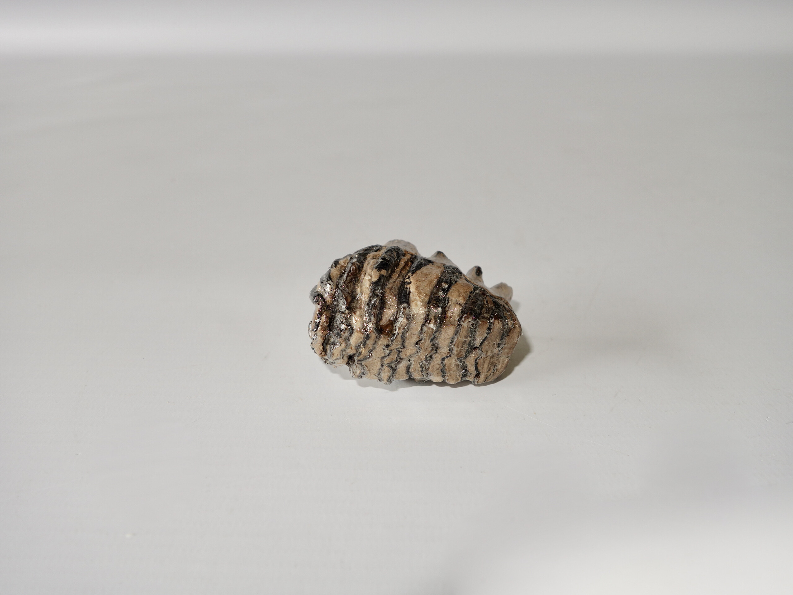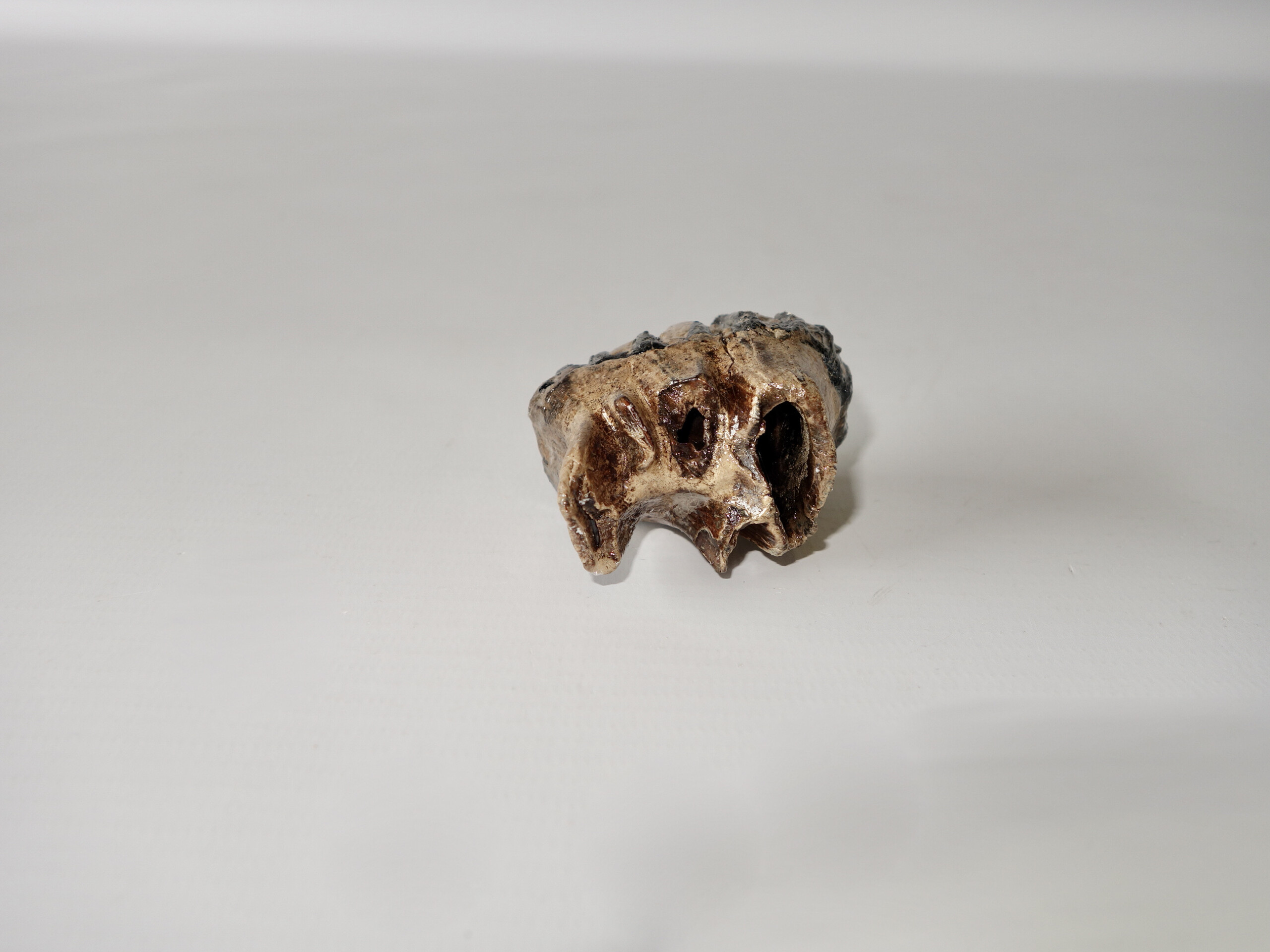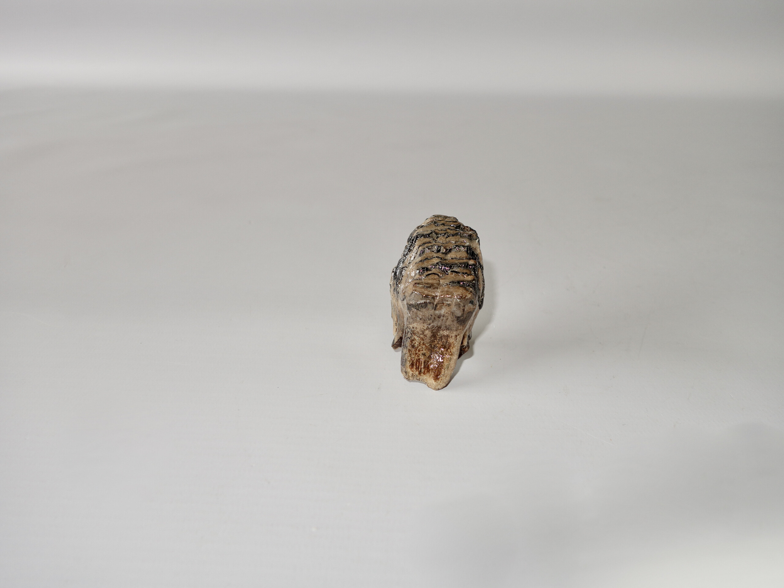 On offer is a superb and very rare P3 molar of a juvenile Woolly Mammoth from the Pleistocene era. This molar comes from the right upper jaw. This molar is in fantastic state of preservation and with a good chewing surface, as seen in the images. No restoration whatsoever. The black and white section of the ruler in the image represents 10 cm (3.9 inch).