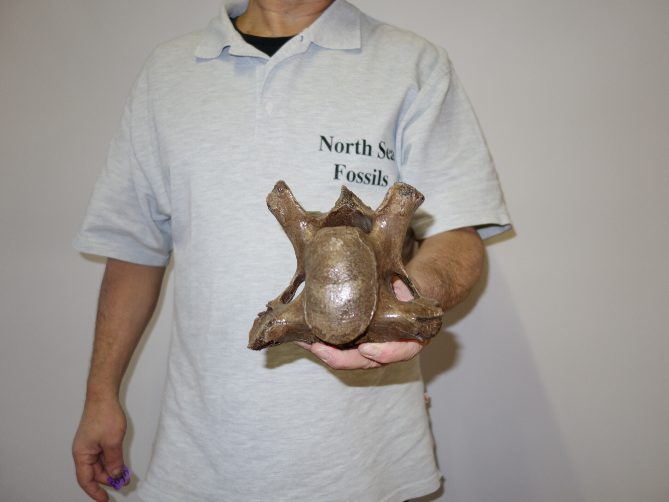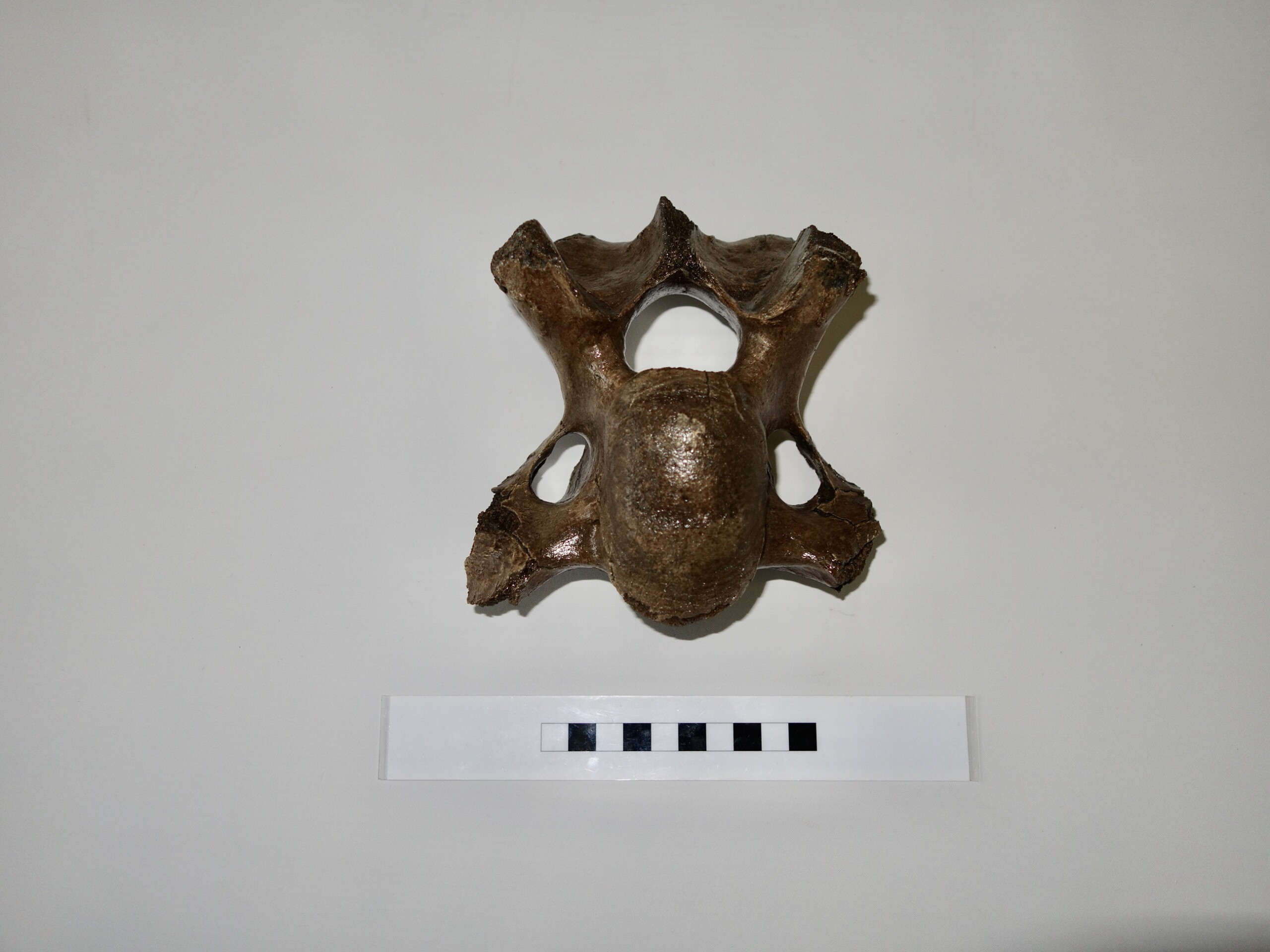This nice fossil belonged to an adult Woolly Rhinoceros from the Pleistocene period. The cervical vertebrae were located in the neck part of the spinal cord, supporting the animal’s skull. Good state of preservation, as seen in the images. No restoration whatsoever. The black and white section of the ruler in the image represents 10 cm / 3.9 inch.