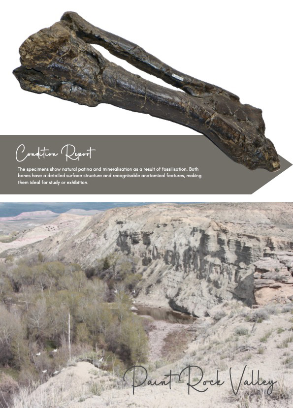 These specimens have been carefully prepared and stabilised using a scientific approach, in accordance with modern standards for fossil preparation, preserving the natural patina and mineralisation as a result of fossilisation. Both bones have a detailed surface structure and recognisable anatomical features, making them ideal for study or exhibition, perfect for museums, university collections or high-quality private colections.