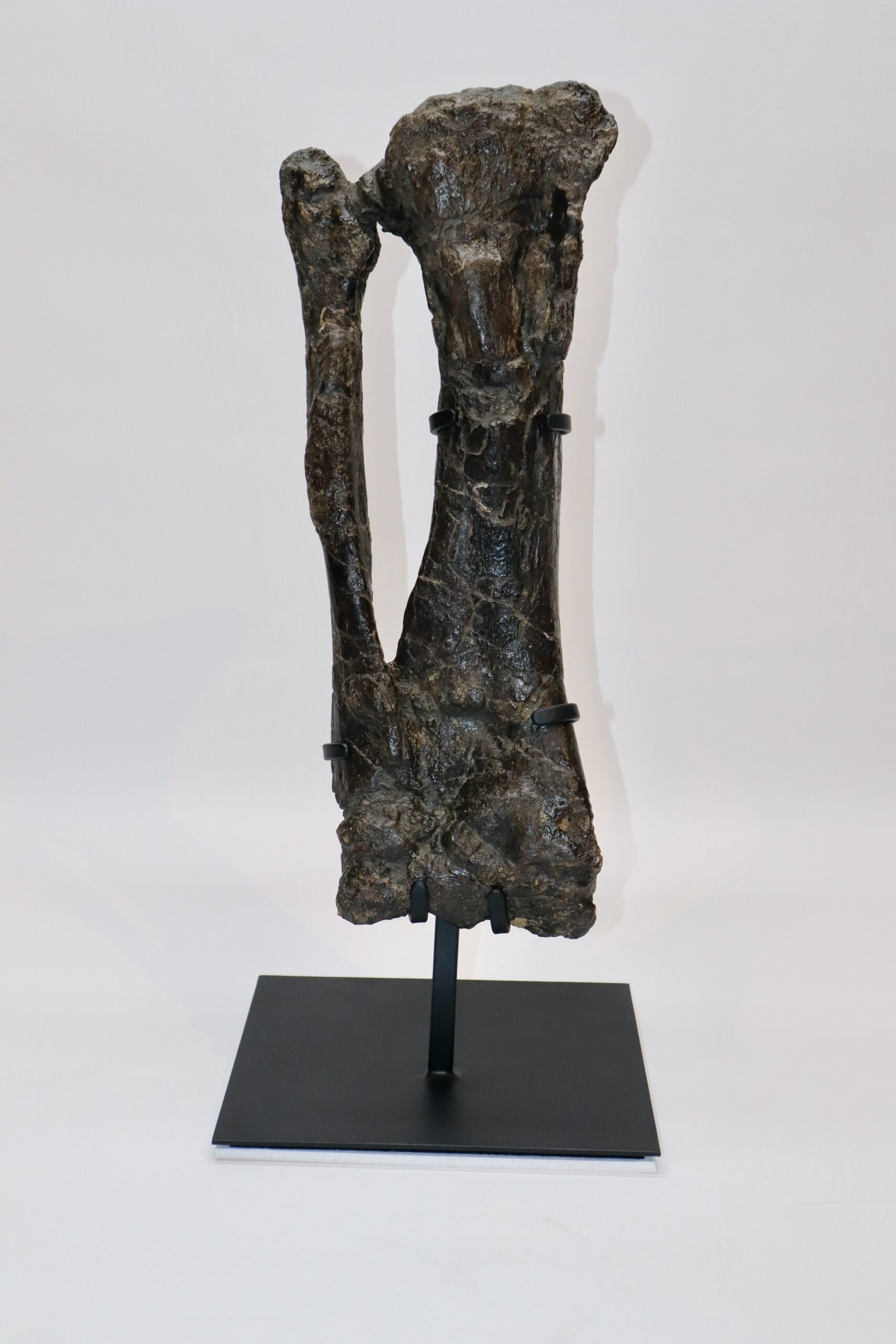 On offer is a superb and extremely rare tibia and figula (hind limb bones) of an adult Stegosaurus dinosaur, found in the Morrison Formation in the Western United States. The Stegosaurus was a four-legged armored dinosaur, best known for its distinctive kite-shaped upright plates on their backs and spikes on their tails. So far, the remains of some 80 individuals have been found, the largest some 7.5 metres (25 feet) long and weighing over 5000 kilos.